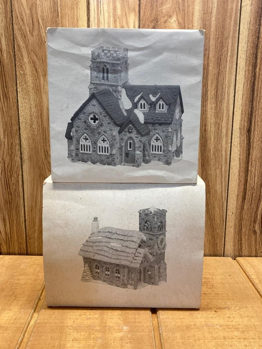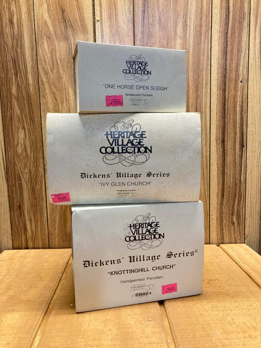 LOT 46: Dept. 56 Collection - "One Horse Open Sleigh", "Ivy Glen Church" and "Knottinghill Church"