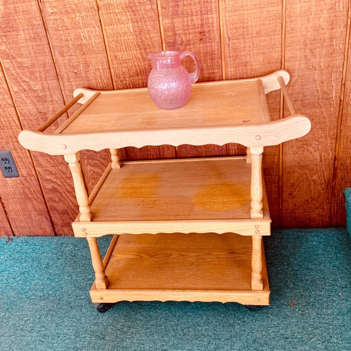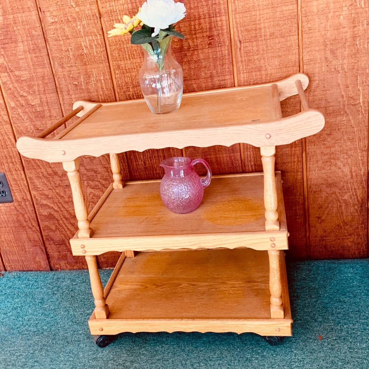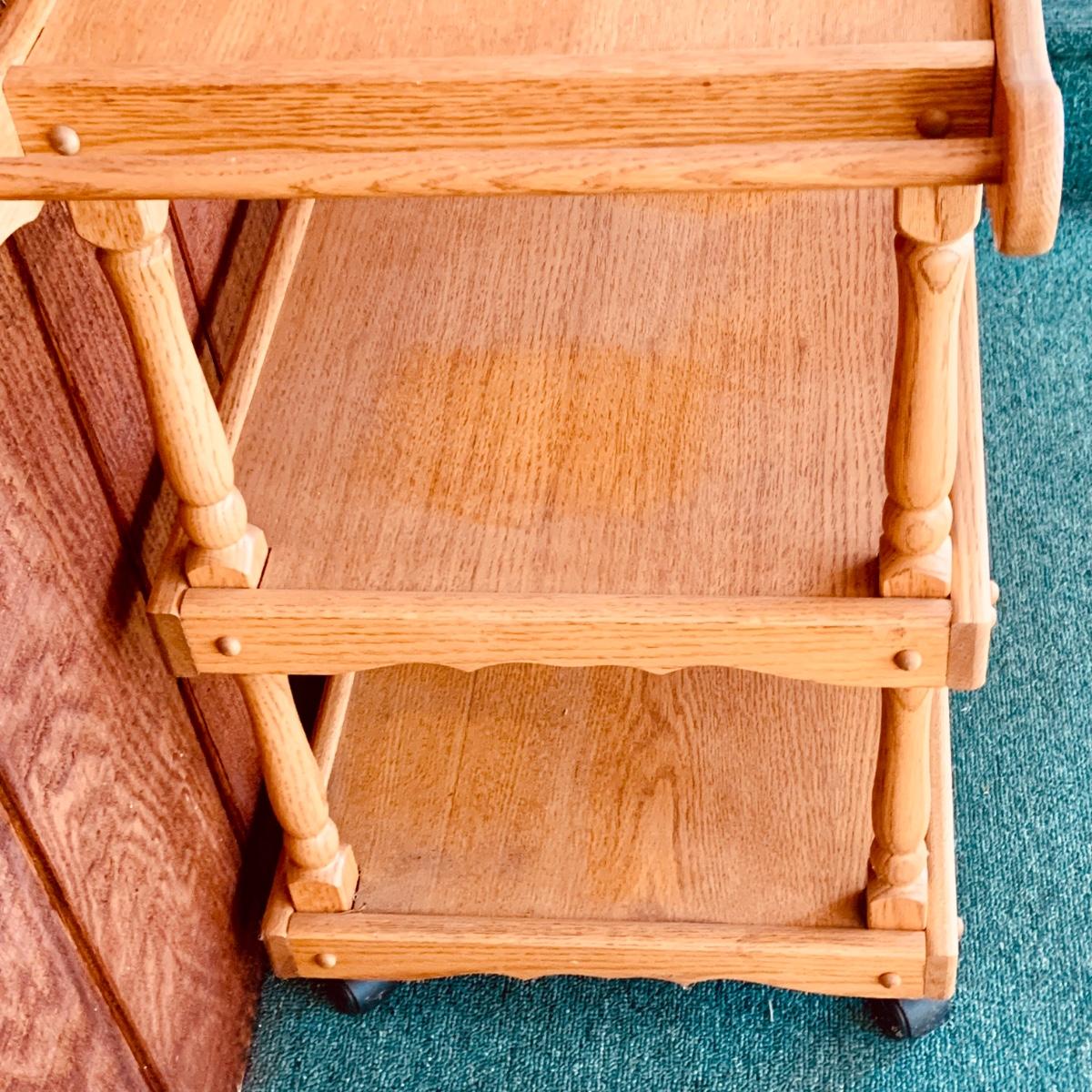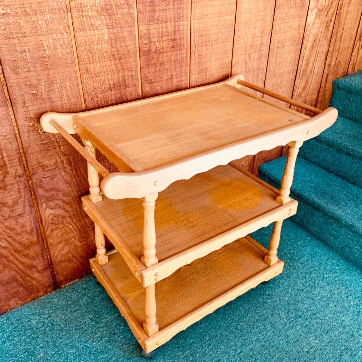 LOT:59: Wooden Three Tier Tea Trolly Cart