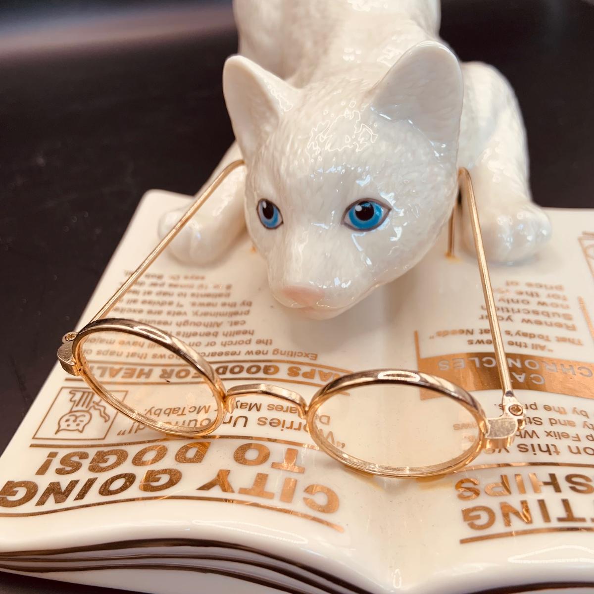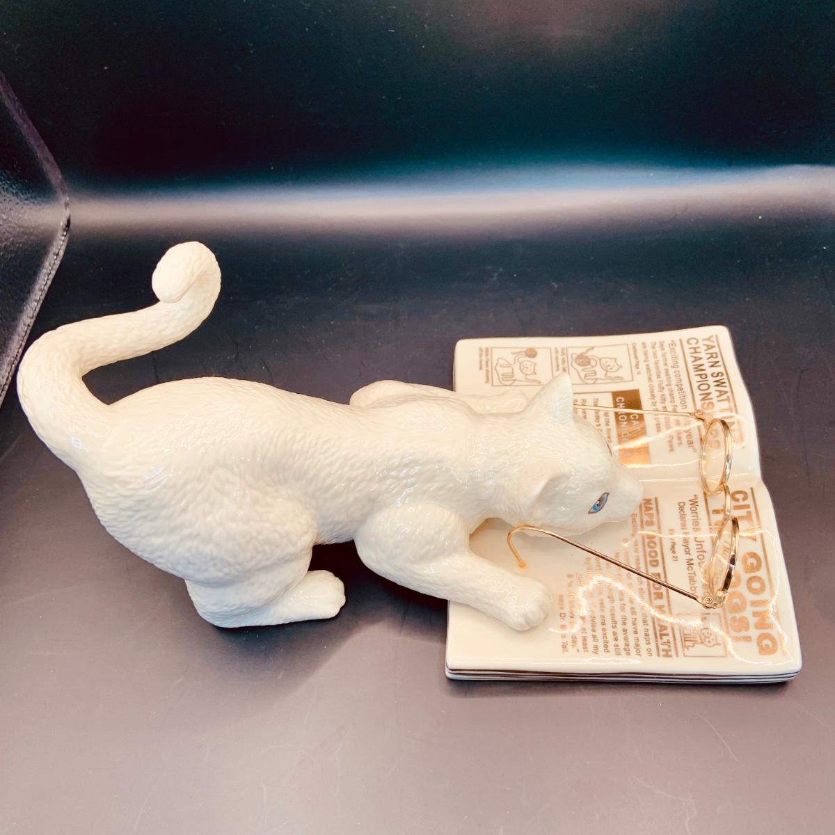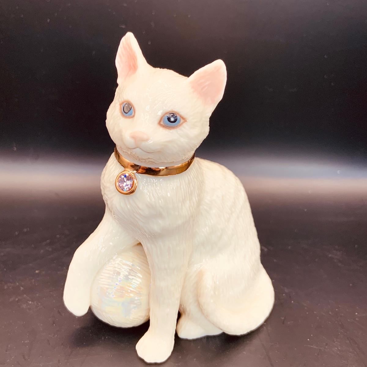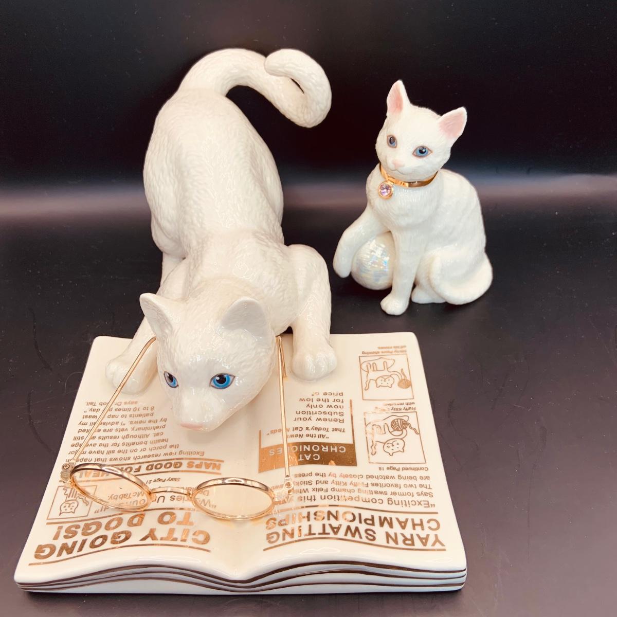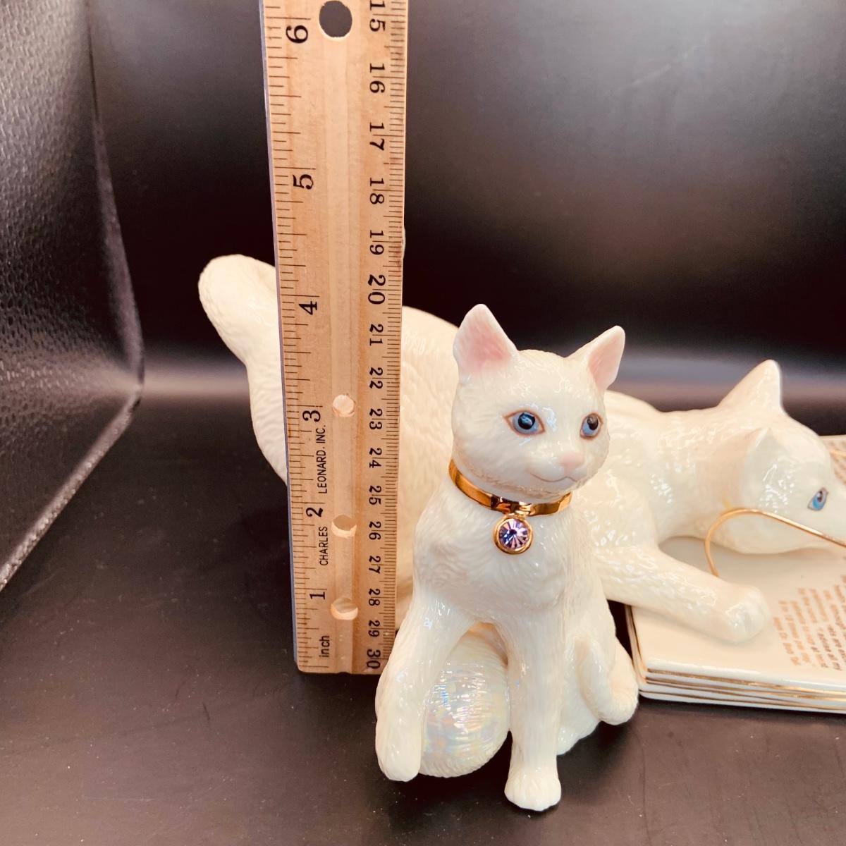LOT:66: Set of 2 Lenox Cat Figurines - Cat Chronicles and Kitty with Yarn and Gem Collar