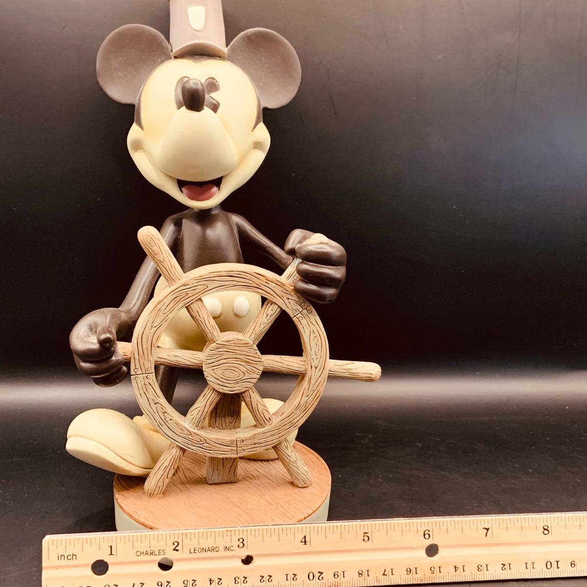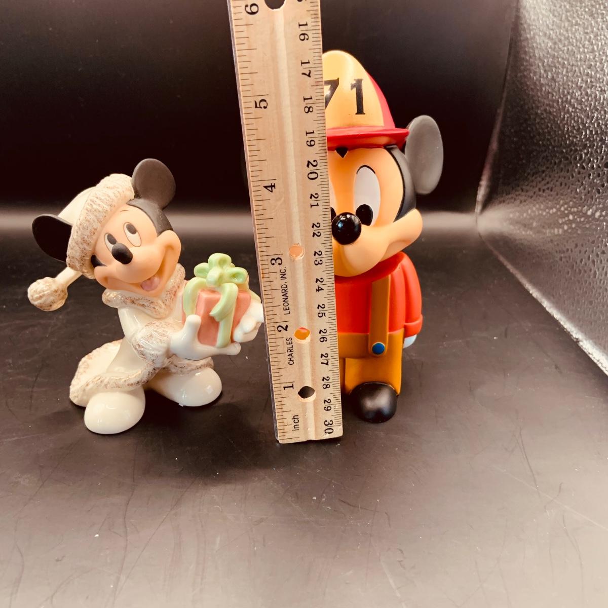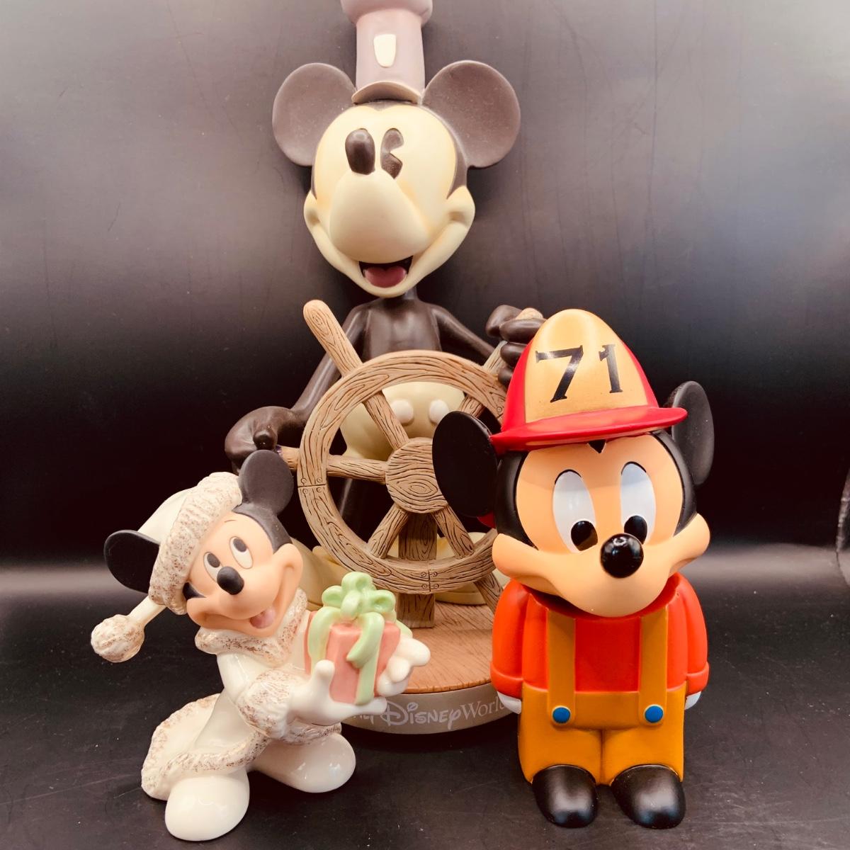 LOT:70: Collection of Disney's Mickey Mouse Figurines and Bobble Head Figures Including a Lenox Holiday Mickey, Walt Disney World Steamboat Willie Bobble Head and Firefighter Bobble Head