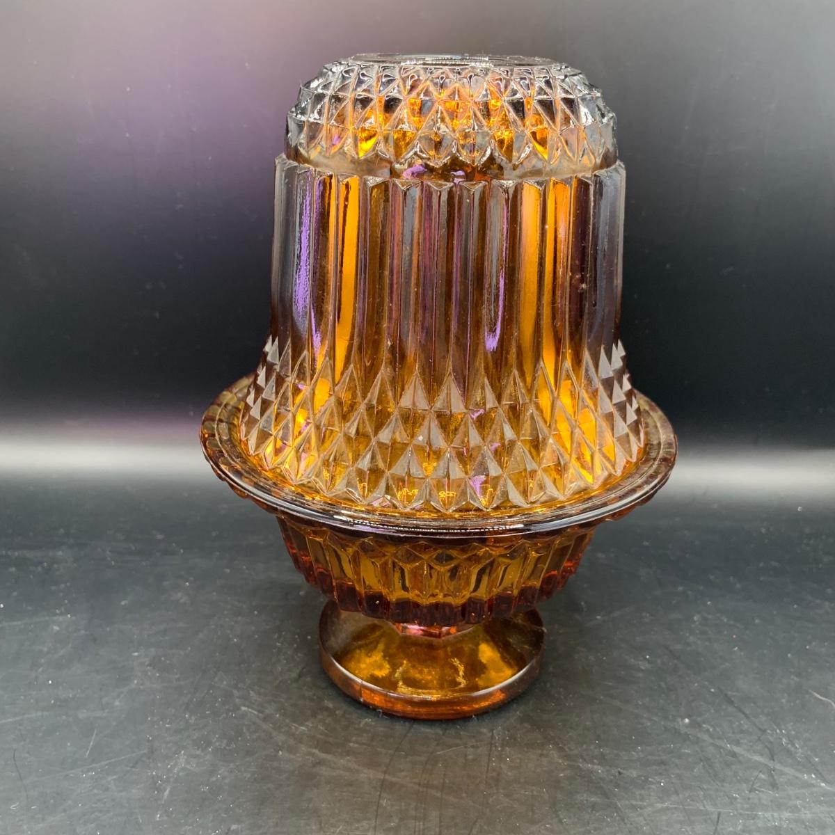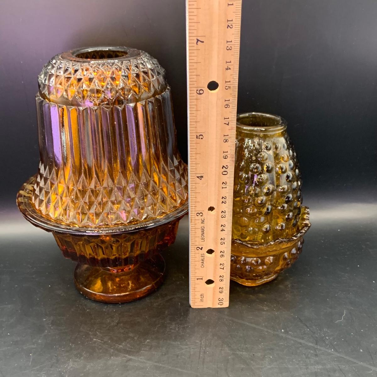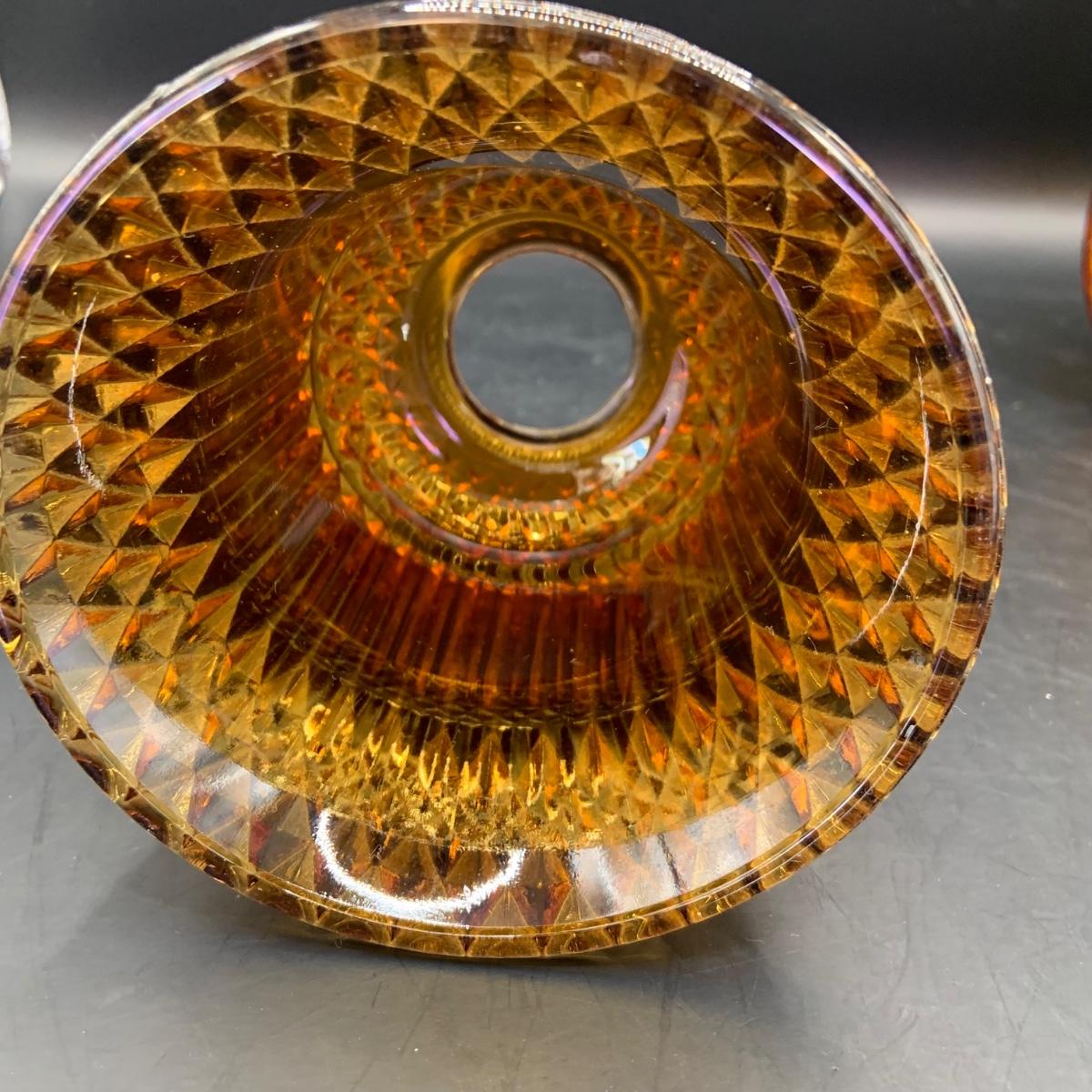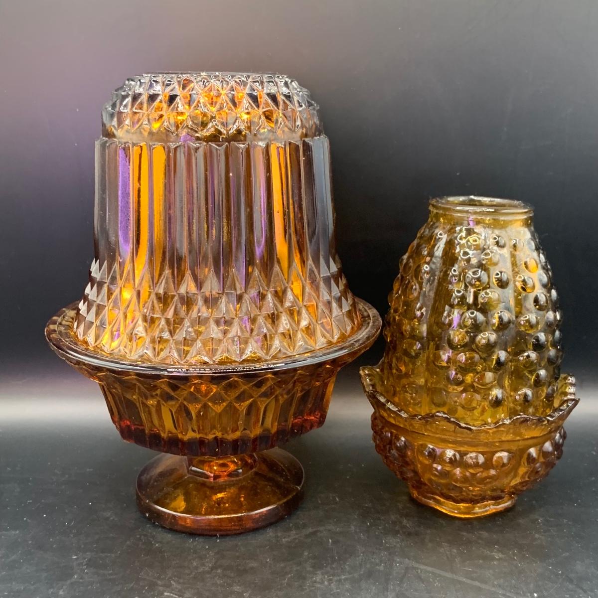 LOT:79: Set of 2 Amber Glass Fairy Lights Diamond Point and Hobnail