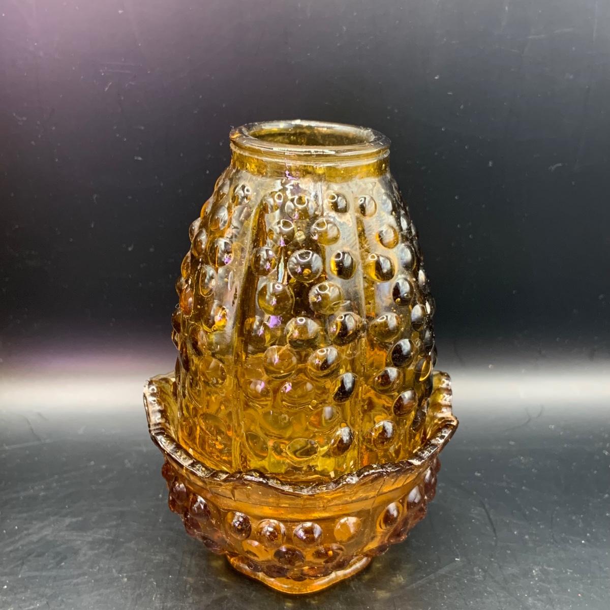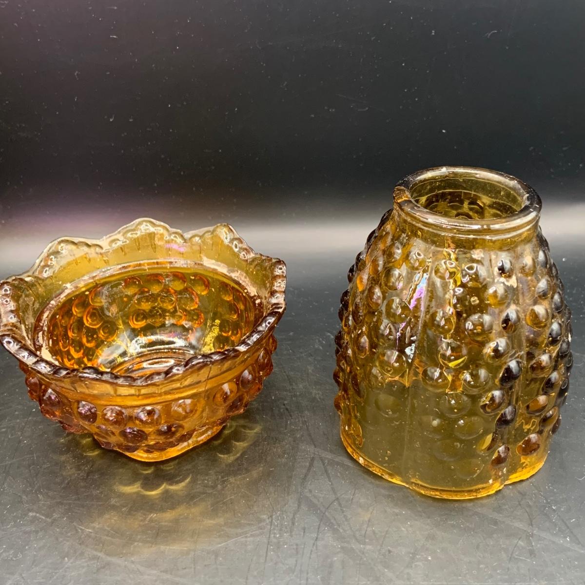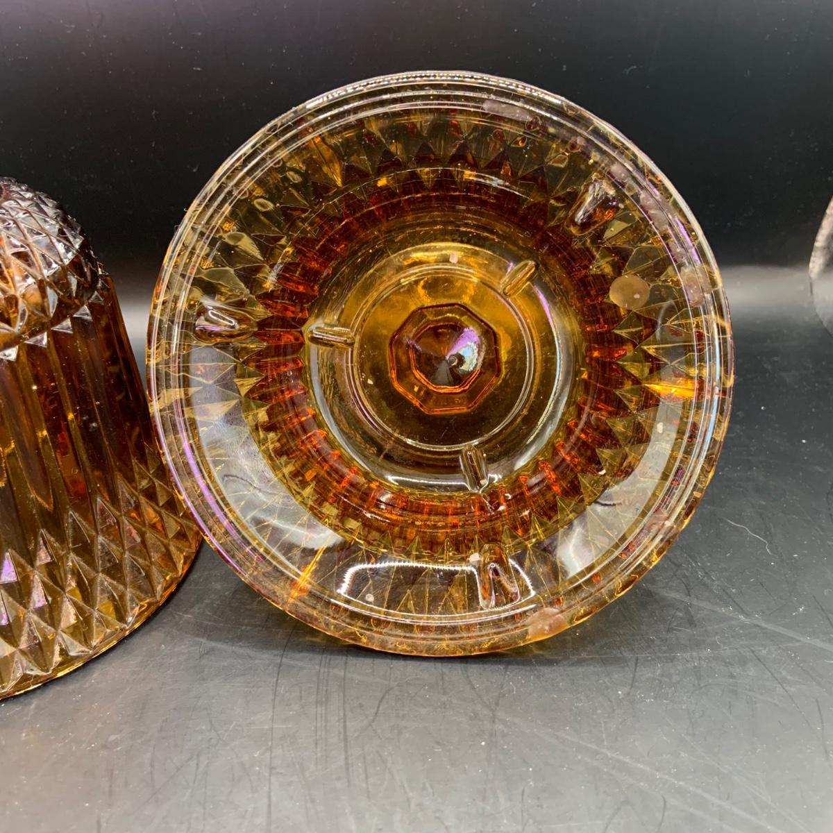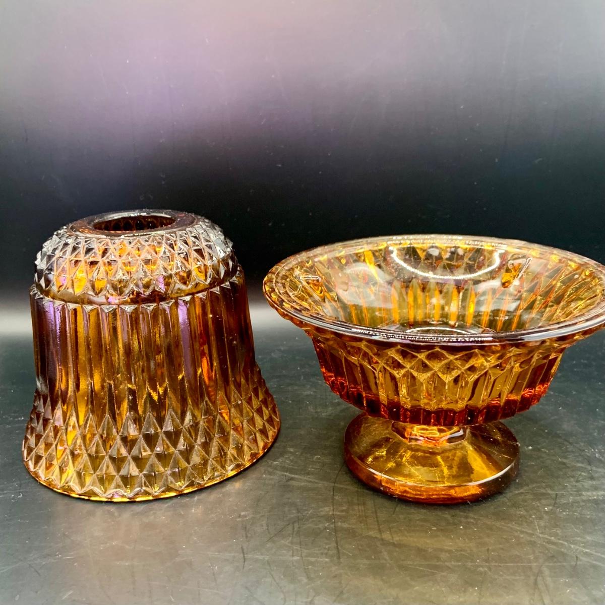 LOT:79: Set of 2 Amber Glass Fairy Lights Diamond Point and Hobnail