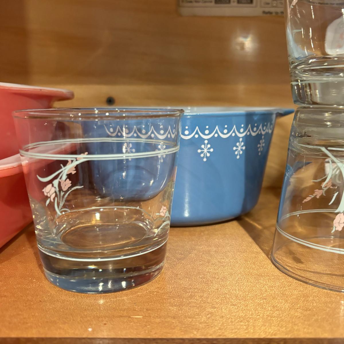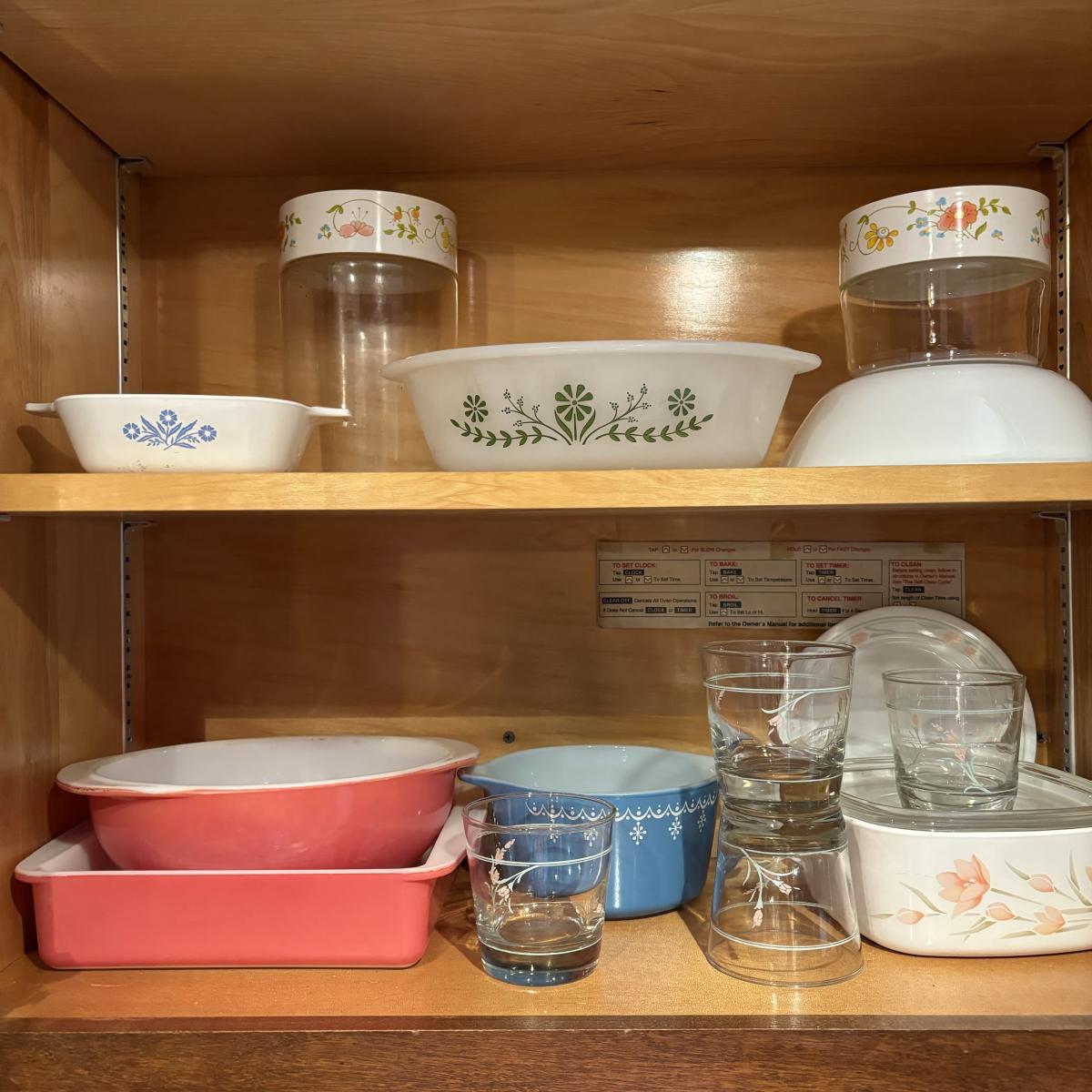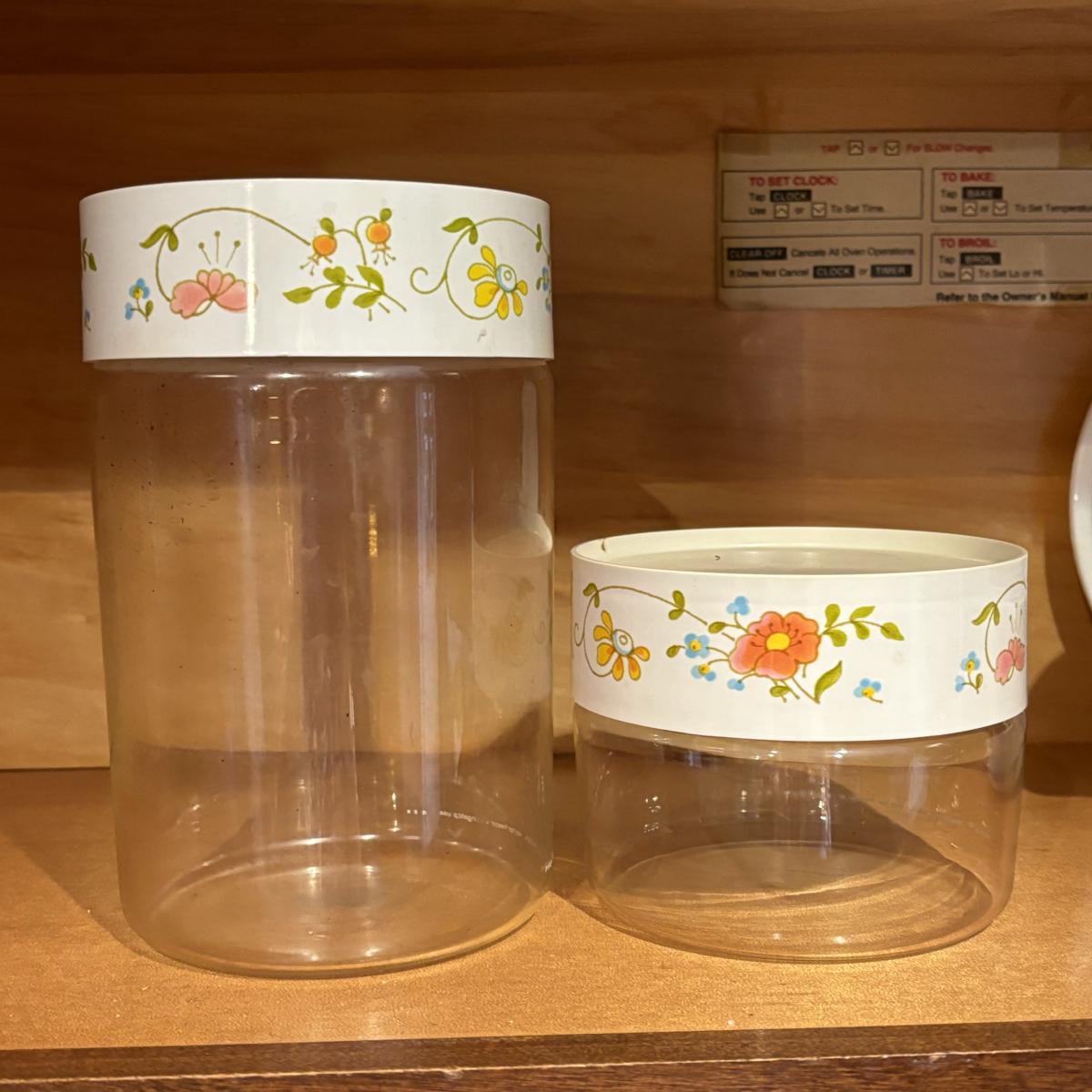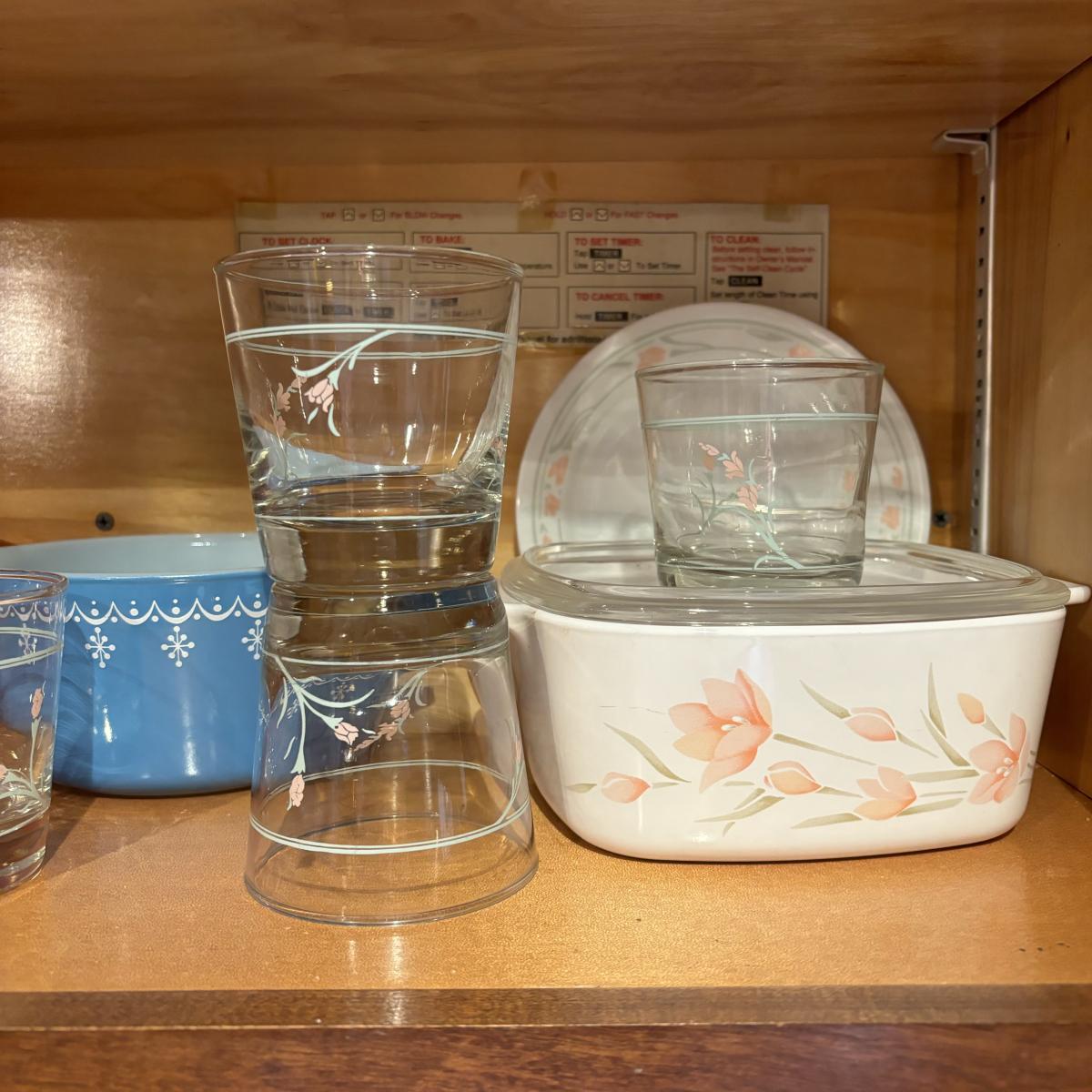 LOT 82: Pyrex, Glassbake, Corelle, Stack 'n Store Wildflower Canisters