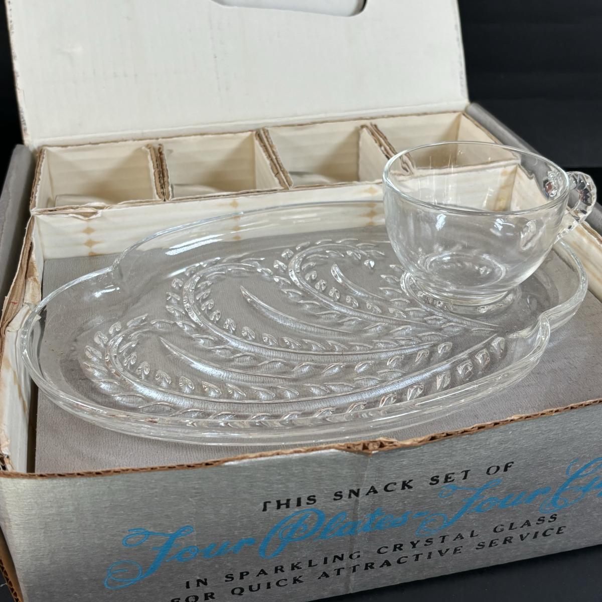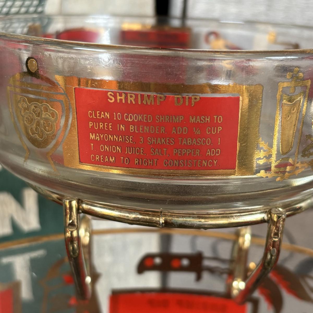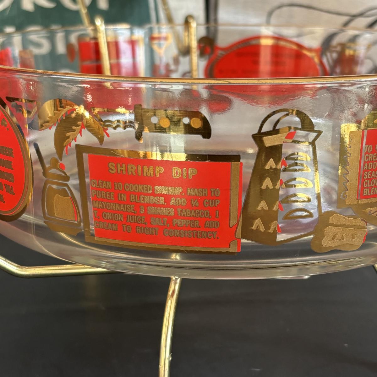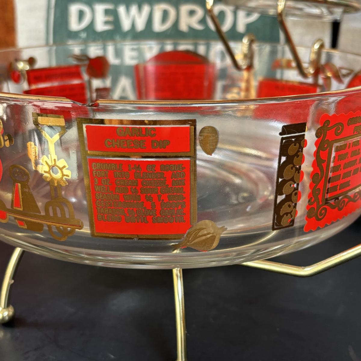 LOT 83: Vintage Red/Gold Chip & Dip Set, Dewdrop Television Snack Set & Federal Glass Hospitality Snack Set
