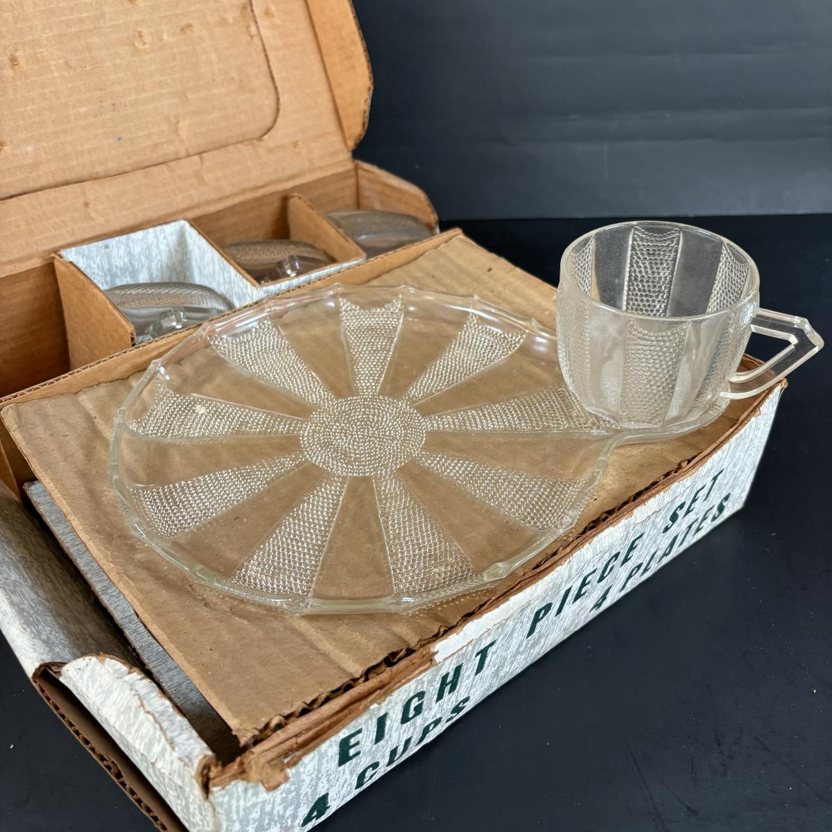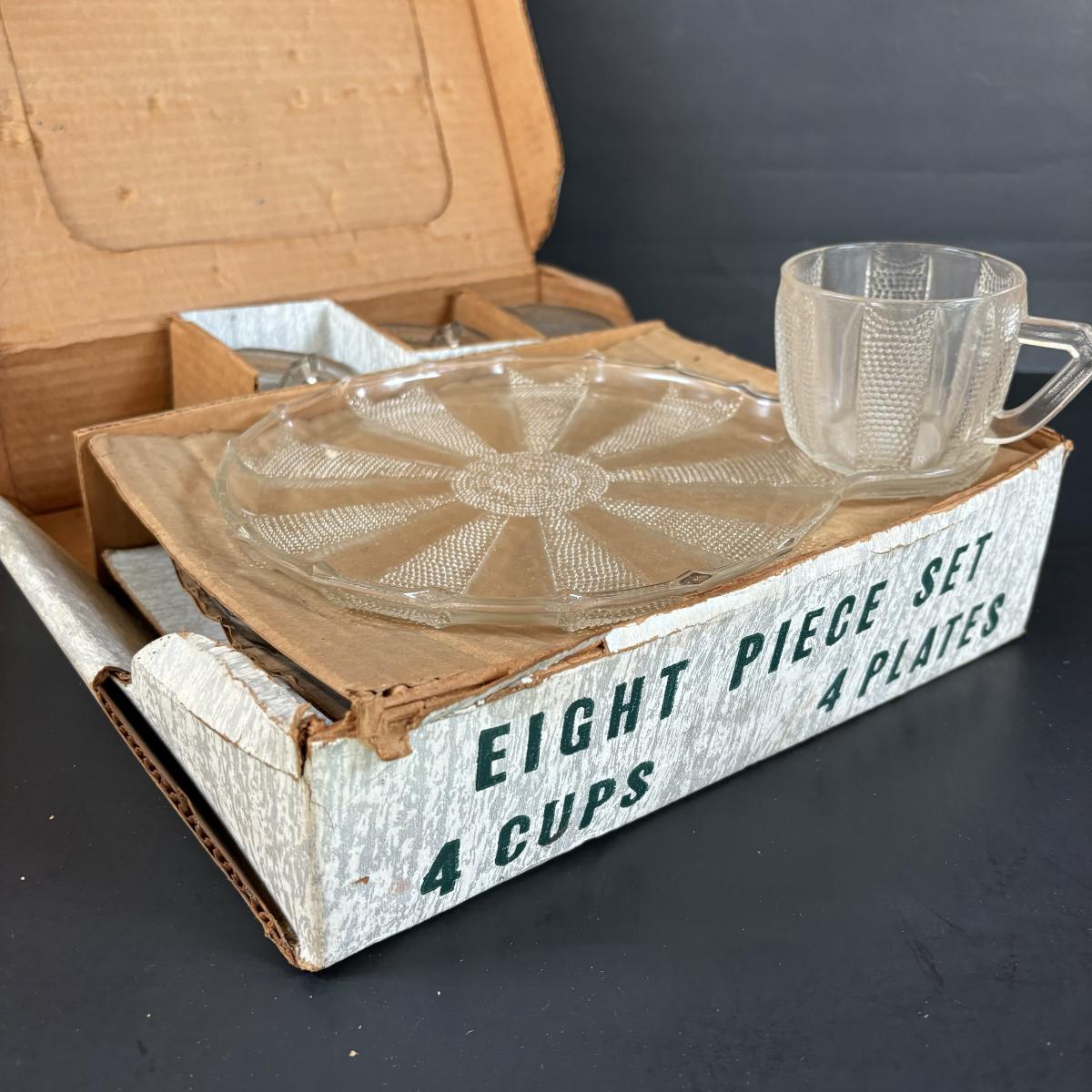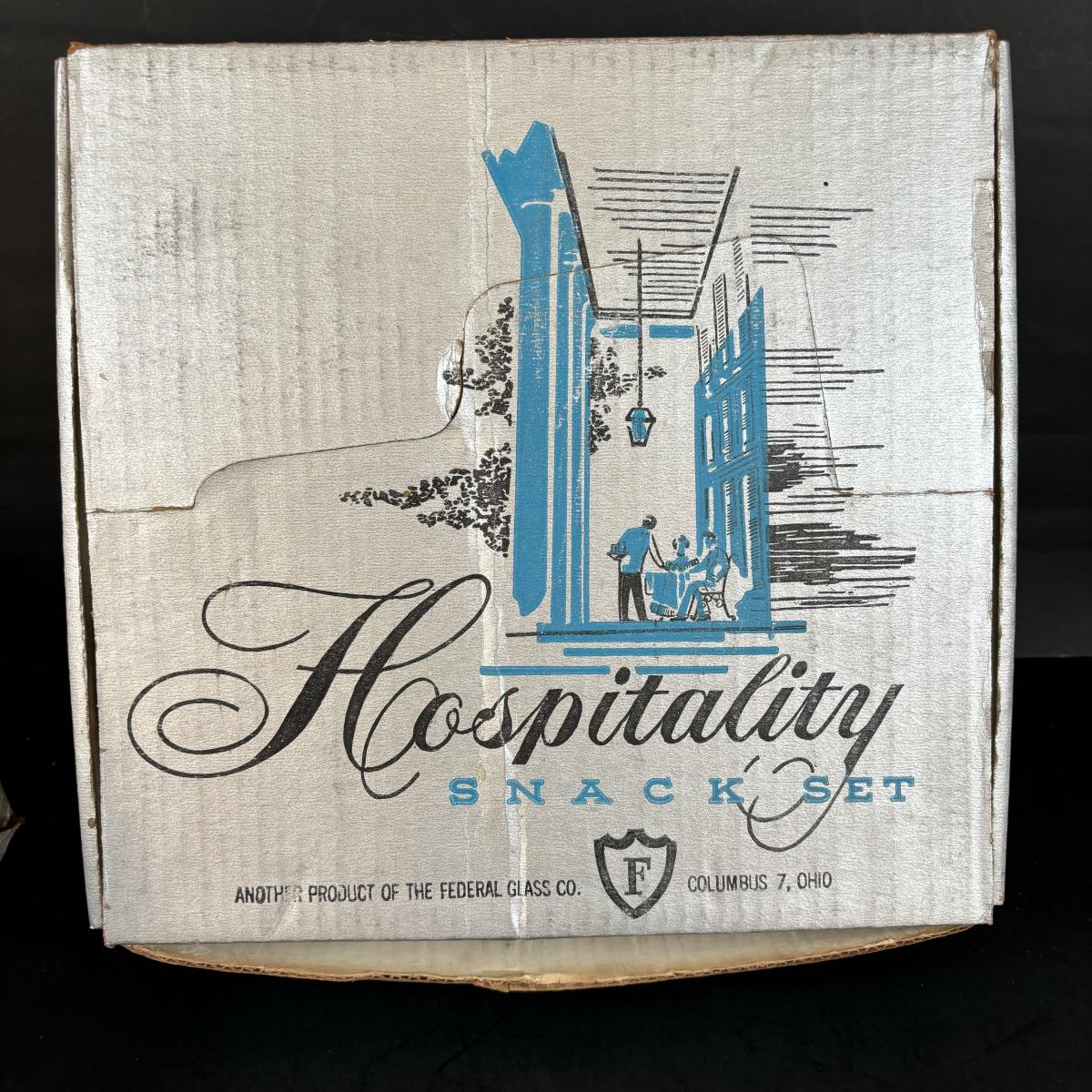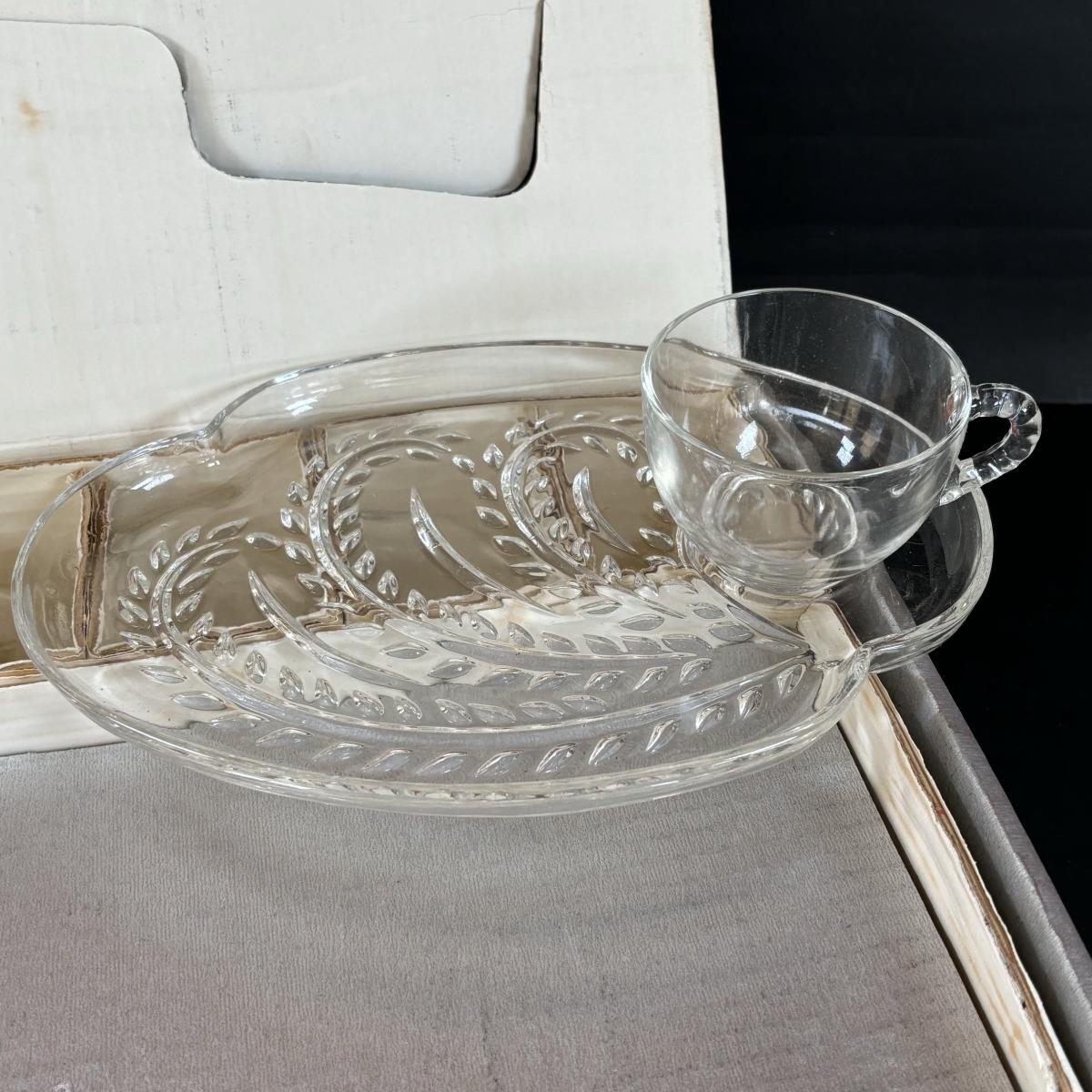 LOT 83: Vintage Red/Gold Chip & Dip Set, Dewdrop Television Snack Set & Federal Glass Hospitality Snack Set