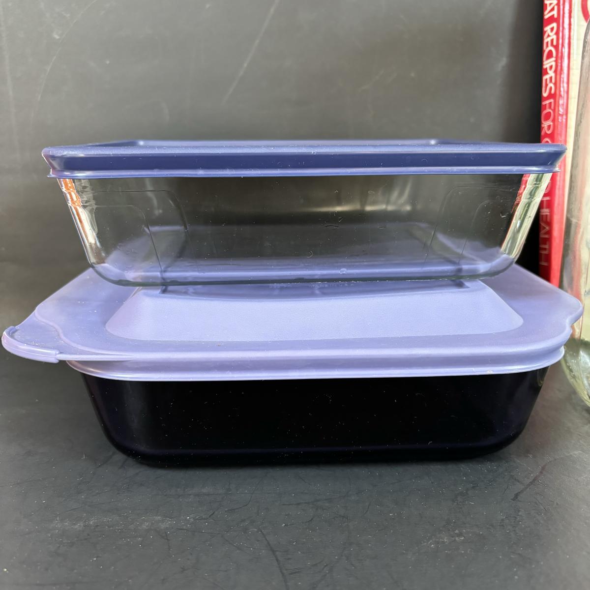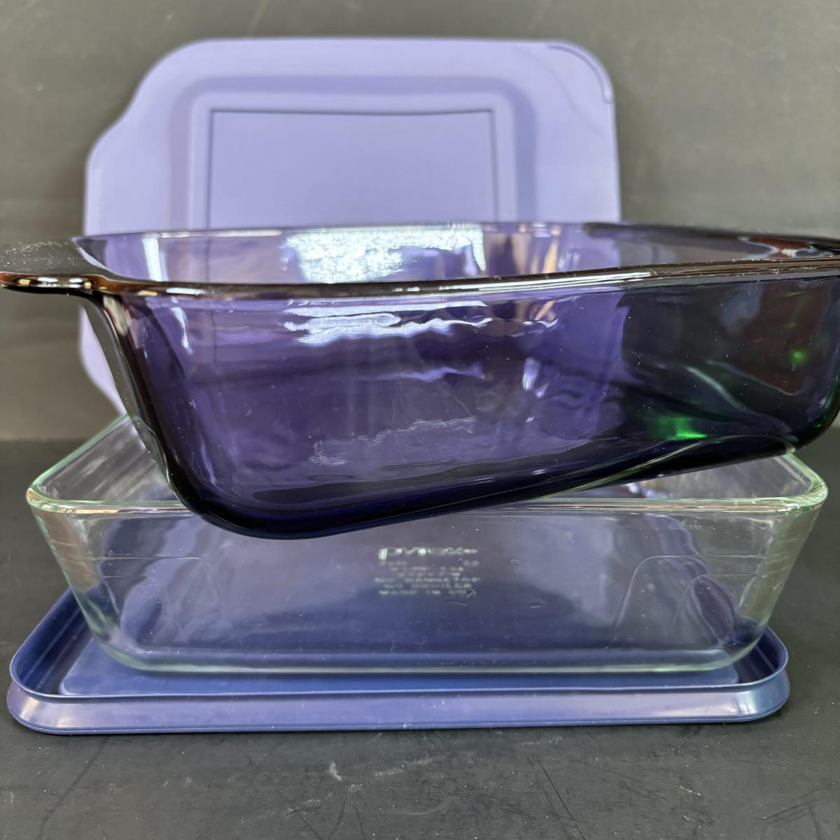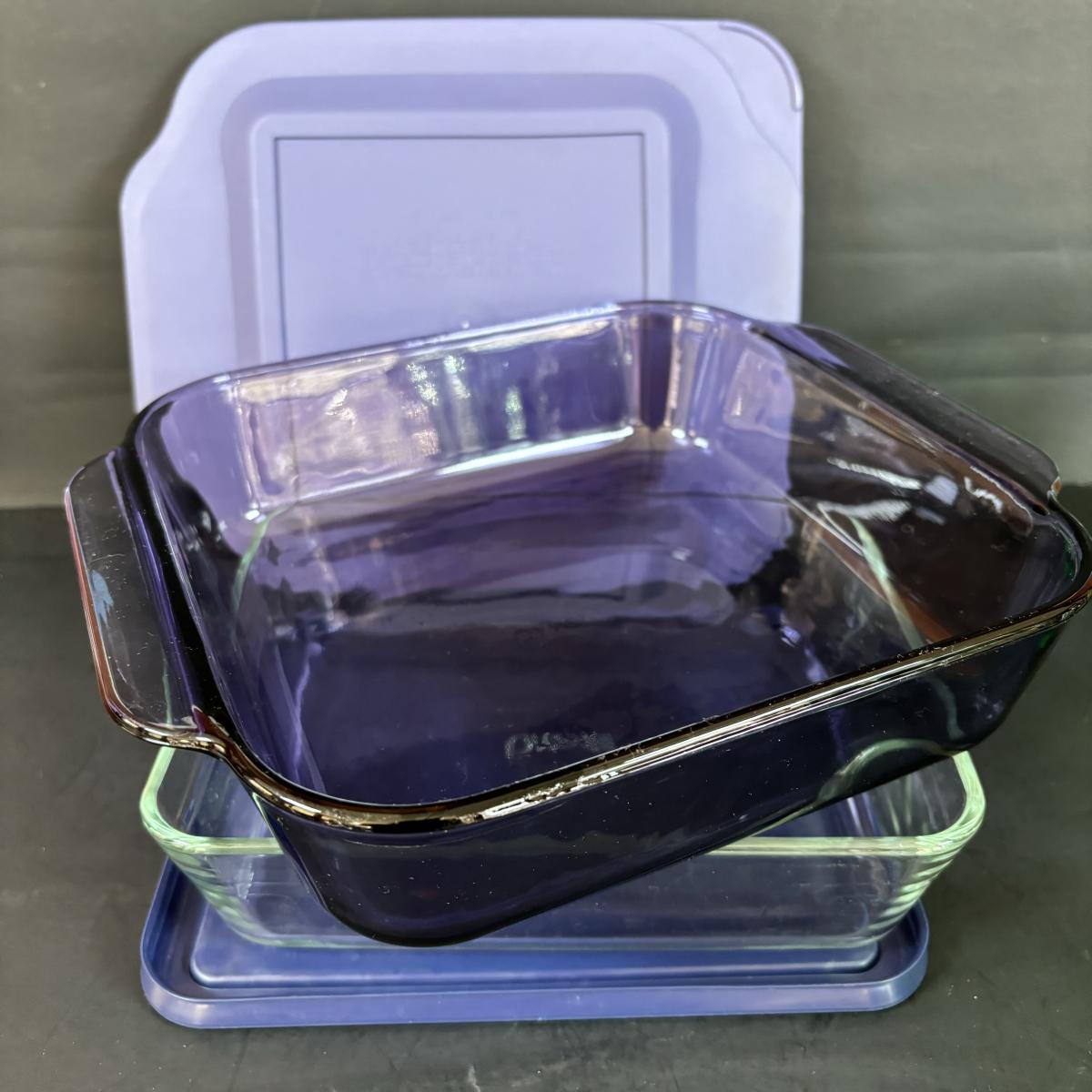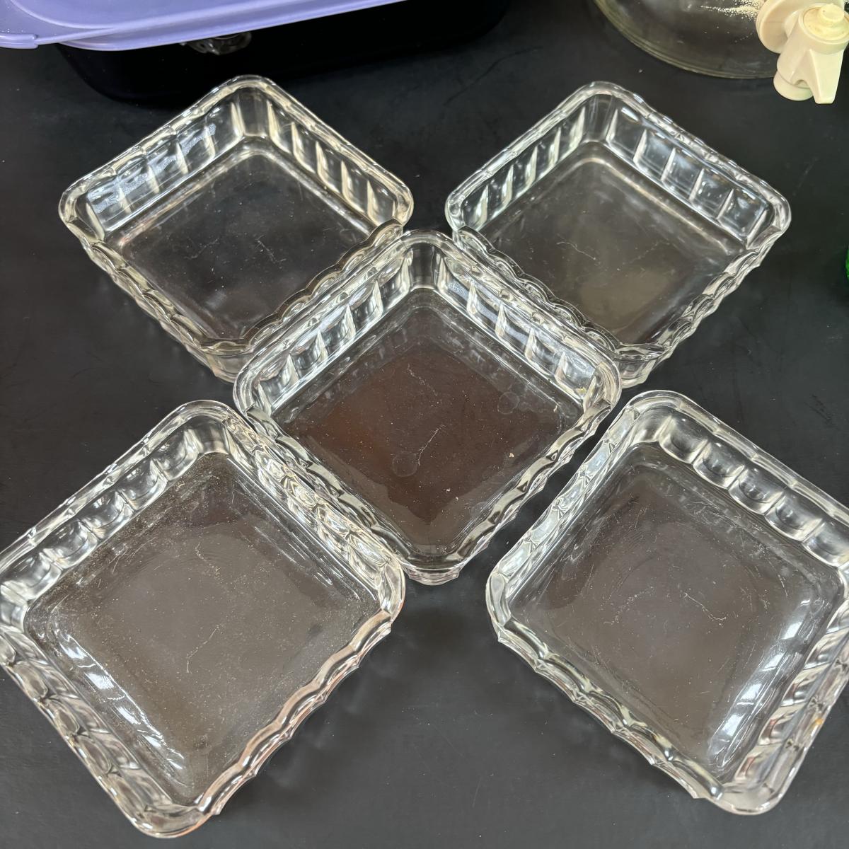 LOT 84: Vintage Sun Tea Glass Dispenser Picnic Jug, Green Flared Iced Tea Glasses, Pyrex Lidded Casseroles Dishes, Glass Snack Dishes & More