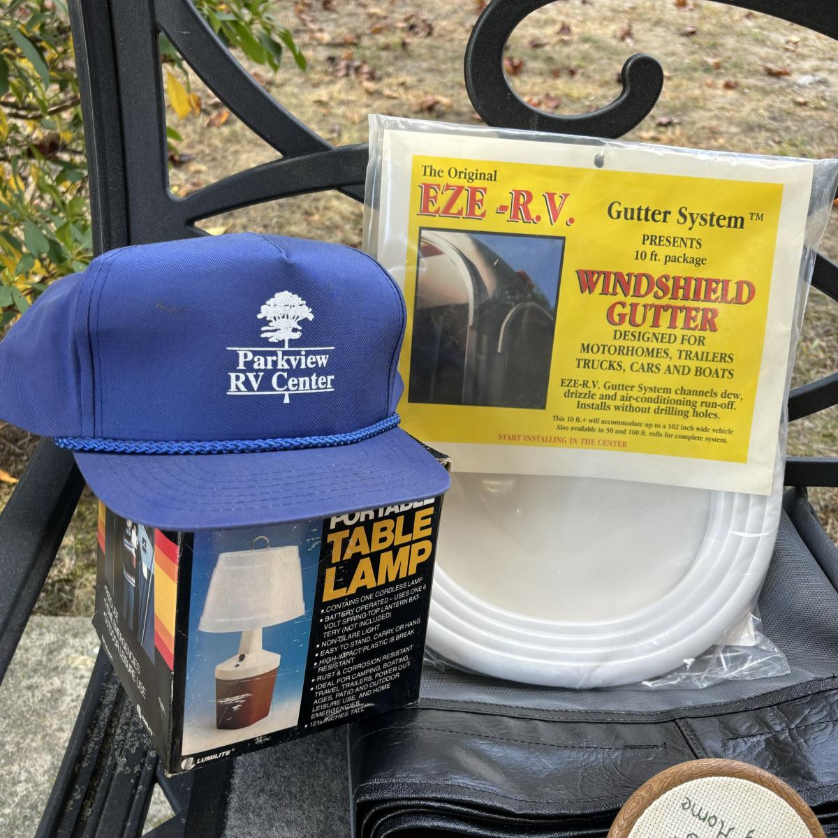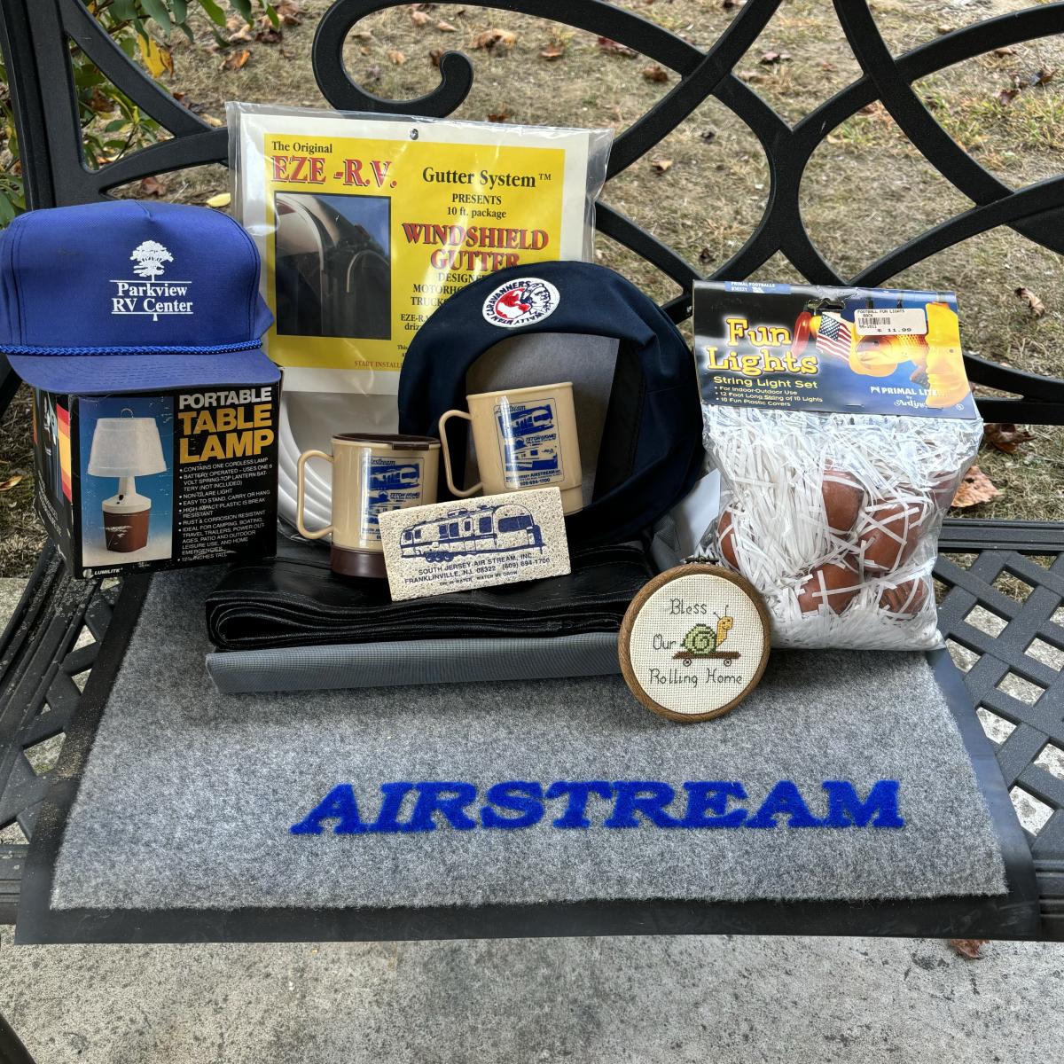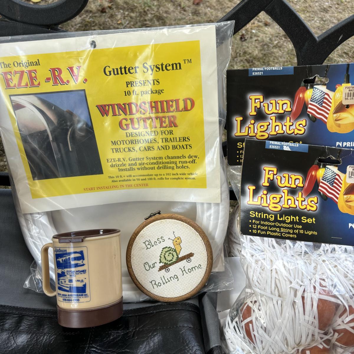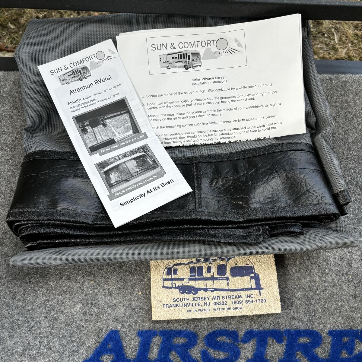 LOT 85: Outdoor Living Collection: Air Stream Rug, Air Stream of Franklinville Plastic Cups, Sun & Comfort Privacy Screen, Windshield Gutter & More
