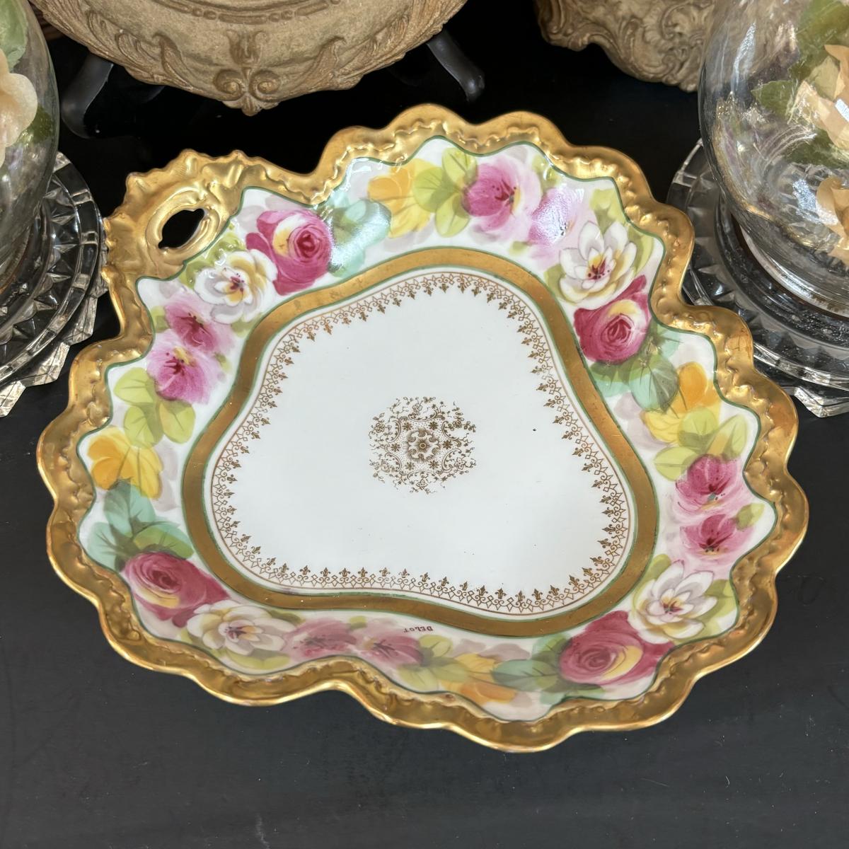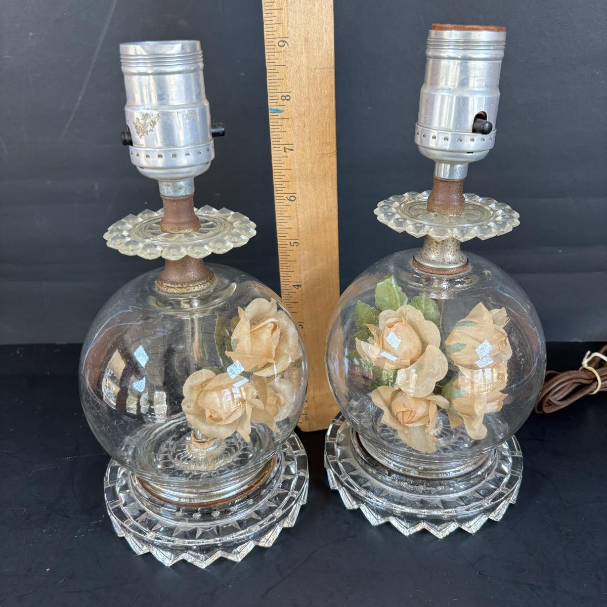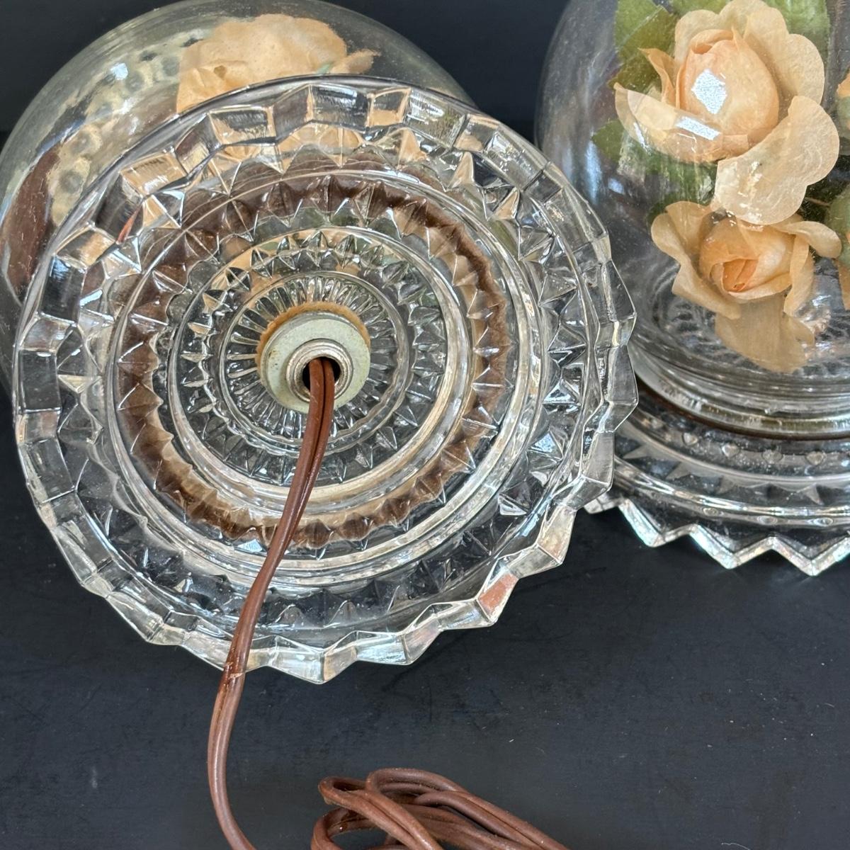 LOT 88: Vintage Cameo Creations Lady Dower & Lady Sheffield, Glass Boudoir Lamps w/Flower Globes Bases, & Limoges Trinket Tray