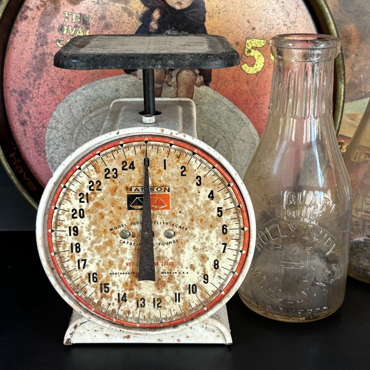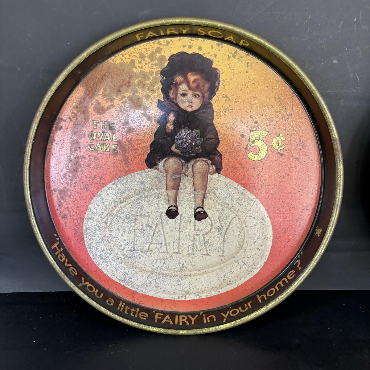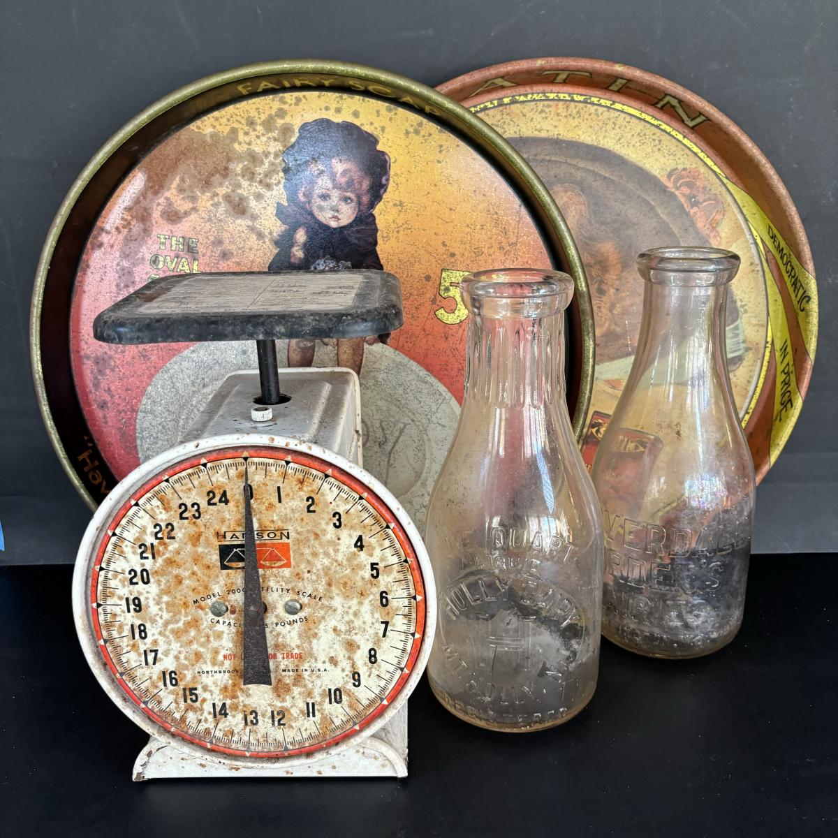 LOT 94: Vintage Trays: Fairy Soap & Satin Cigarettes, Milk Bottles & Hanson Utility Scale