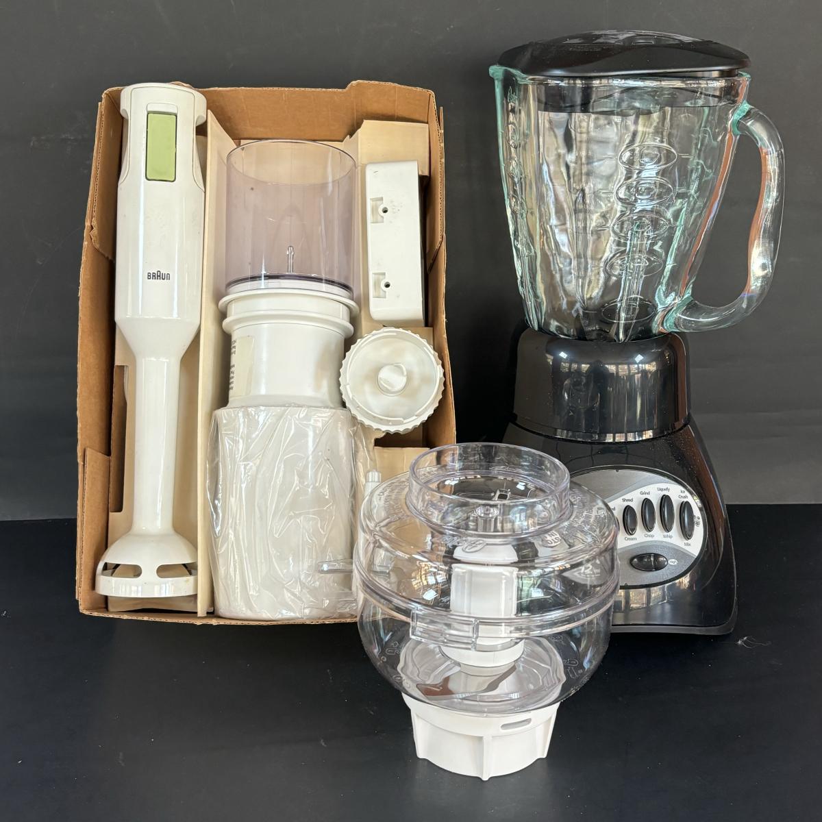LOT 96: Oster Blender w/ Food Processor Attachment & Braun Hand Blender