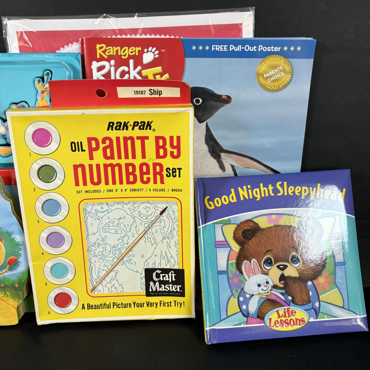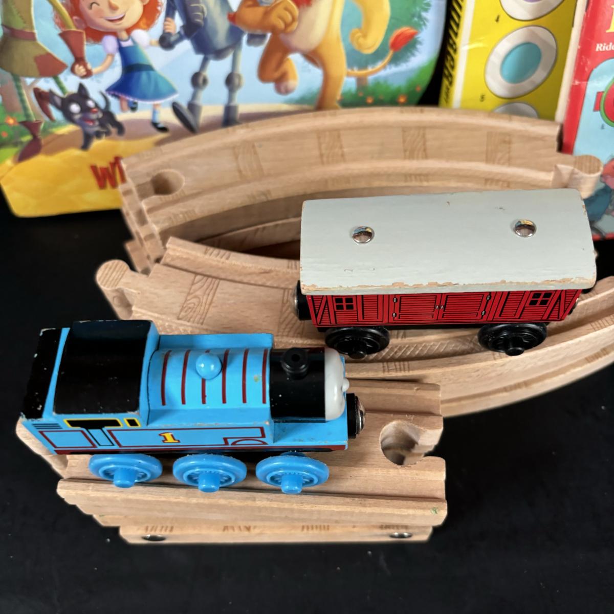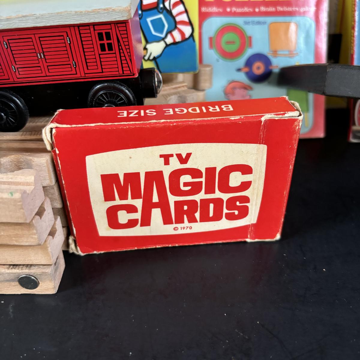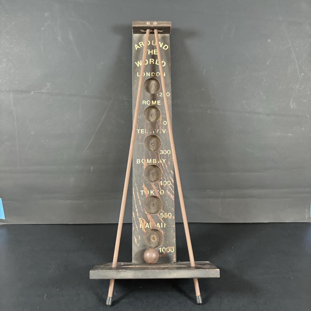 LOT 102: Vintage "Around the World" Hit the Spot Roller Game w/Steel Ball, Children's Tupperware, Your Own Toolbox w/Vinyl Tools, Thomas the Tank Engine Car/Track & More