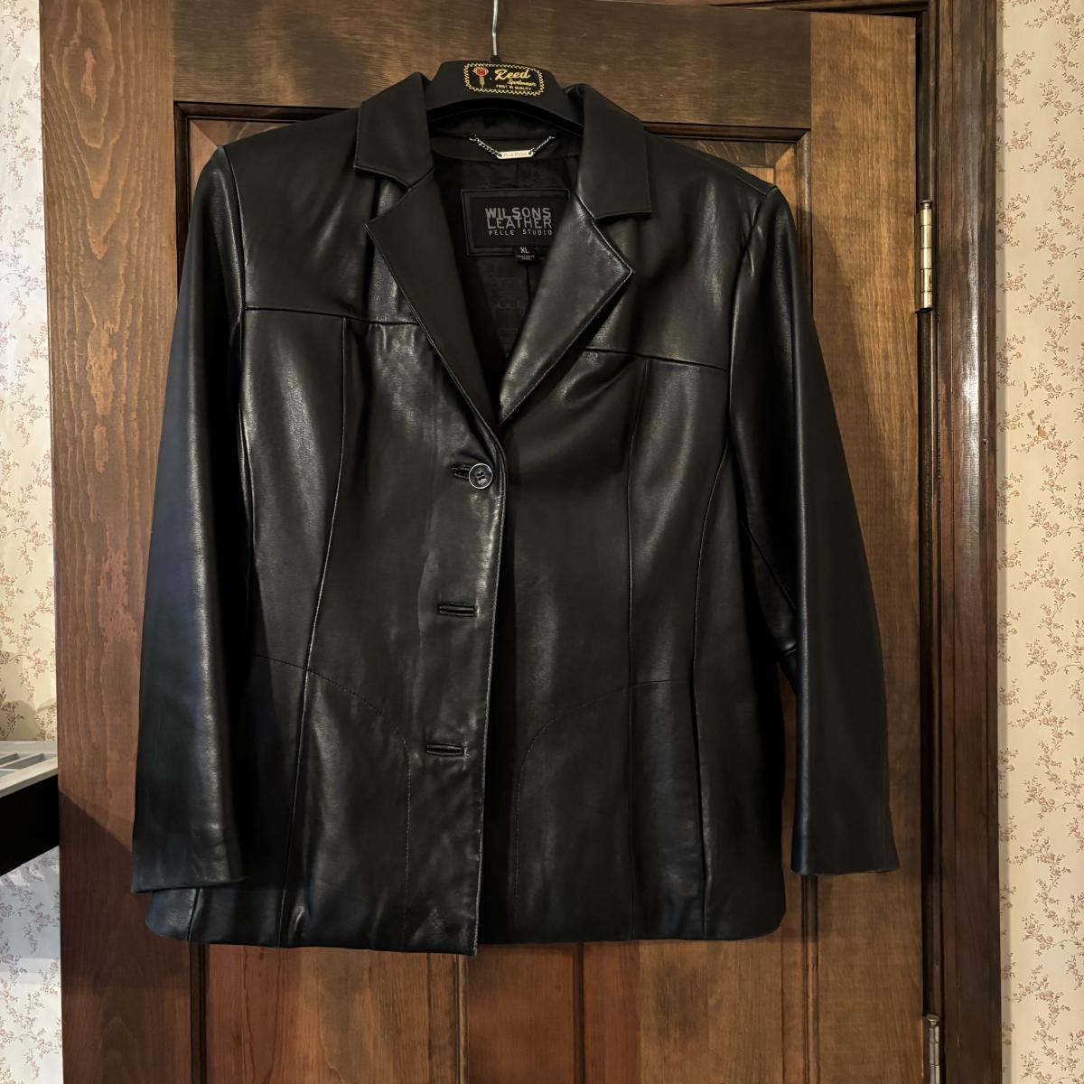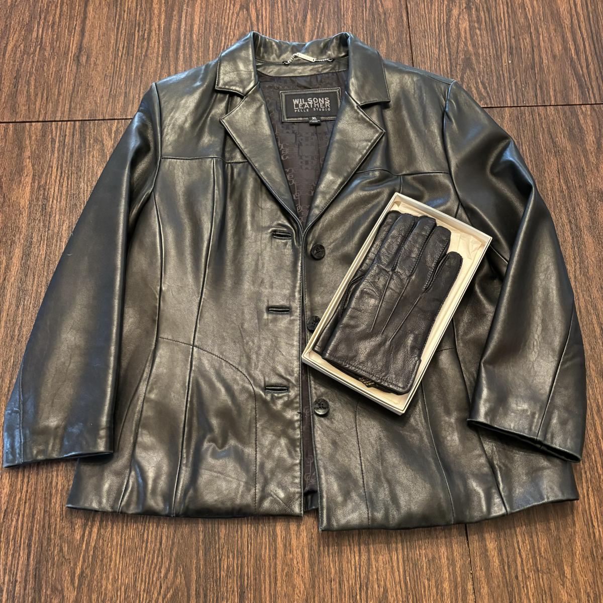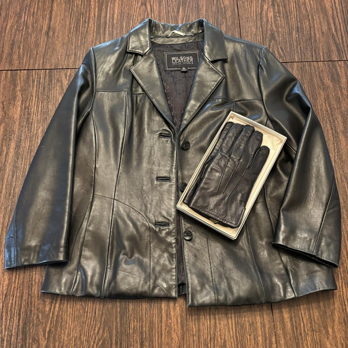 LOT 103 Vintage Wilson Leather Coat (XL) & Cowhide Gloves w/Fur Lining