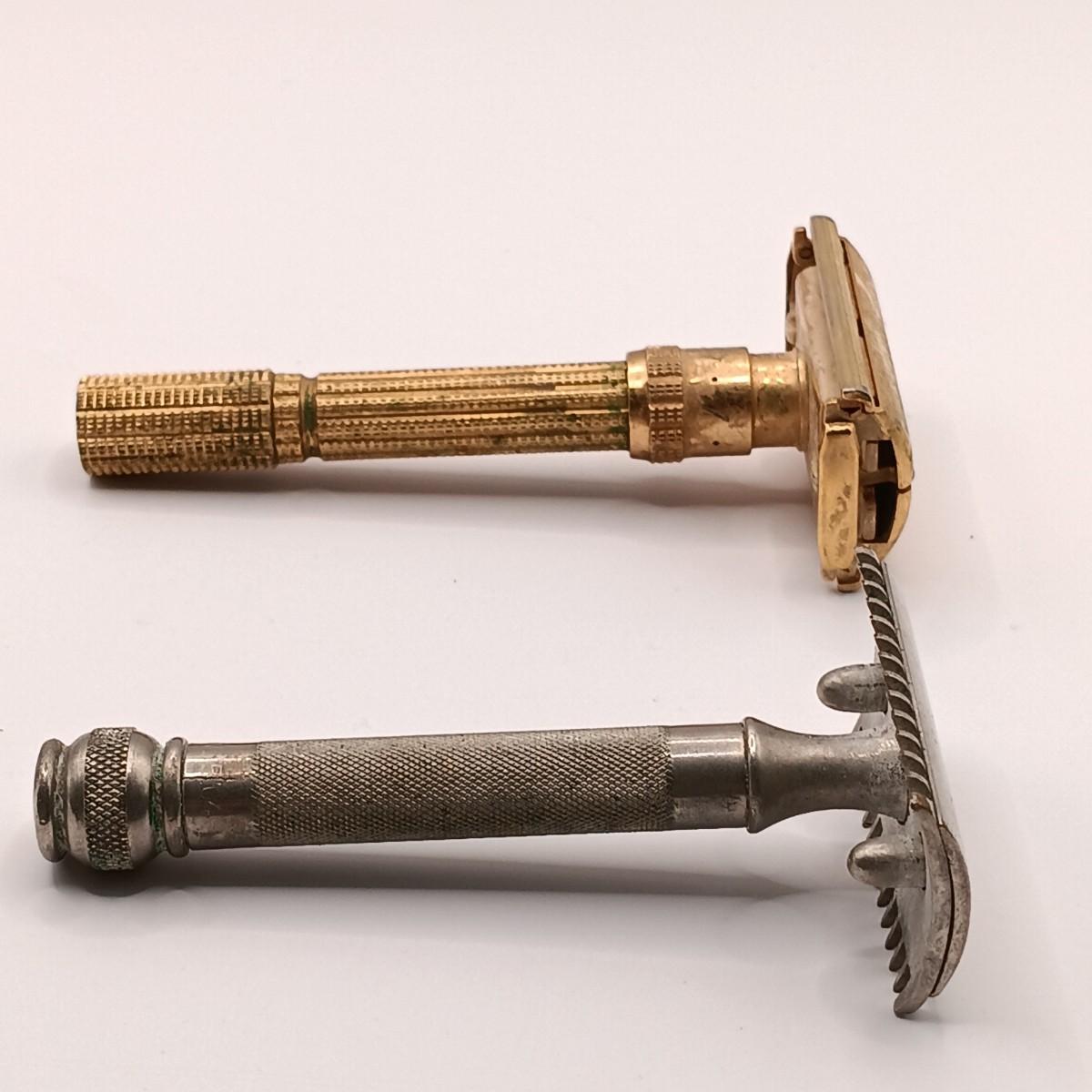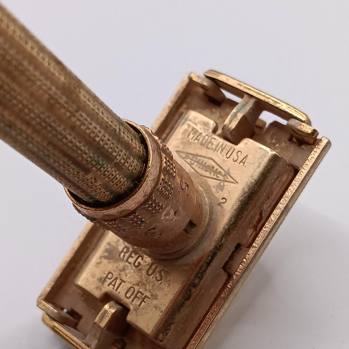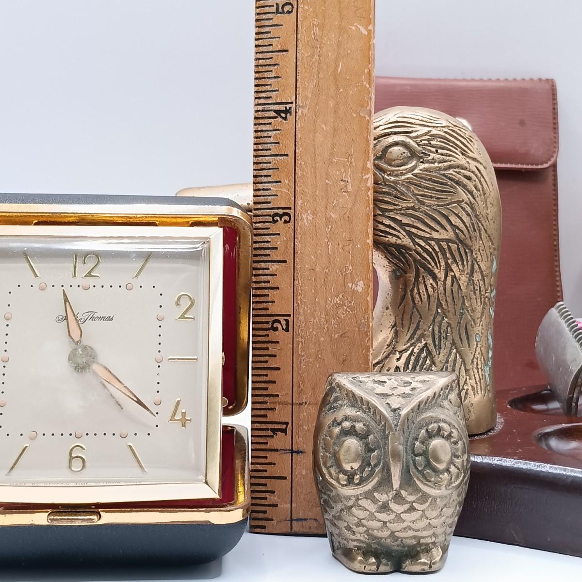 LOT 108: Wood Valet with Brass Duck Head, 1930s Gillette Oxford Safety Razor, Small Brass Owl Figurine & More