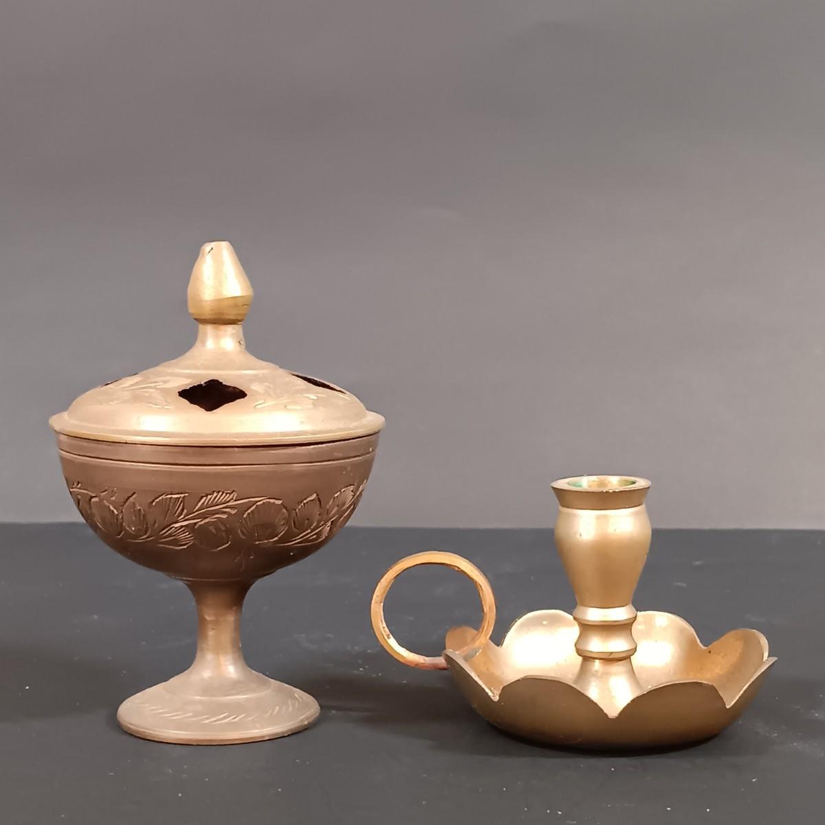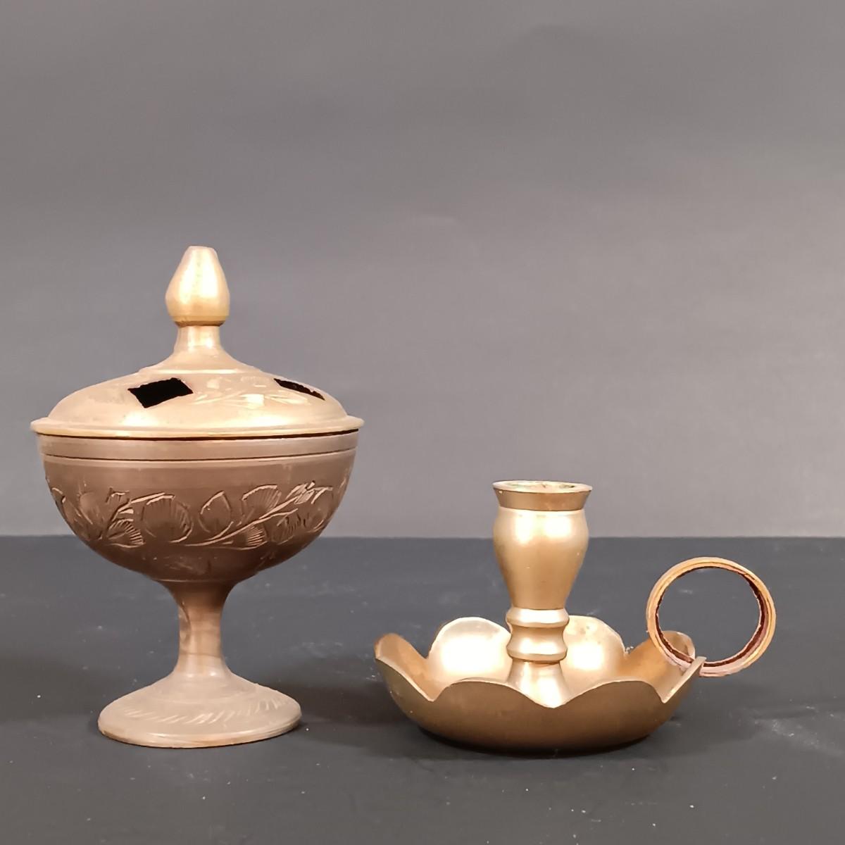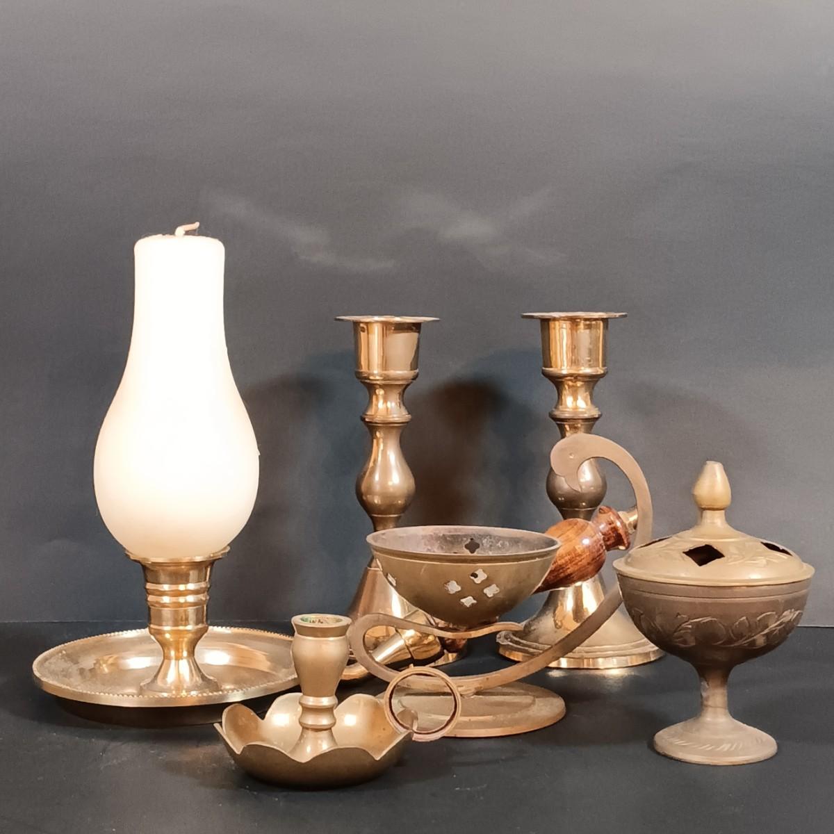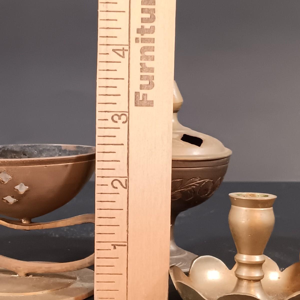 LOT 112: Assortment of Brass Candle Holders and Incense Burners