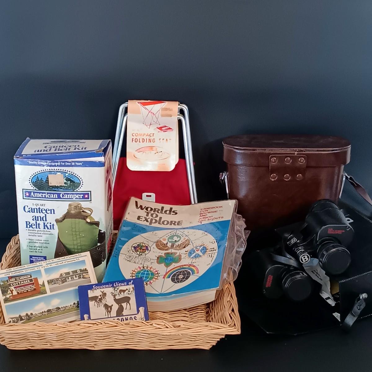 LOT 119: Bushnell Citation Binoculars, Compact Folding Seat, Vintage Girl Scouts Manual & More
