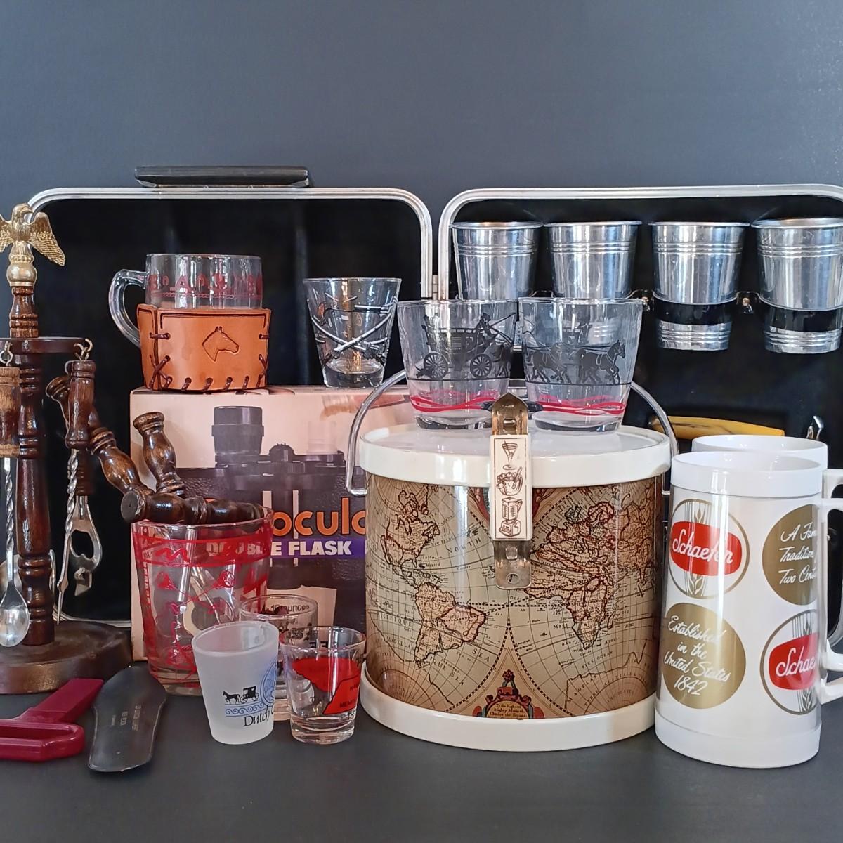 LOT 122: Portable Pub Case, Barnoculars, World Map Ice Bucket & More