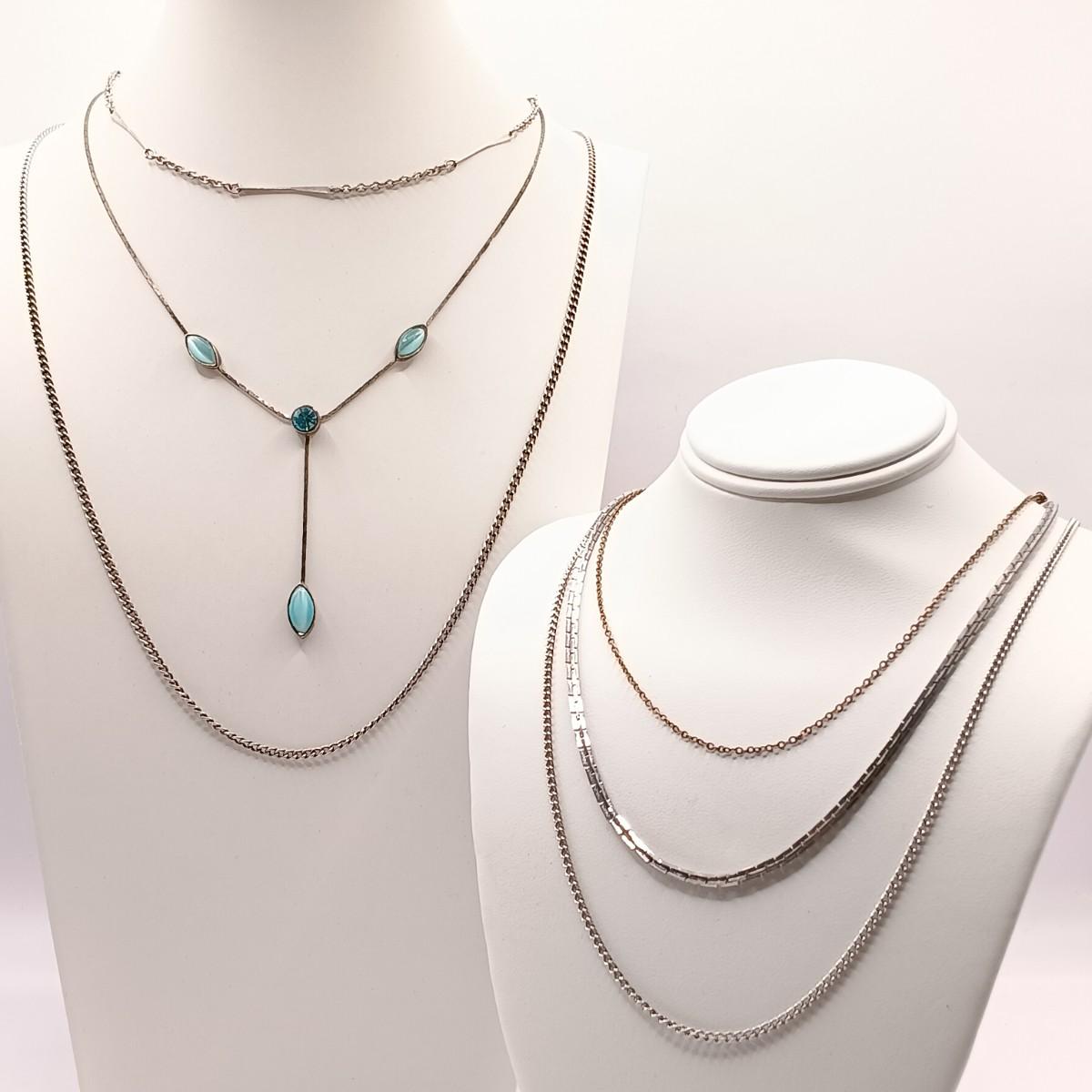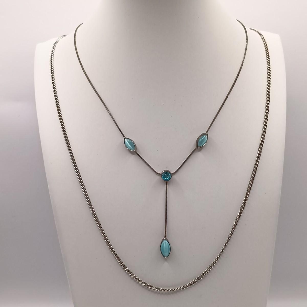 LOT 135: Blue Stone and Gem Drop Necklace with Several Silver-Tone Necklaces