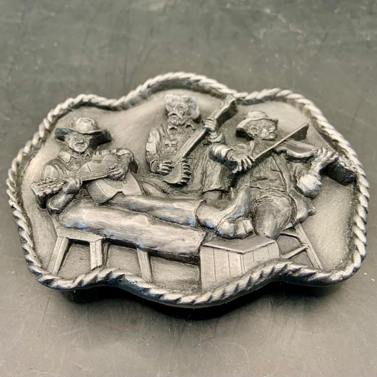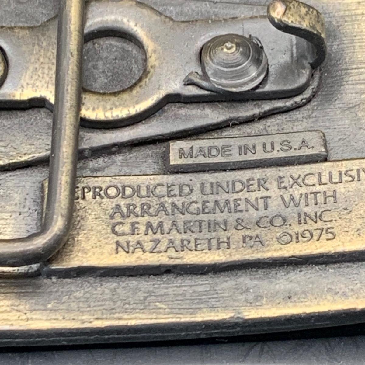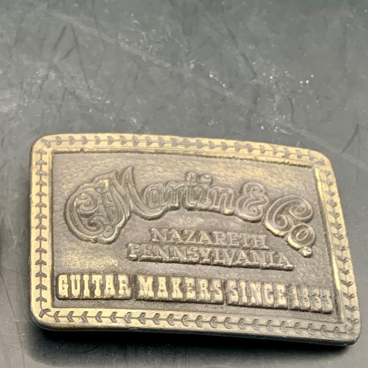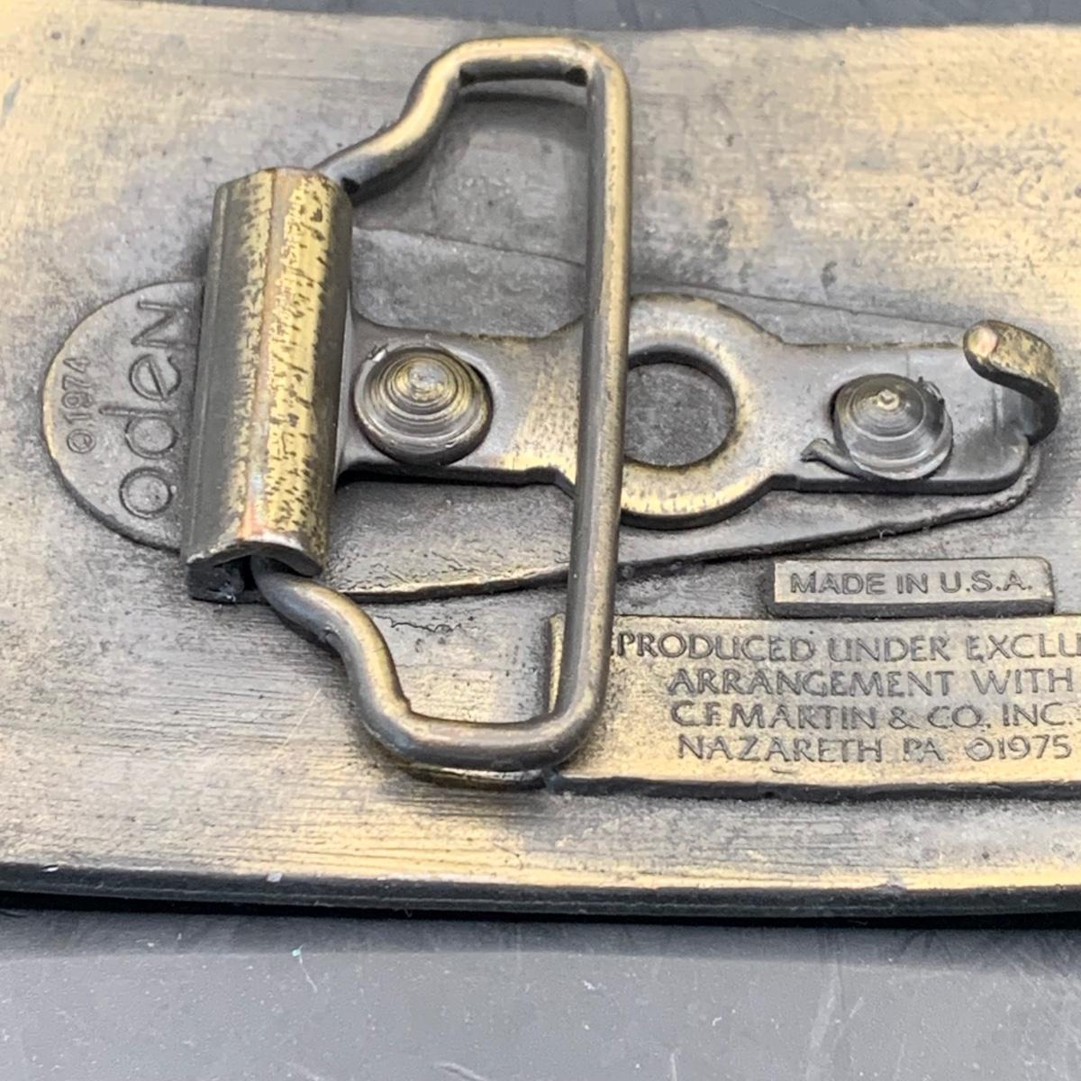 LOT:136:Set of 3 Vintage Belt Buckles - 1982 Siskiyou Blue Grass Music Buckle, Martin Guitar 1975 Buckle and 1979 Indiana Metal Craft Guitar Buckle