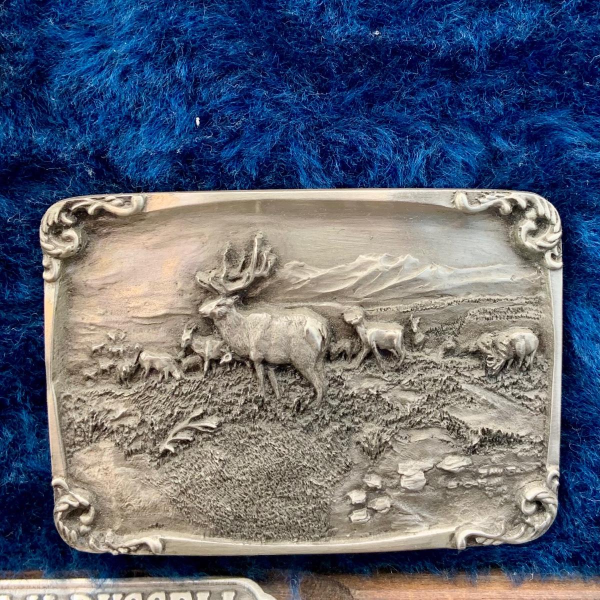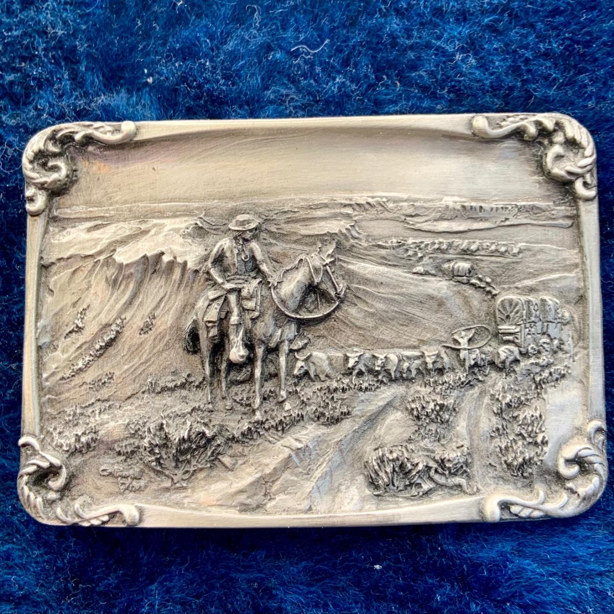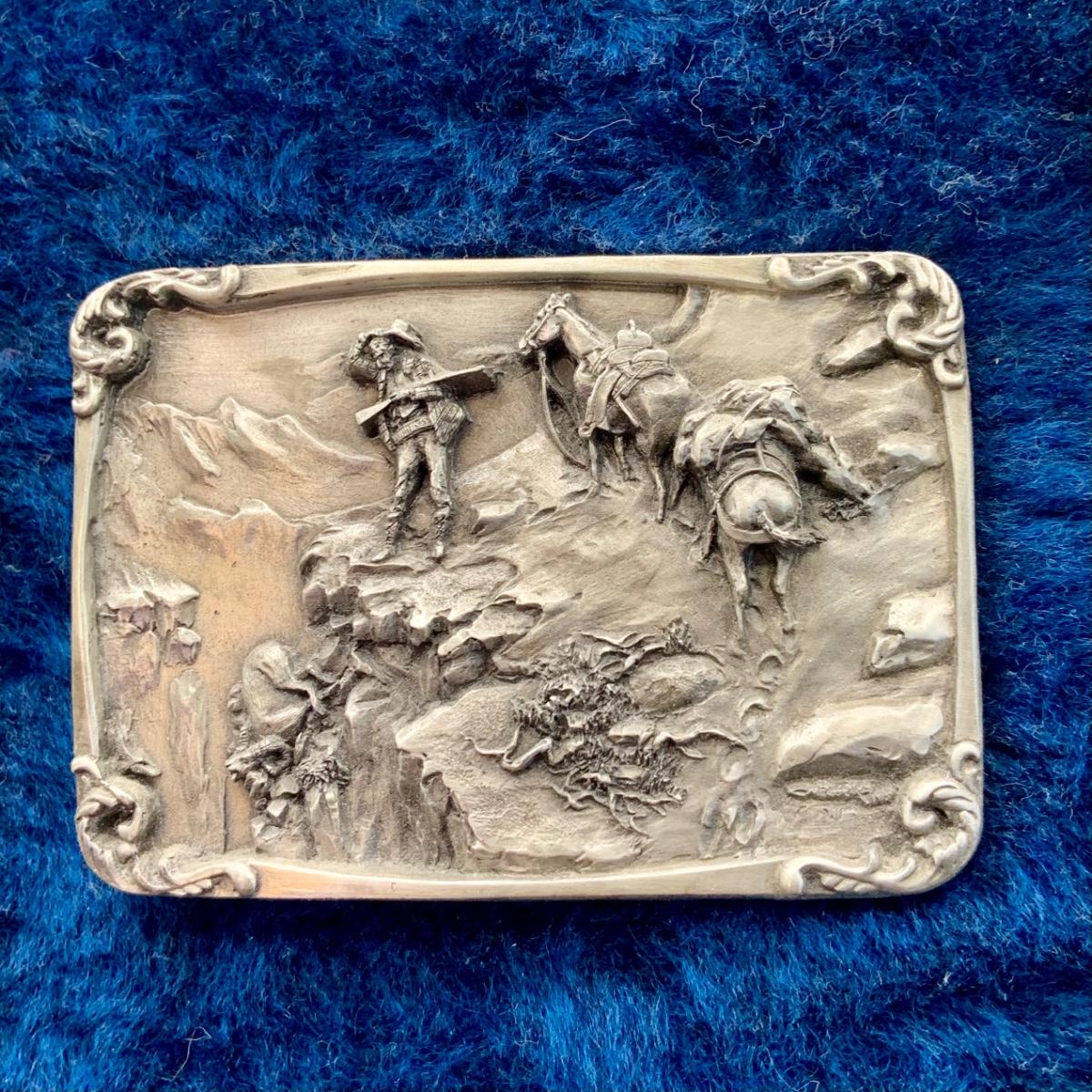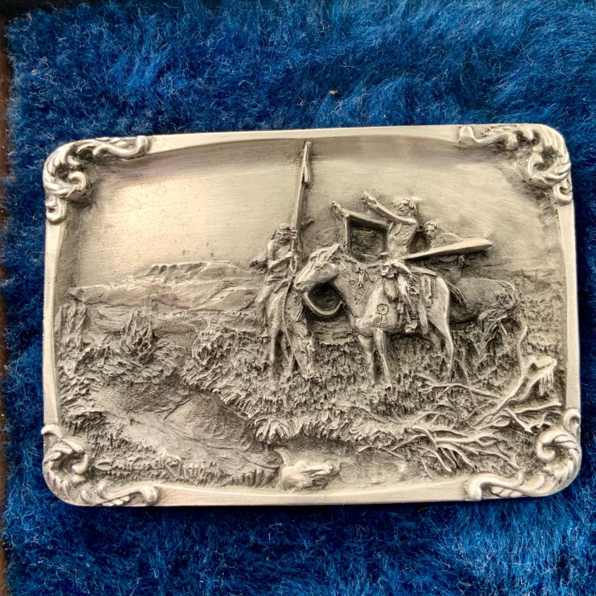 LOT:139:Collection Display of 4 Mounted Buckles - Charles M. Russell Limited Edition By Siskiyou Buckle Co