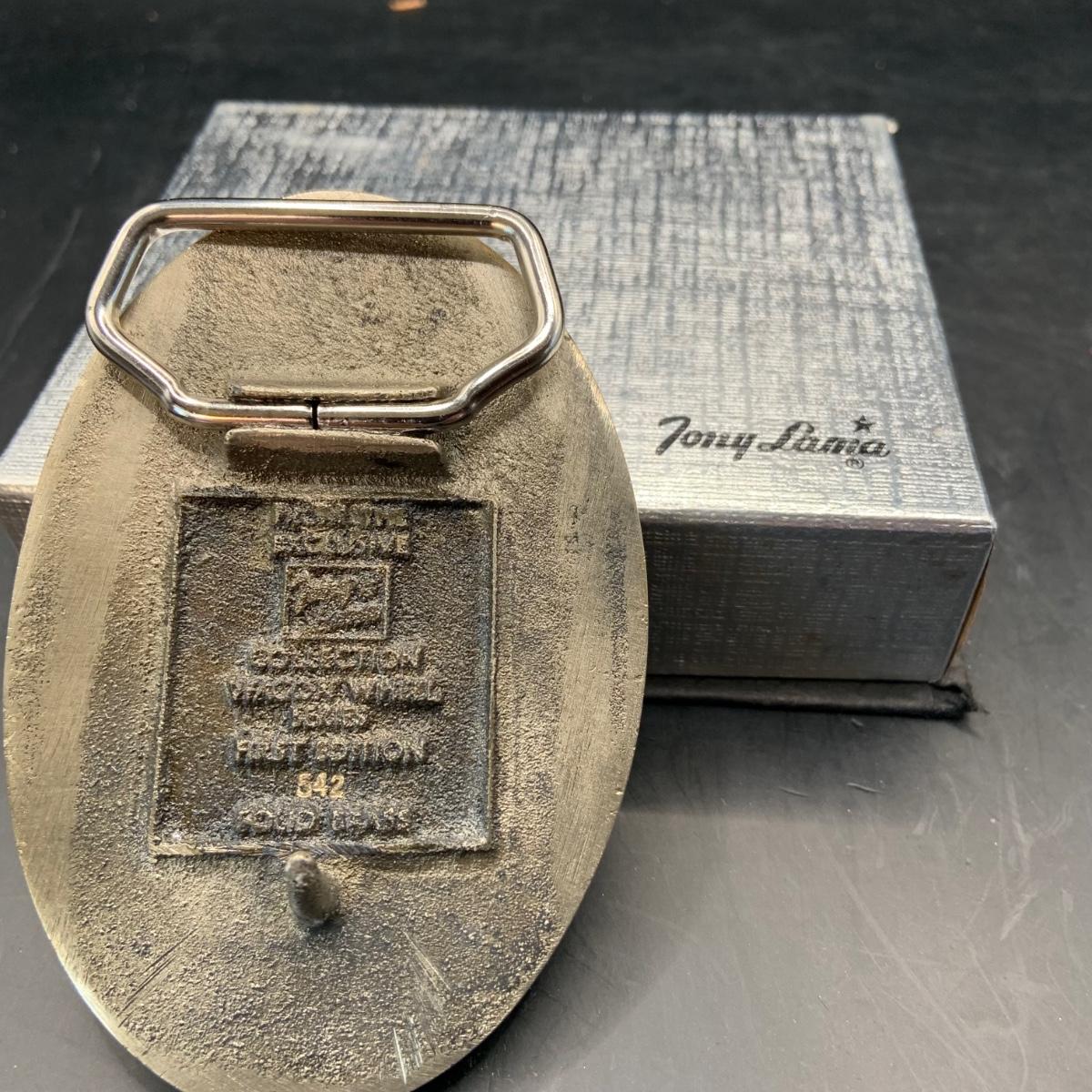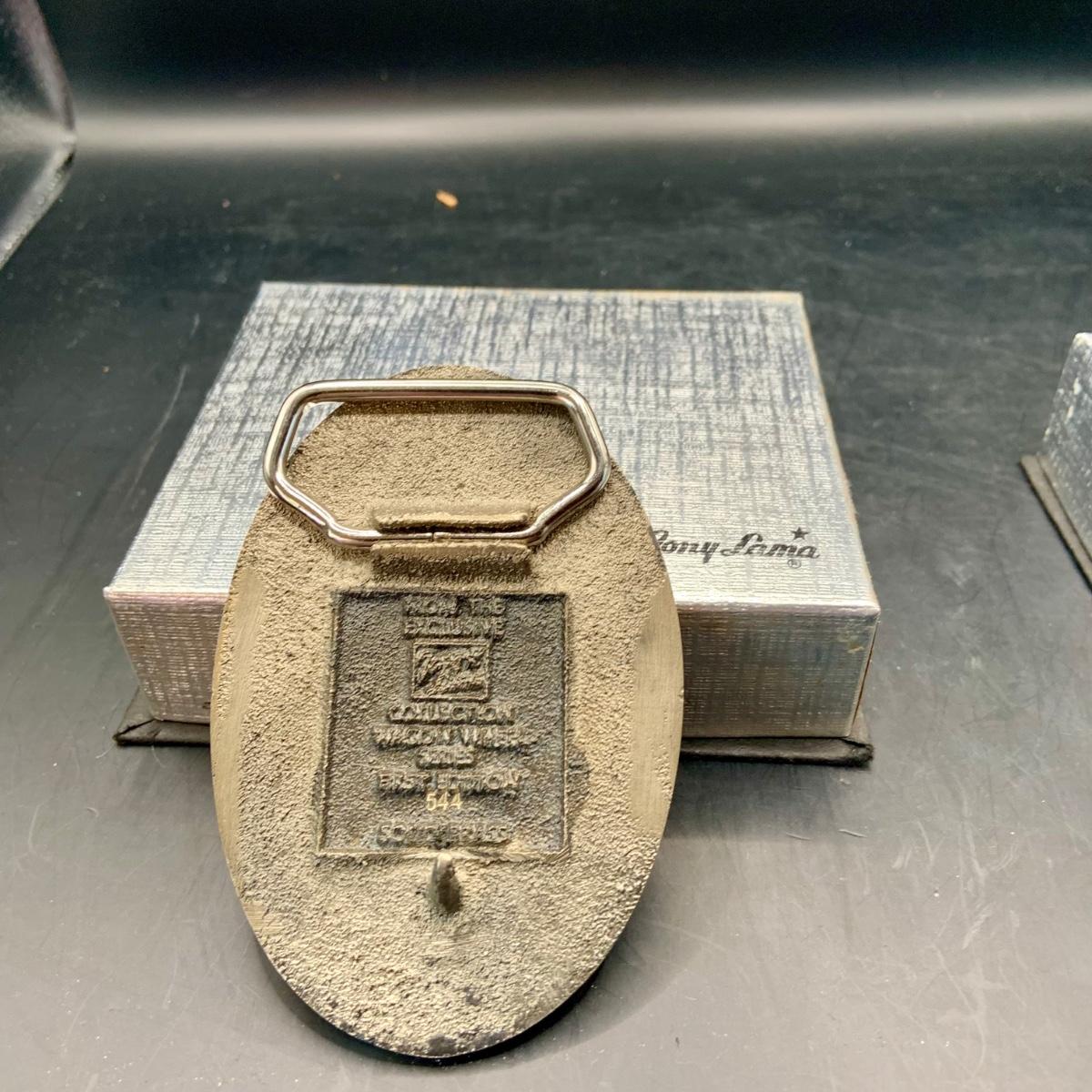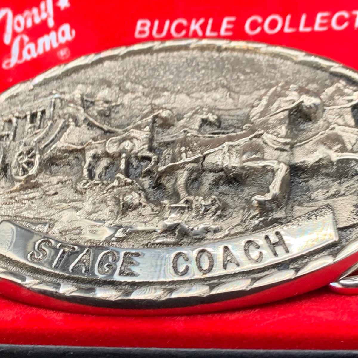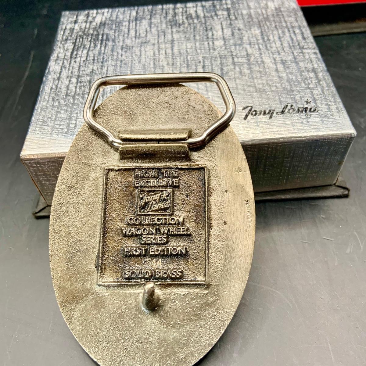 LOT:142:Tony Lama First Edition Limited Series of 4 Brass Belt Buckles - Wagon Wheels- Includes Medicine Wagon, Prairie Schooner, Buck Board Wagon and Stage Coach In Original Boxes