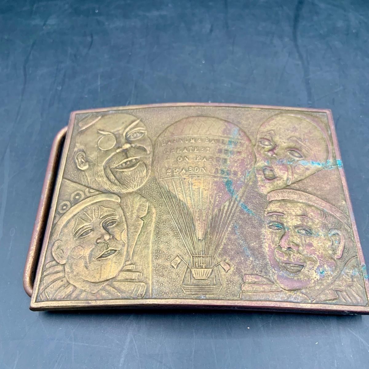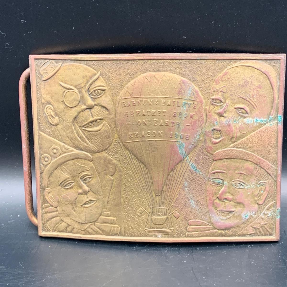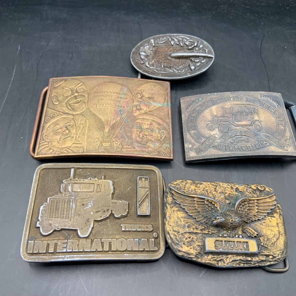 LOT145::Vintage/Antique Brass Belt Buckles Featuring Tiffany & Co Barnum & Baley's 1908 Commemorative Buckle, Tiffany Studio's Suzuki, Henry Ford Model T, International Trucks and More