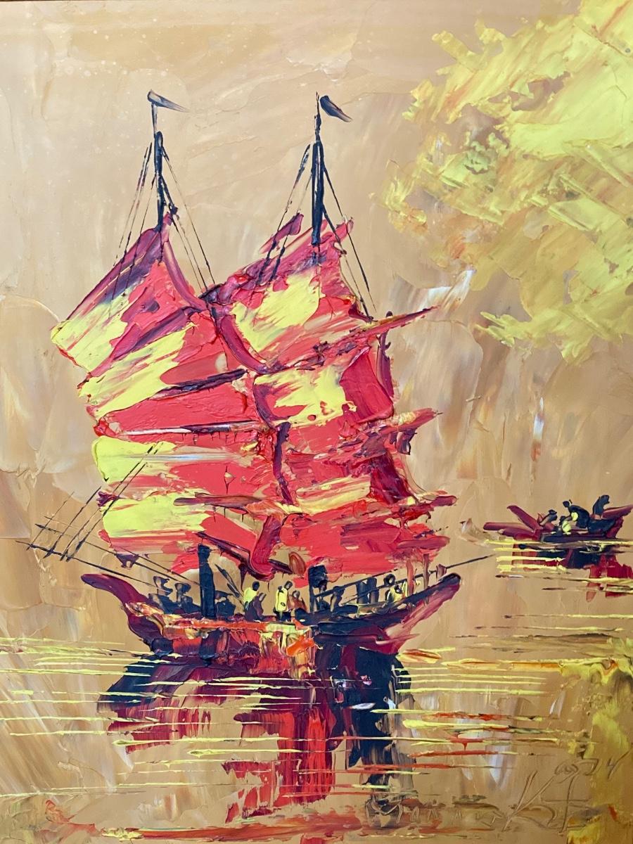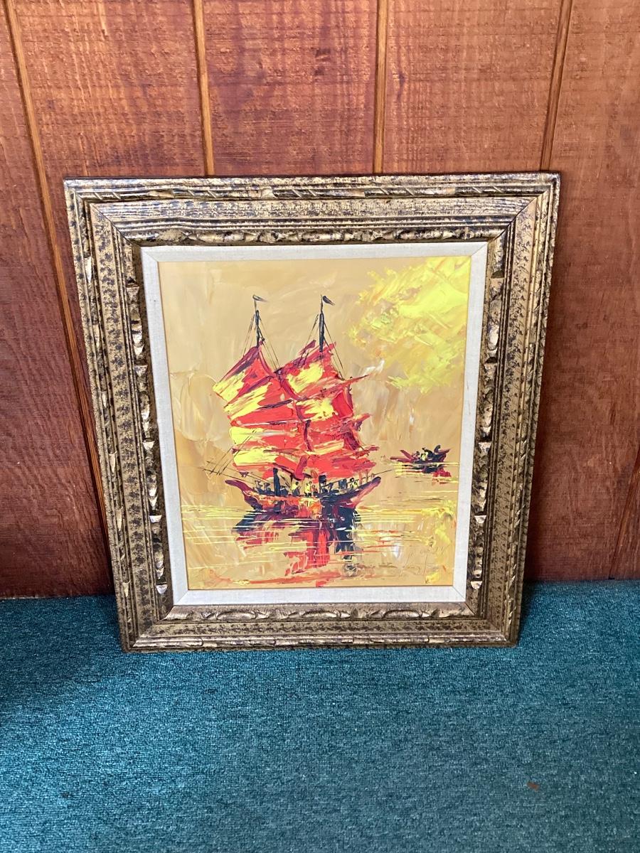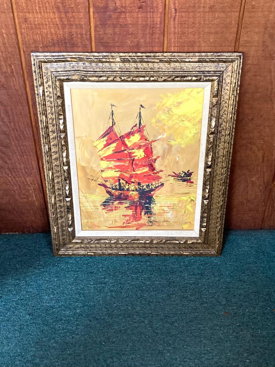 LOT 169: Mid-Century Nautical Signed Oil Painting
