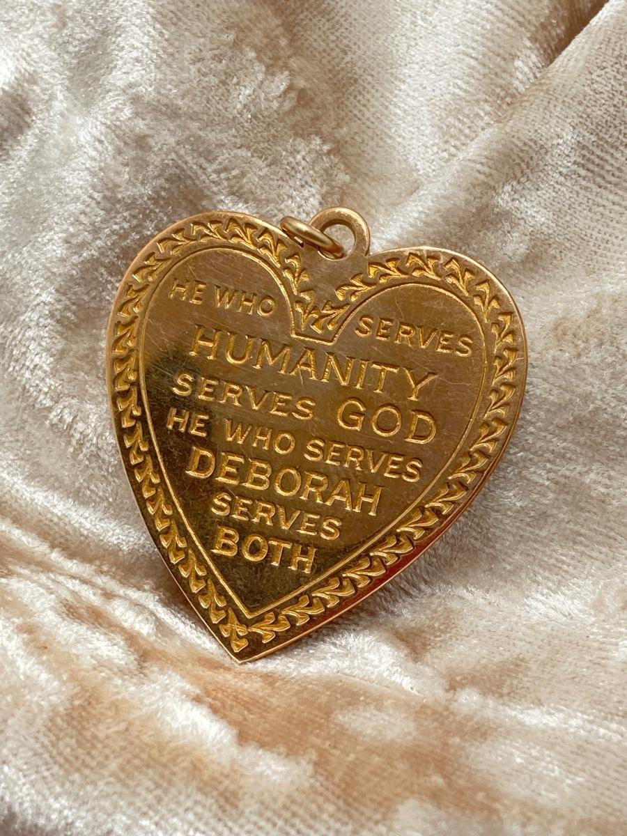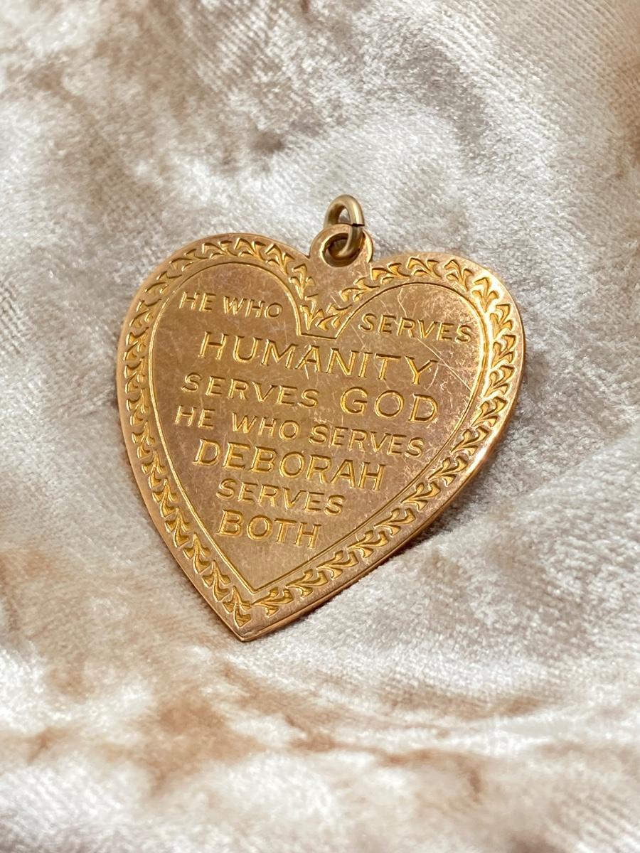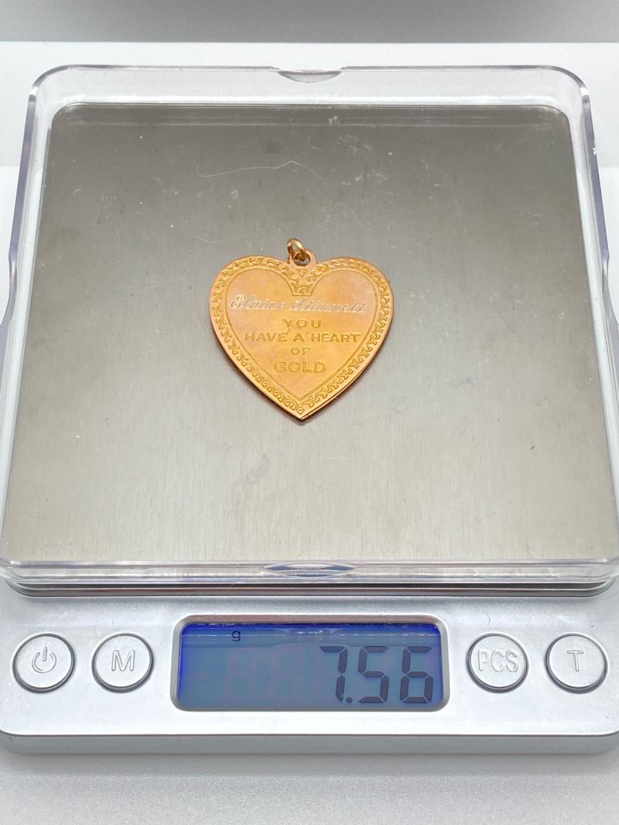 LOT 171: Personalized Gold Humanity Heart Pendant - 10KT, TW 7.56g