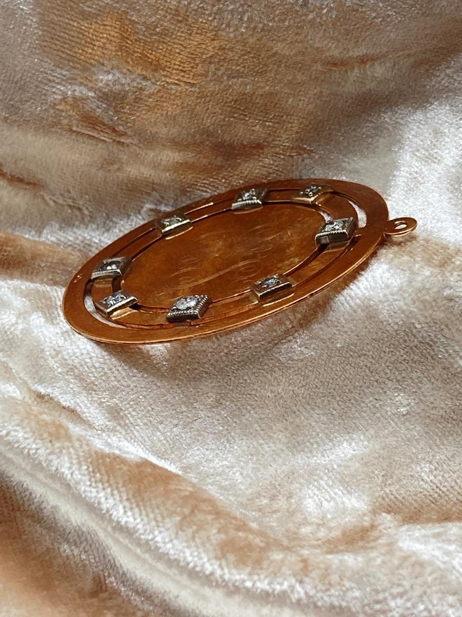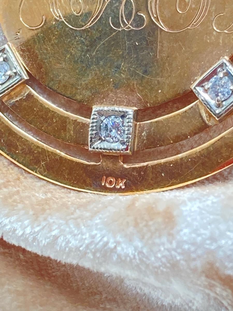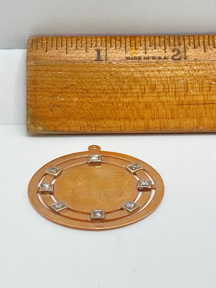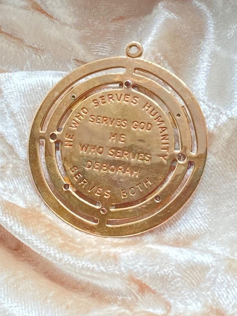 LOT 173: Gold Personalized Humanity Pendant with Clear Stones - 10KT, TW 9.40g