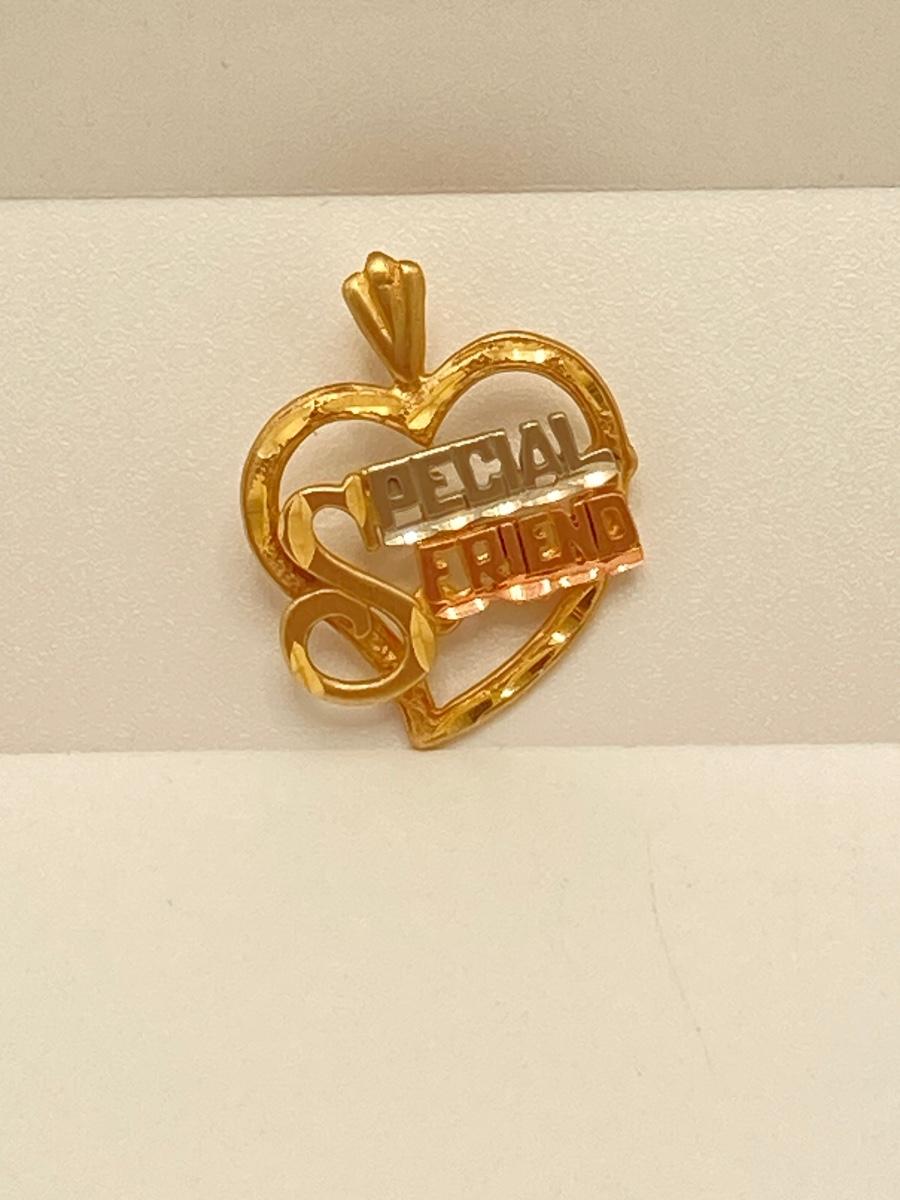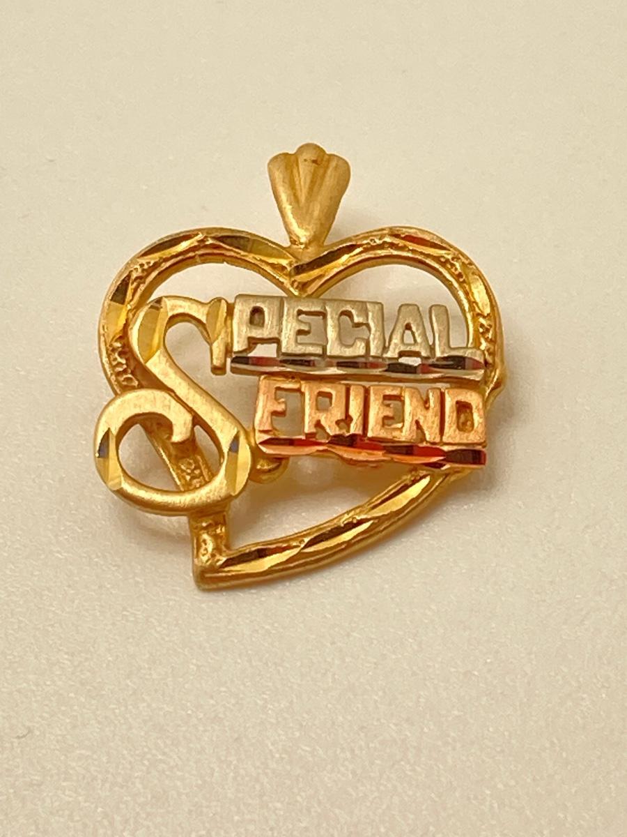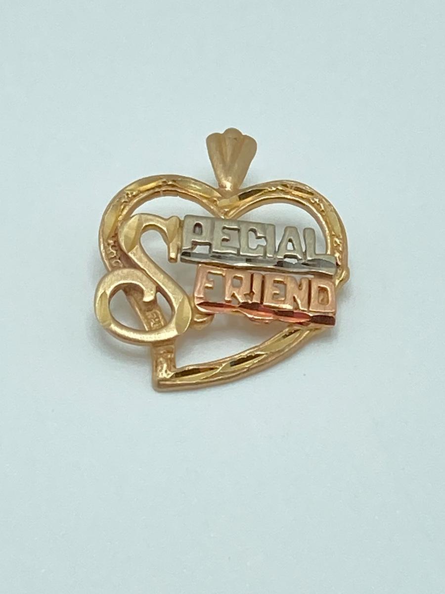 LOT 174: Tri-Colored Gold "Special Friend" Heart Pendant - 14KT, TW 1.90g