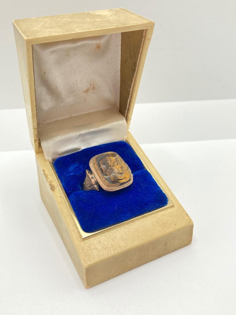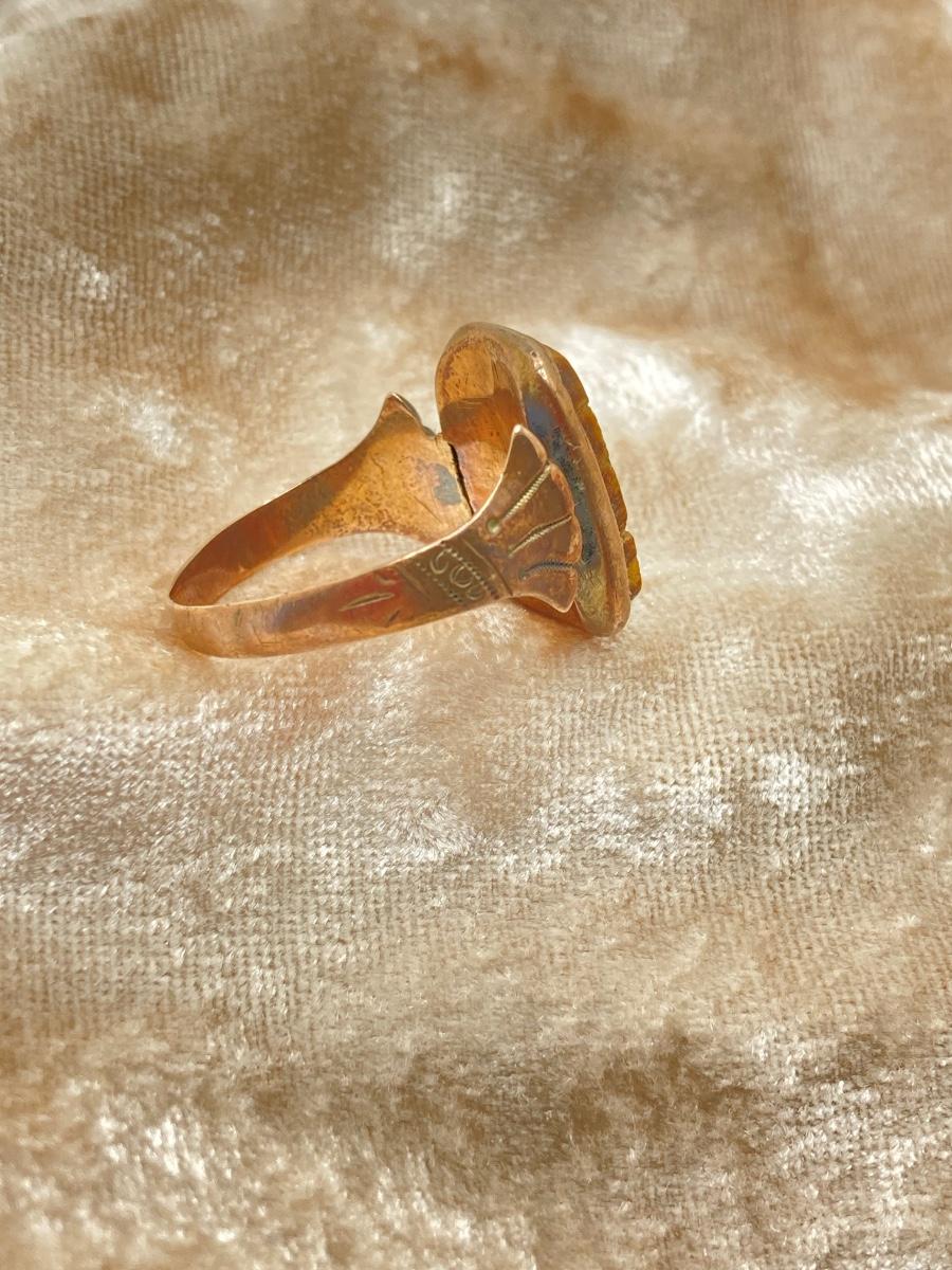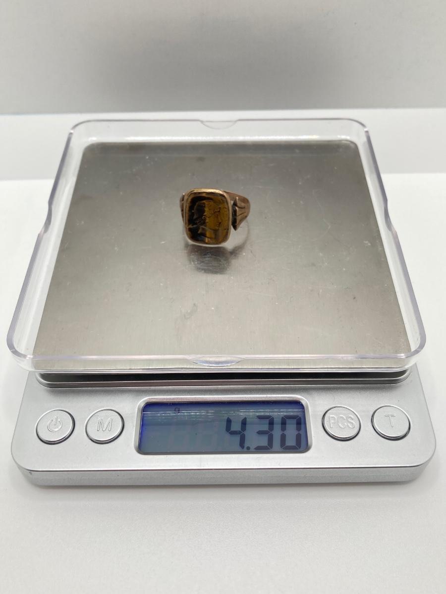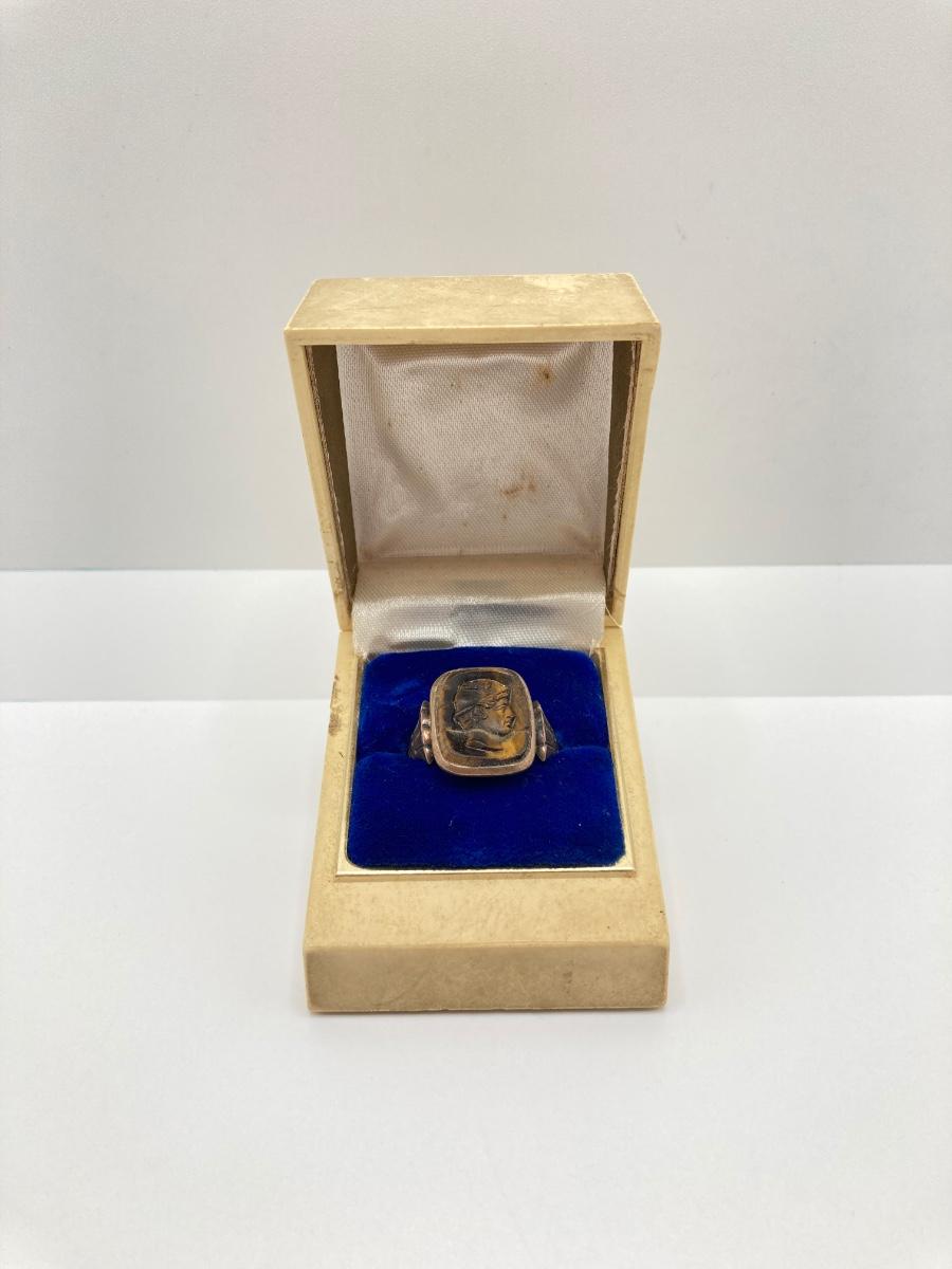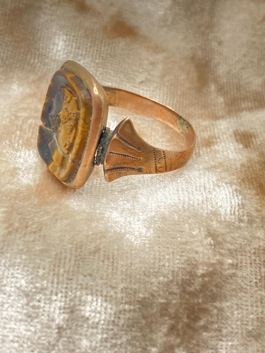 LOT 182: Vintage Tiger's Eye Intaglio Ring Hermes Relief - 10KT, TW 4.30g, Sz 9.75