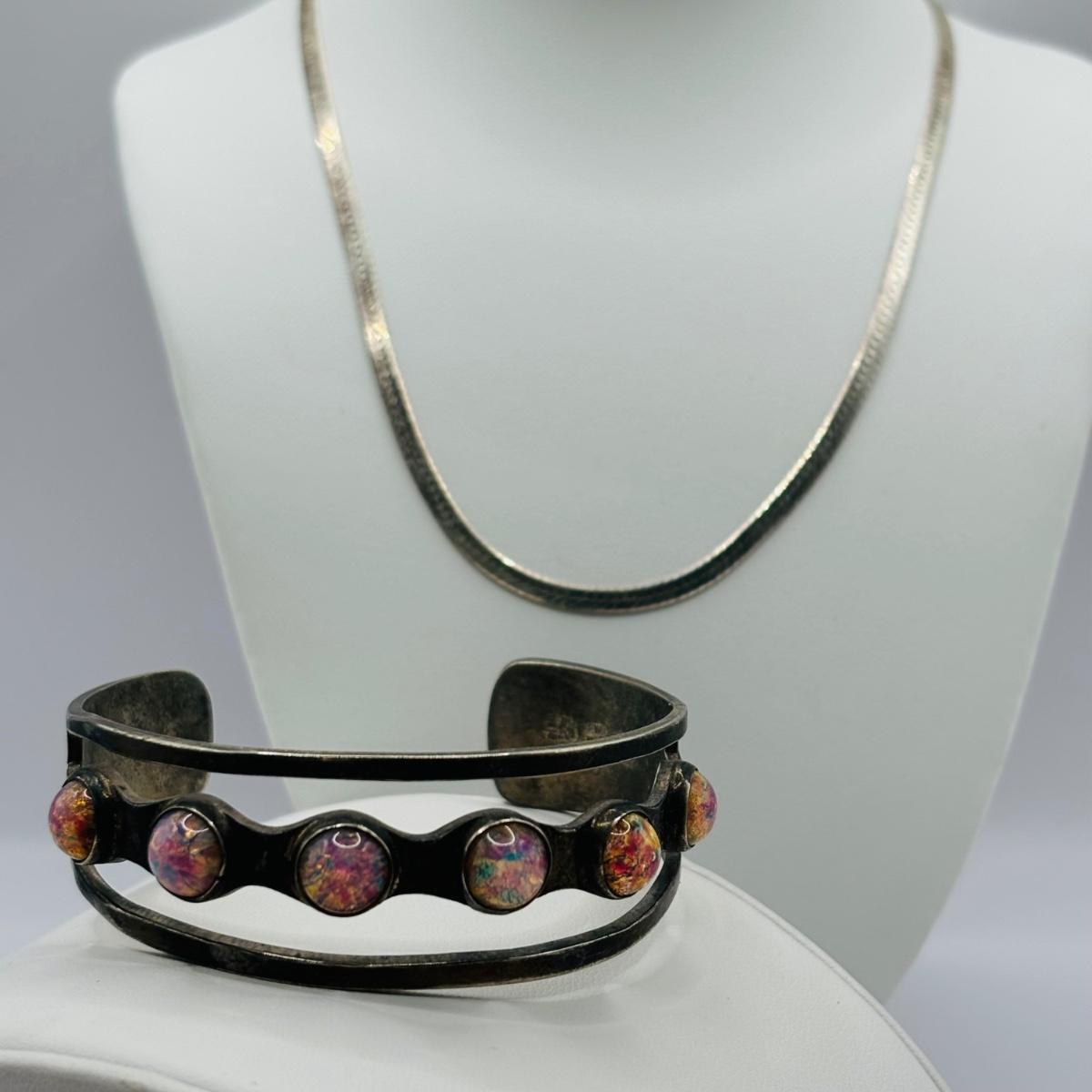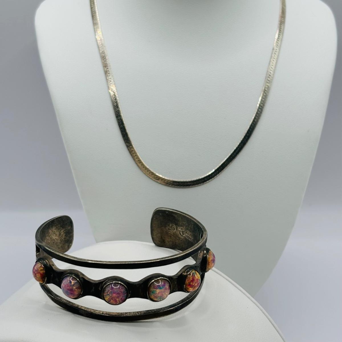 LOT 194: Heche En Mexico Silver Bracelet & Sterling Silver 925 Italy 22" Chain