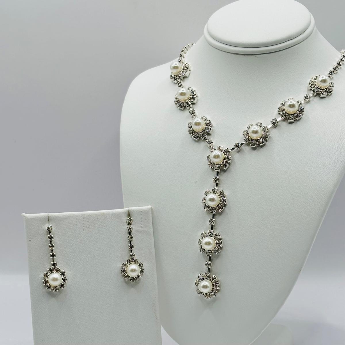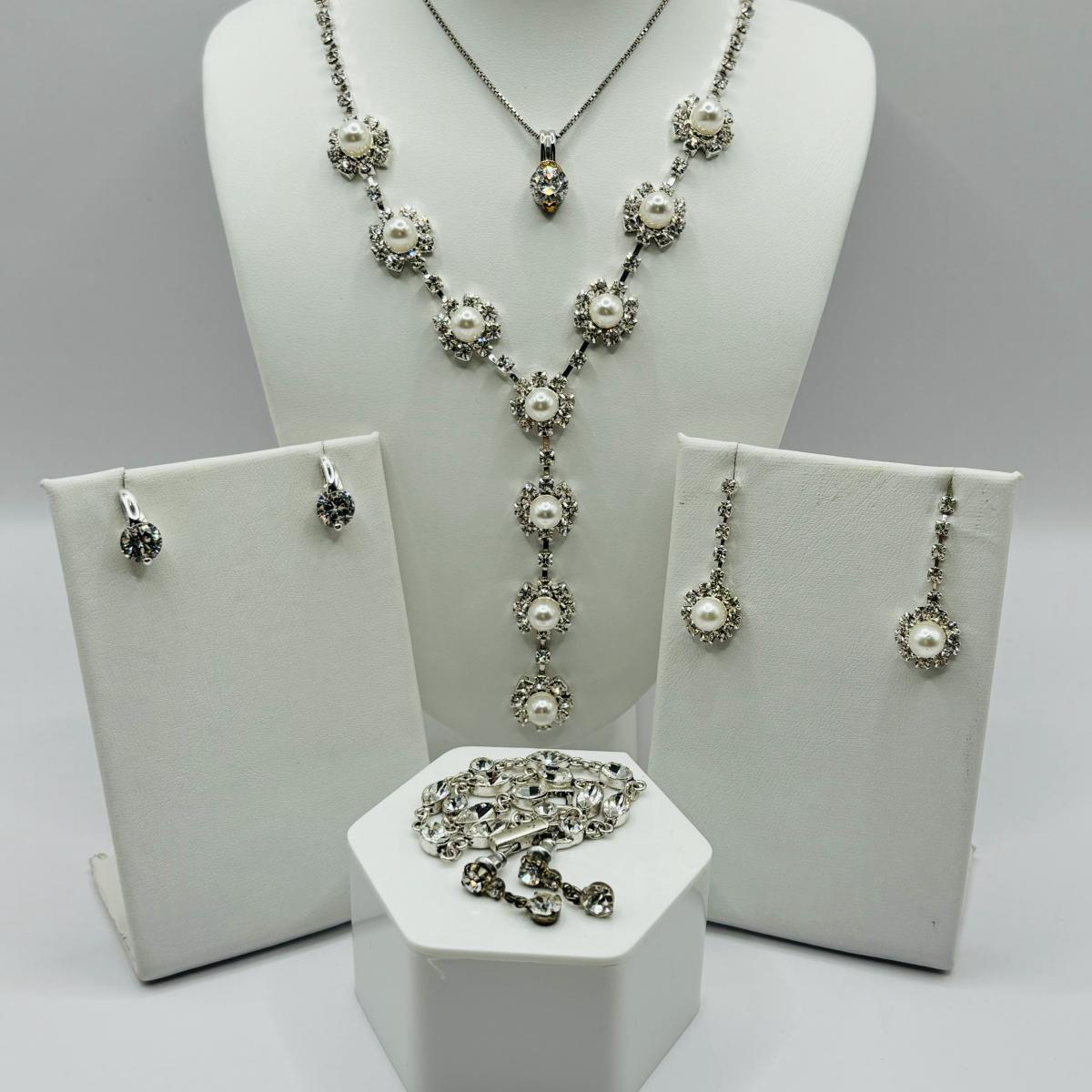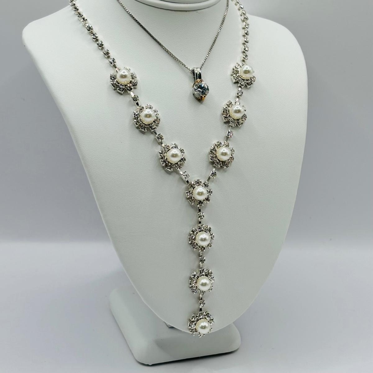 LOT 203: Sterling Silver 925 Italy Necklace w/CZ Pendant, Rhinestone/Pearl Necklace & Earring Set & More