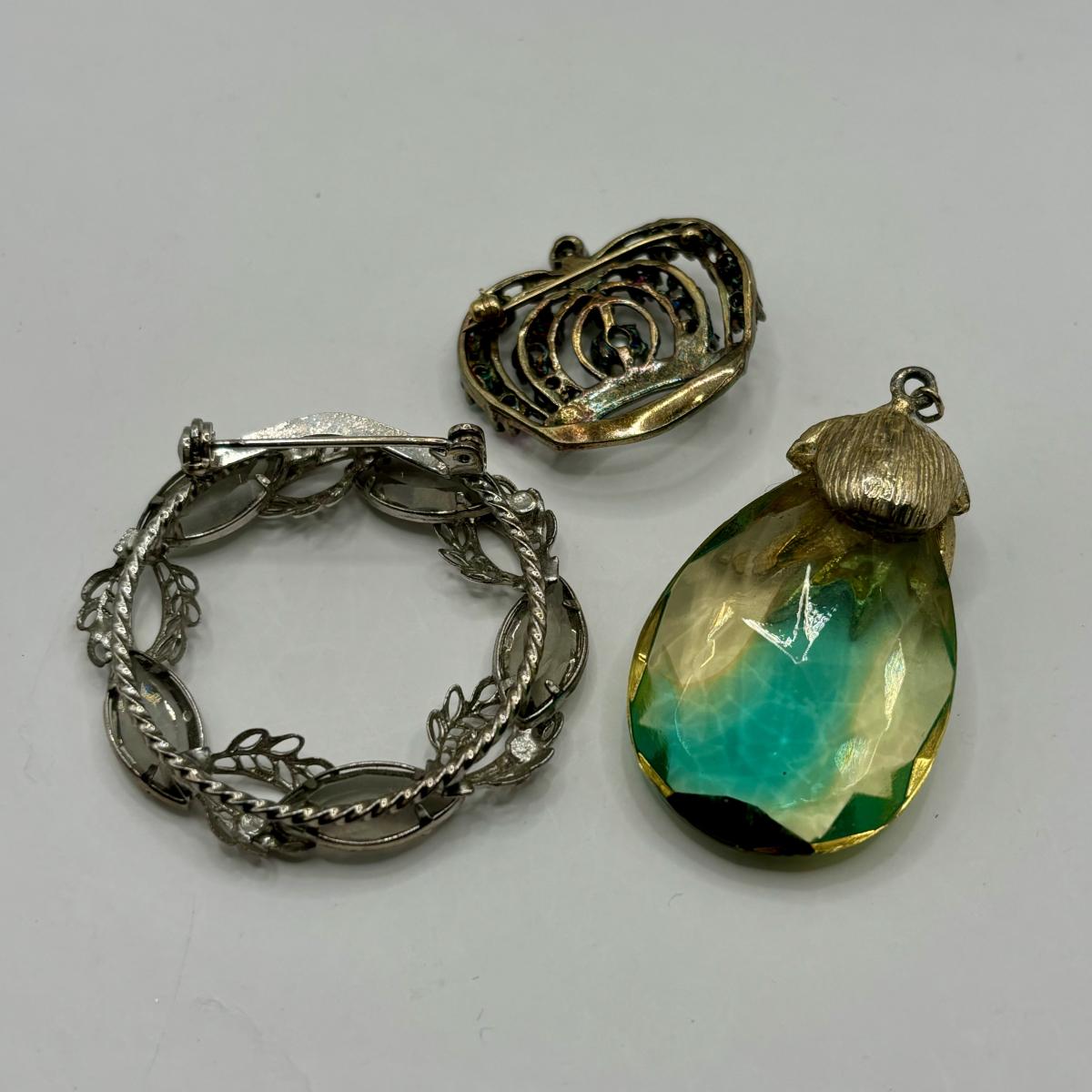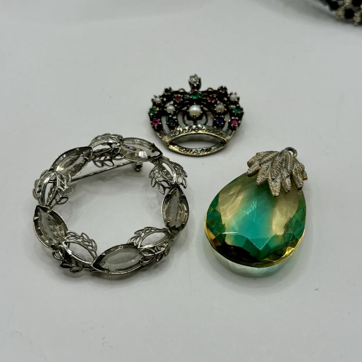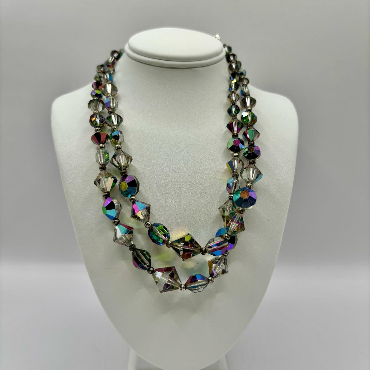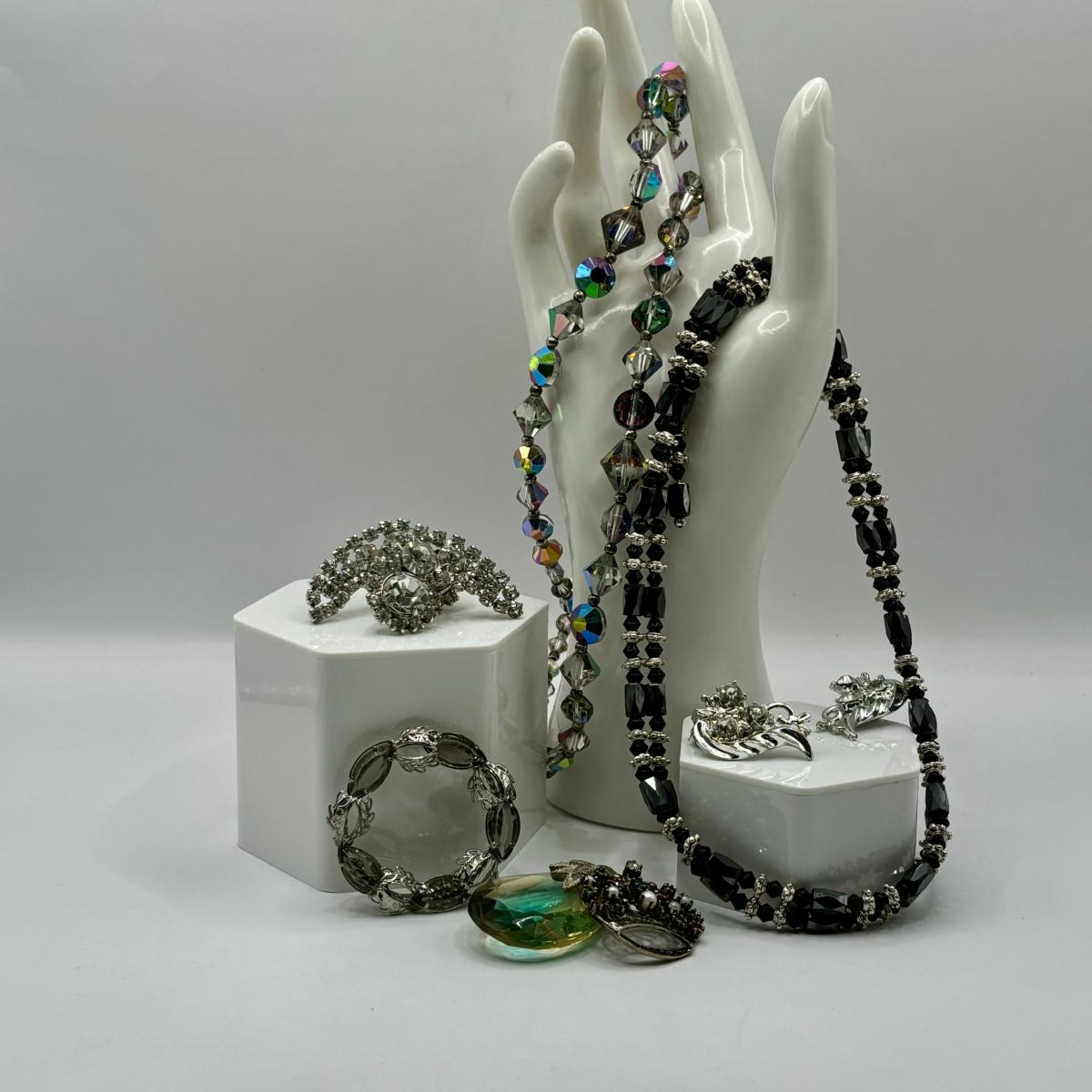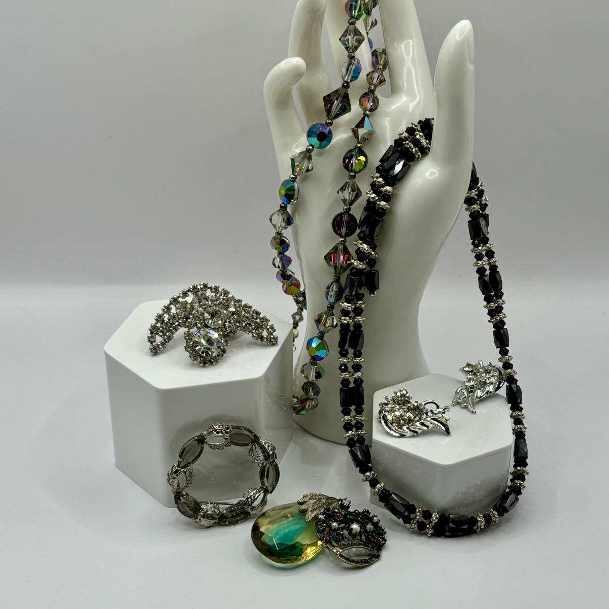 LOT 205< Vintage Aurora Borealis Necklace, Magnetic Necklace, Clip-On Rhinestone Earrings, Crystal Pendant & Brooches