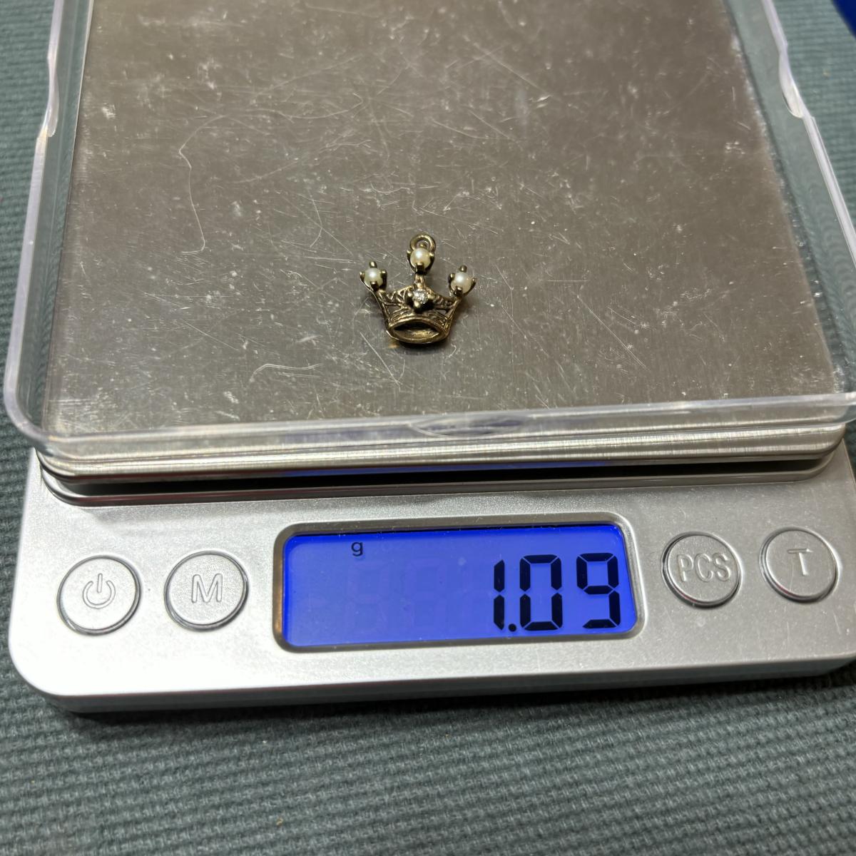 Crown w/seed pearls acid tested 10k - Tw 1.09