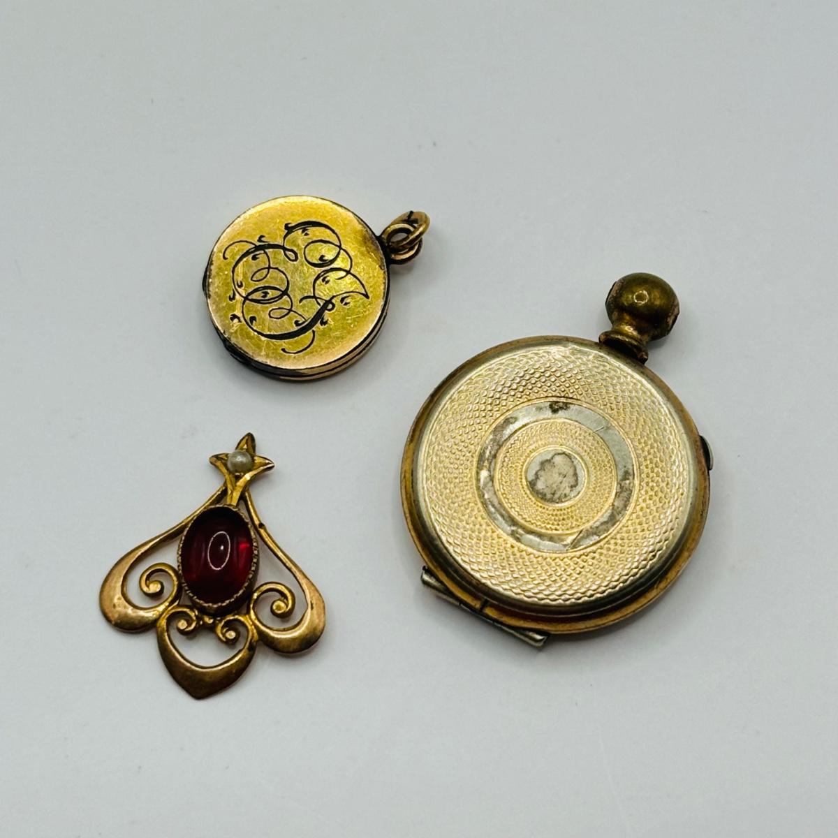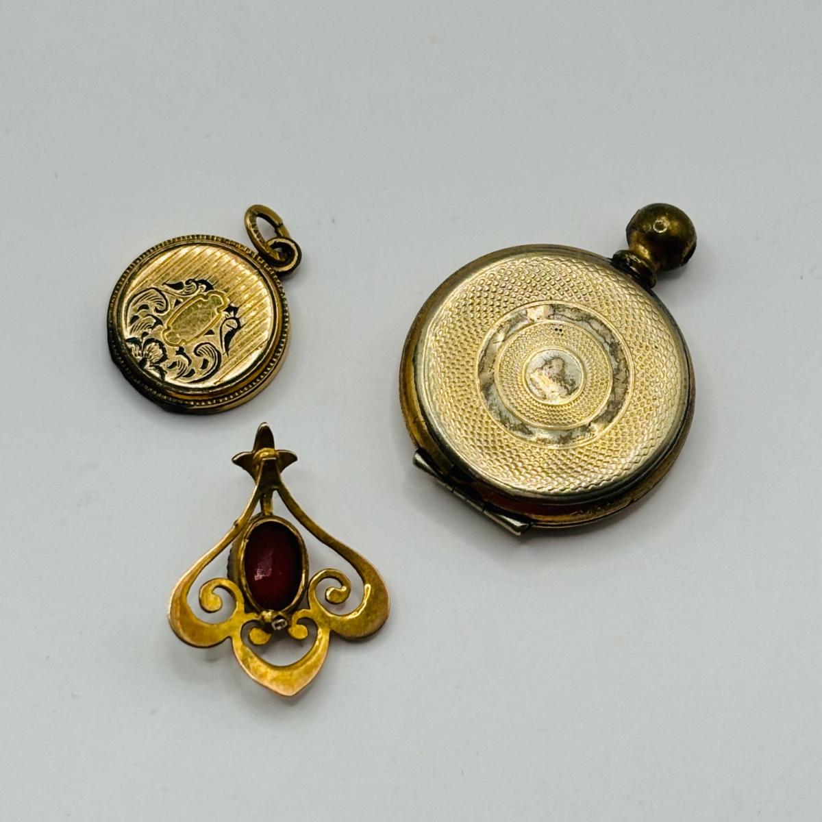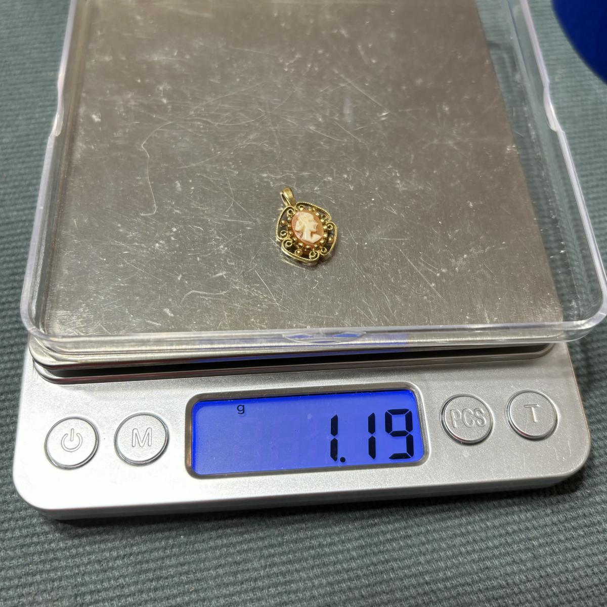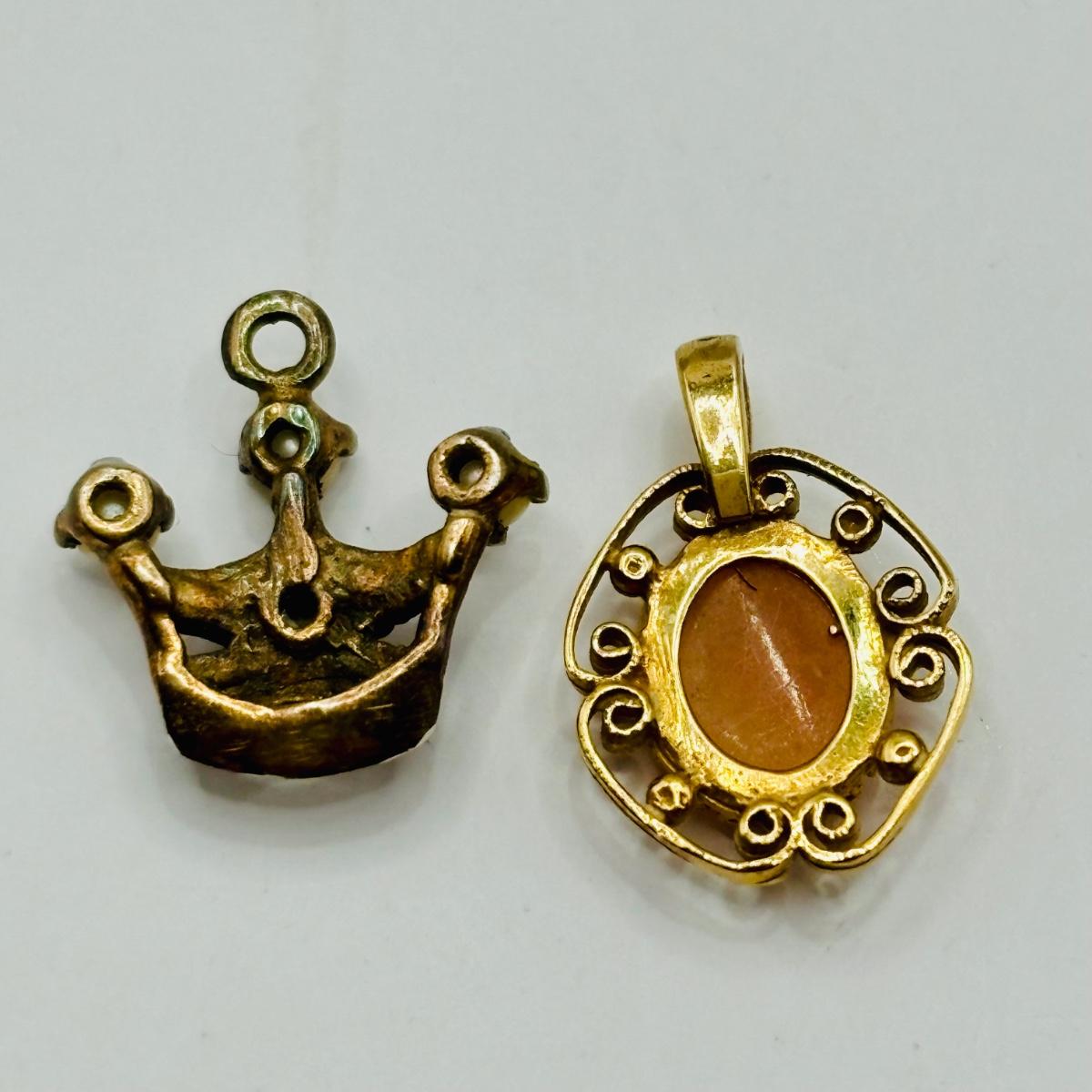 LOT 211: Gold Fill 1/20 14K Double Chain Necklace, Cameo Pendant/Charm 14k, Crown w/Seed Pearls 10k, & Gold Tone Charms