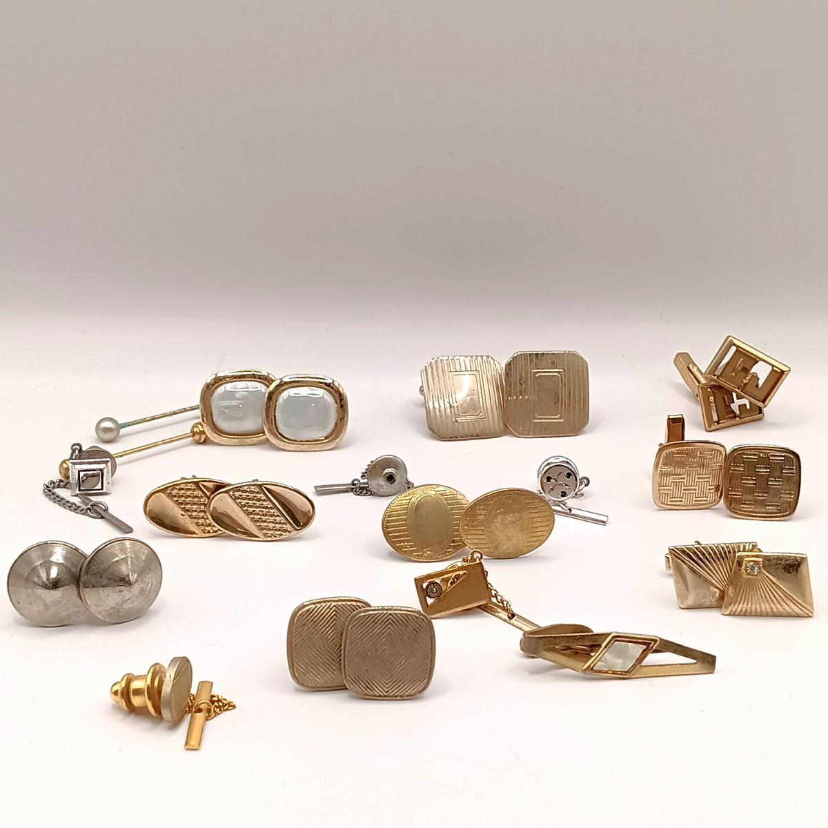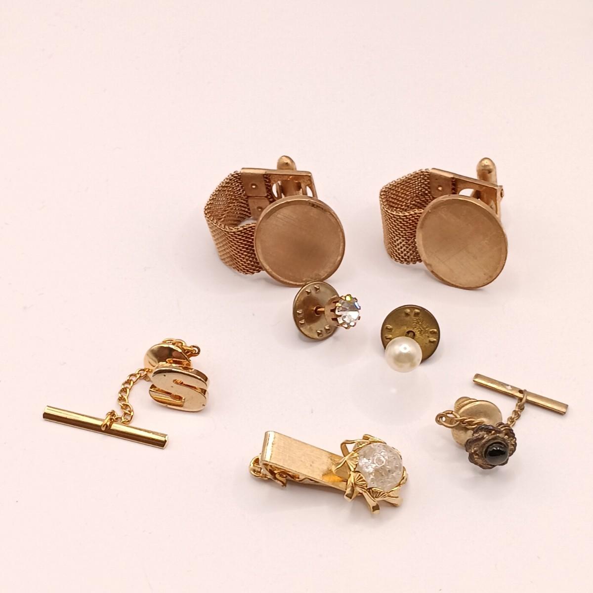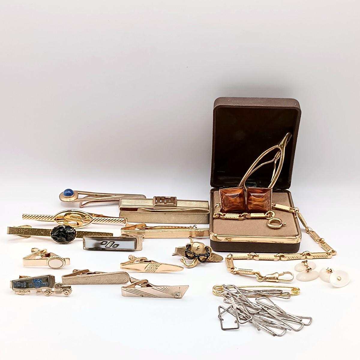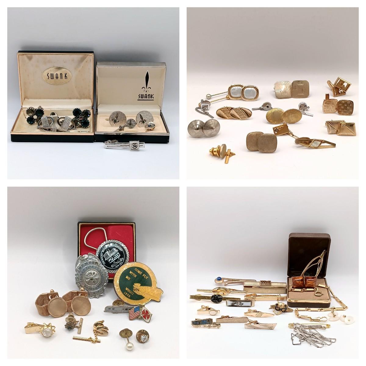 LOT 218: Vintage Men's Fashion- Swank Cufflinks and Tie Accessories, Anson Mesh Cuff Links, Watch Chain & More