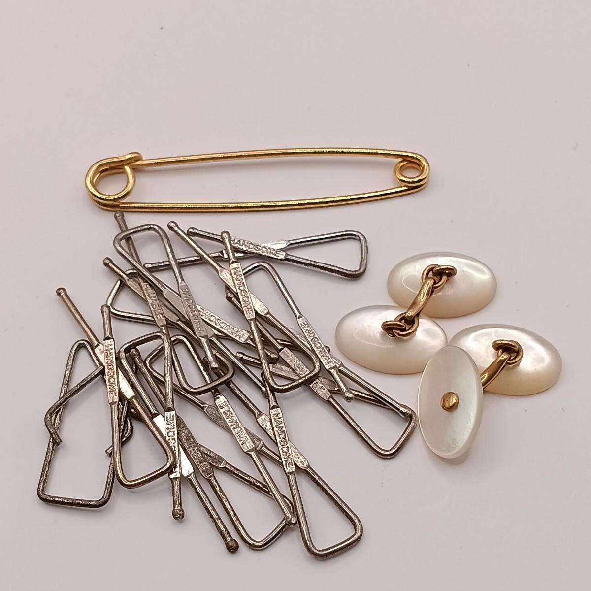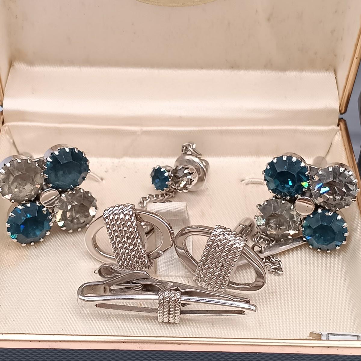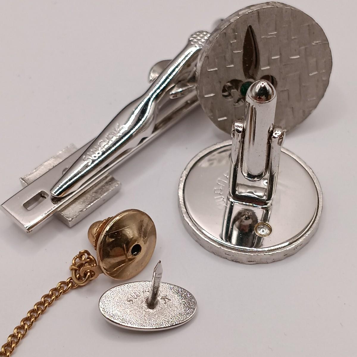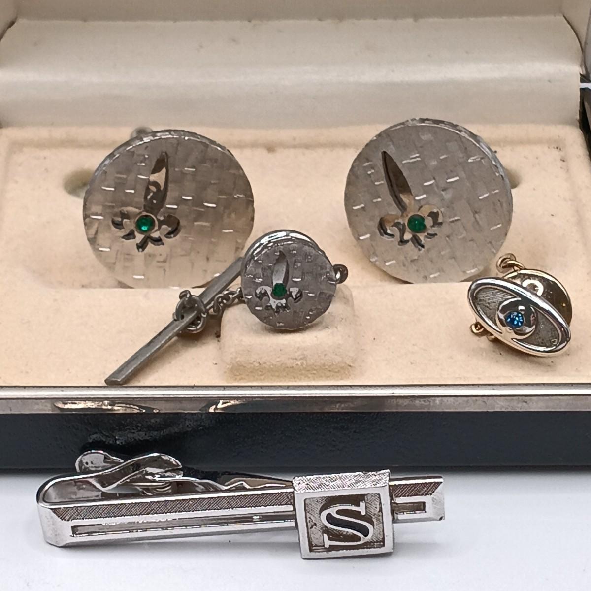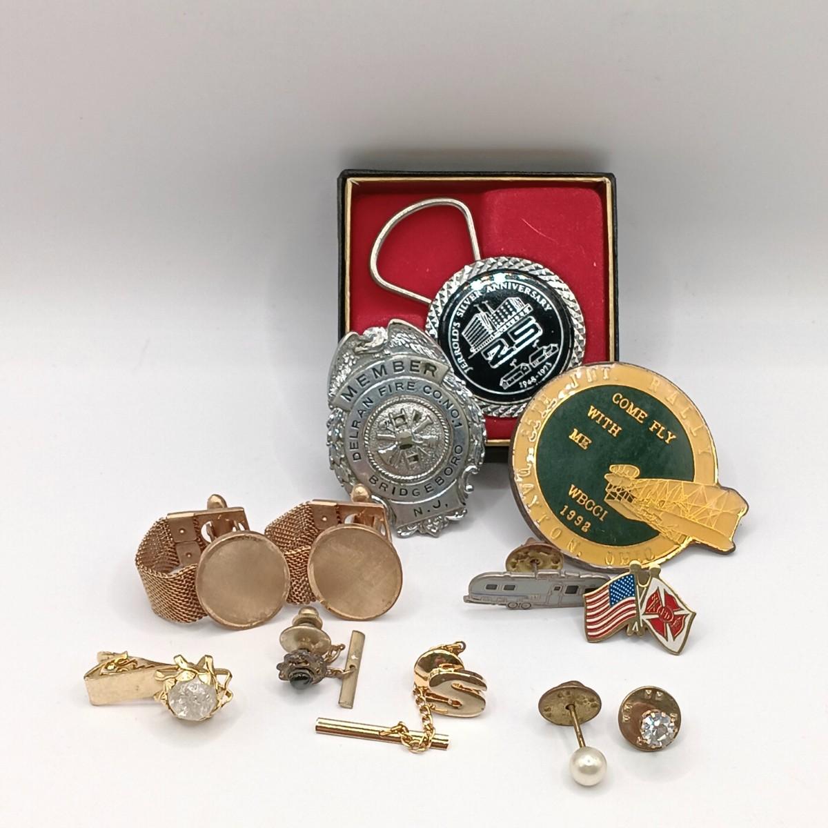 LOT 218: Vintage Men's Fashion- Swank Cufflinks and Tie Accessories, Anson Mesh Cuff Links, Watch Chain & More