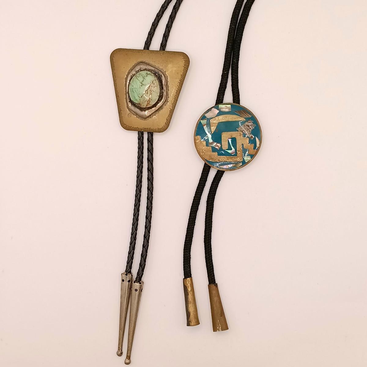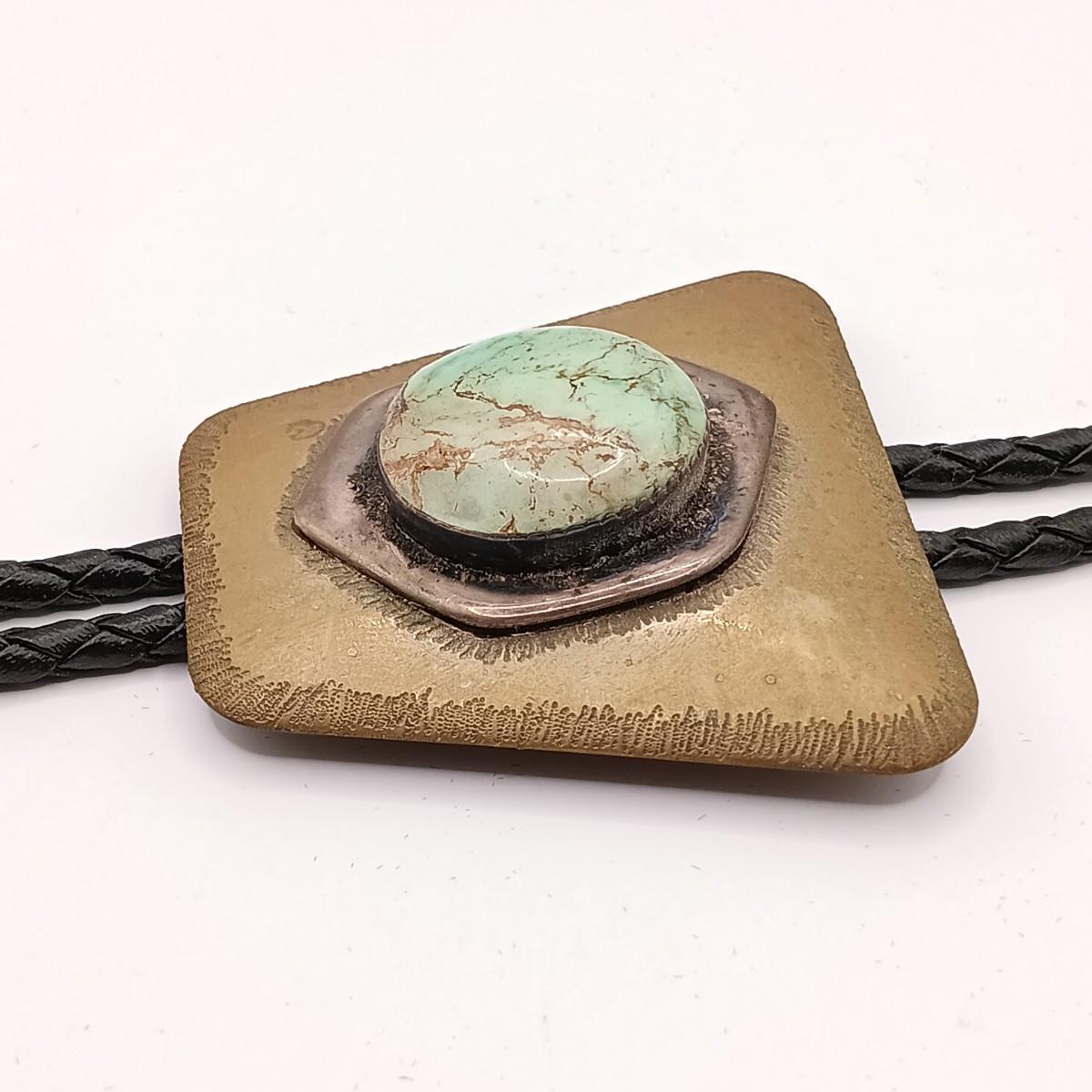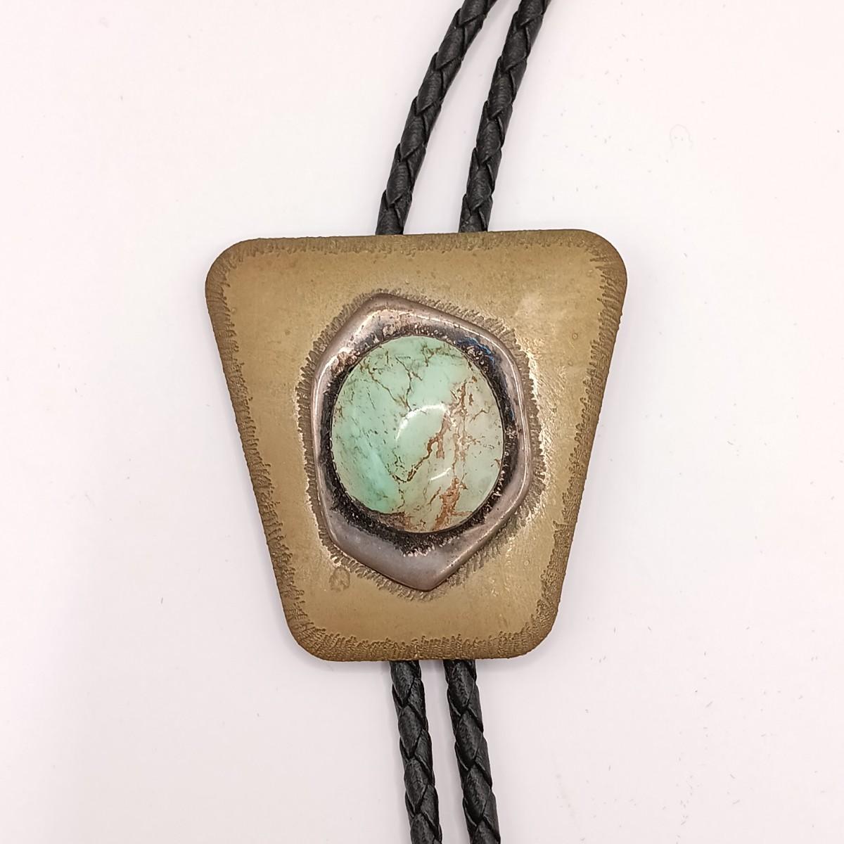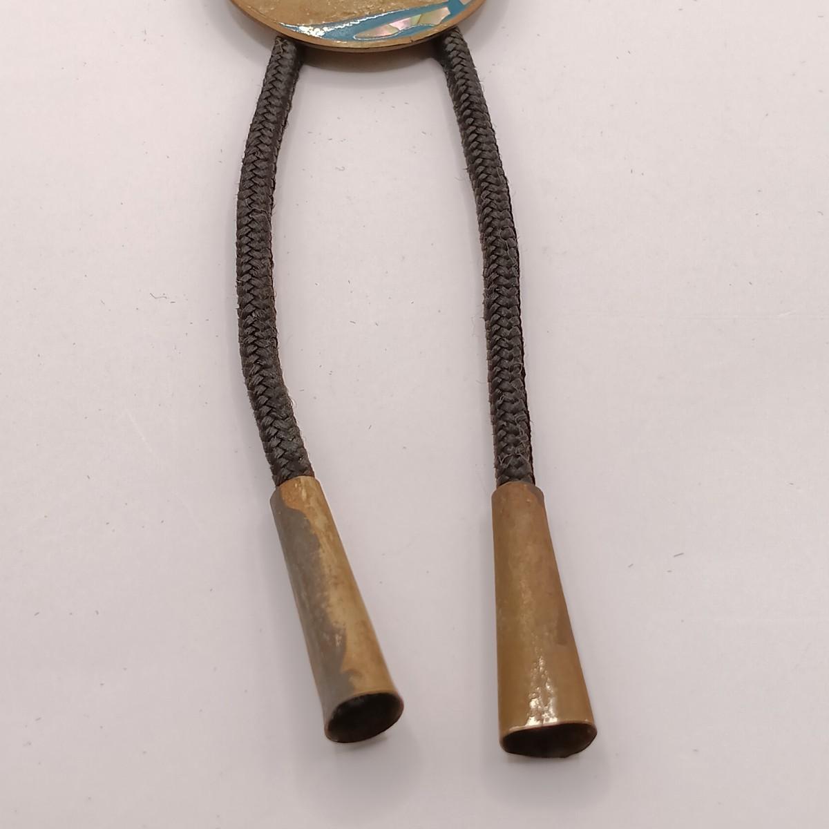 LOT 219; Vintage Bennet Turquoise and Metal Bolo Tie with Inlaid Shell Bolo Tie