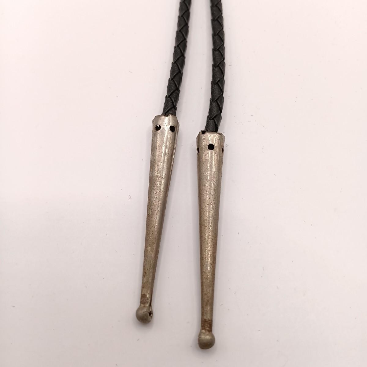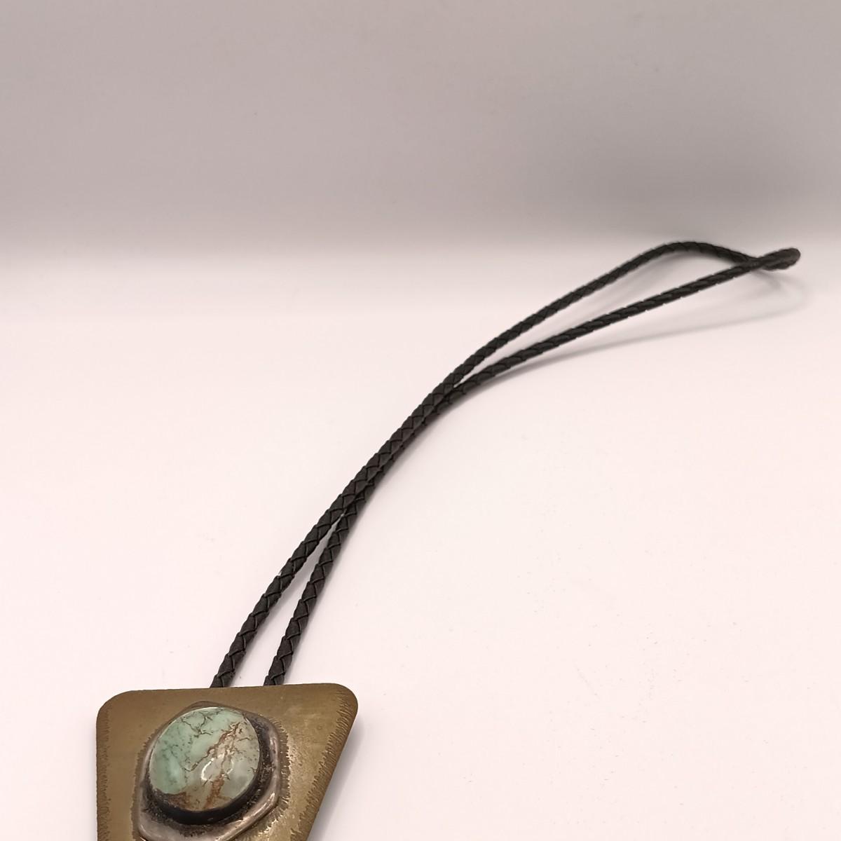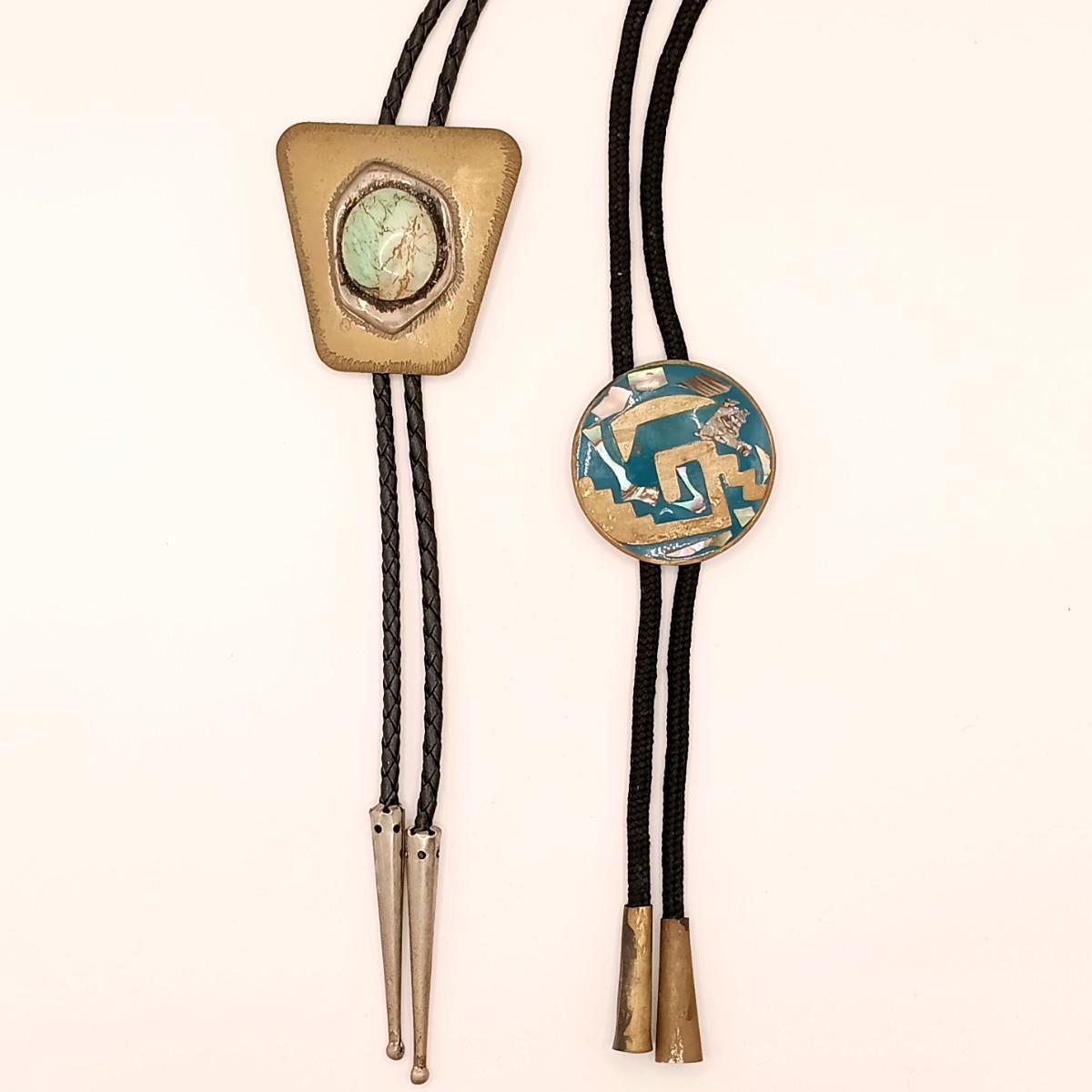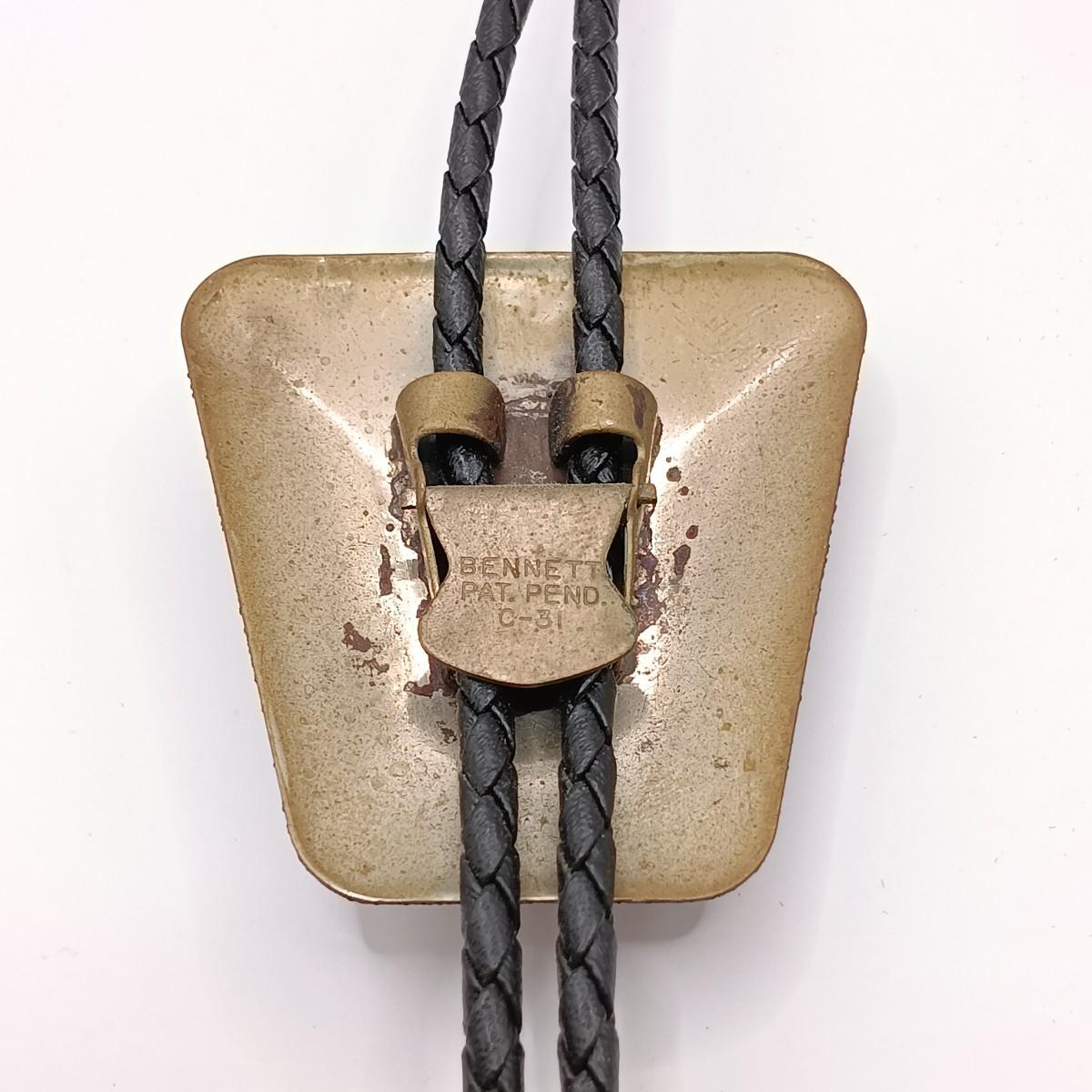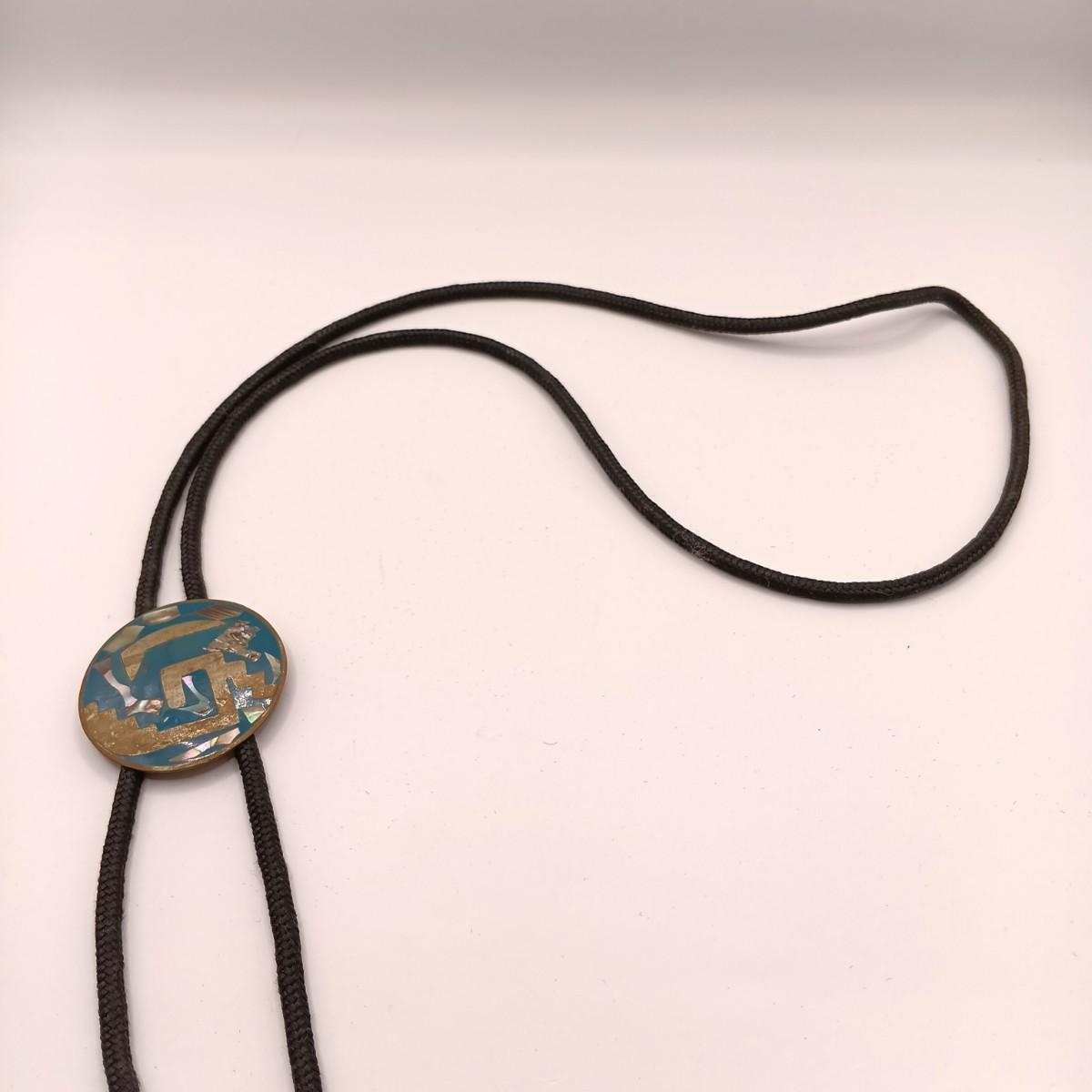 LOT 219; Vintage Bennet Turquoise and Metal Bolo Tie with Inlaid Shell Bolo Tie