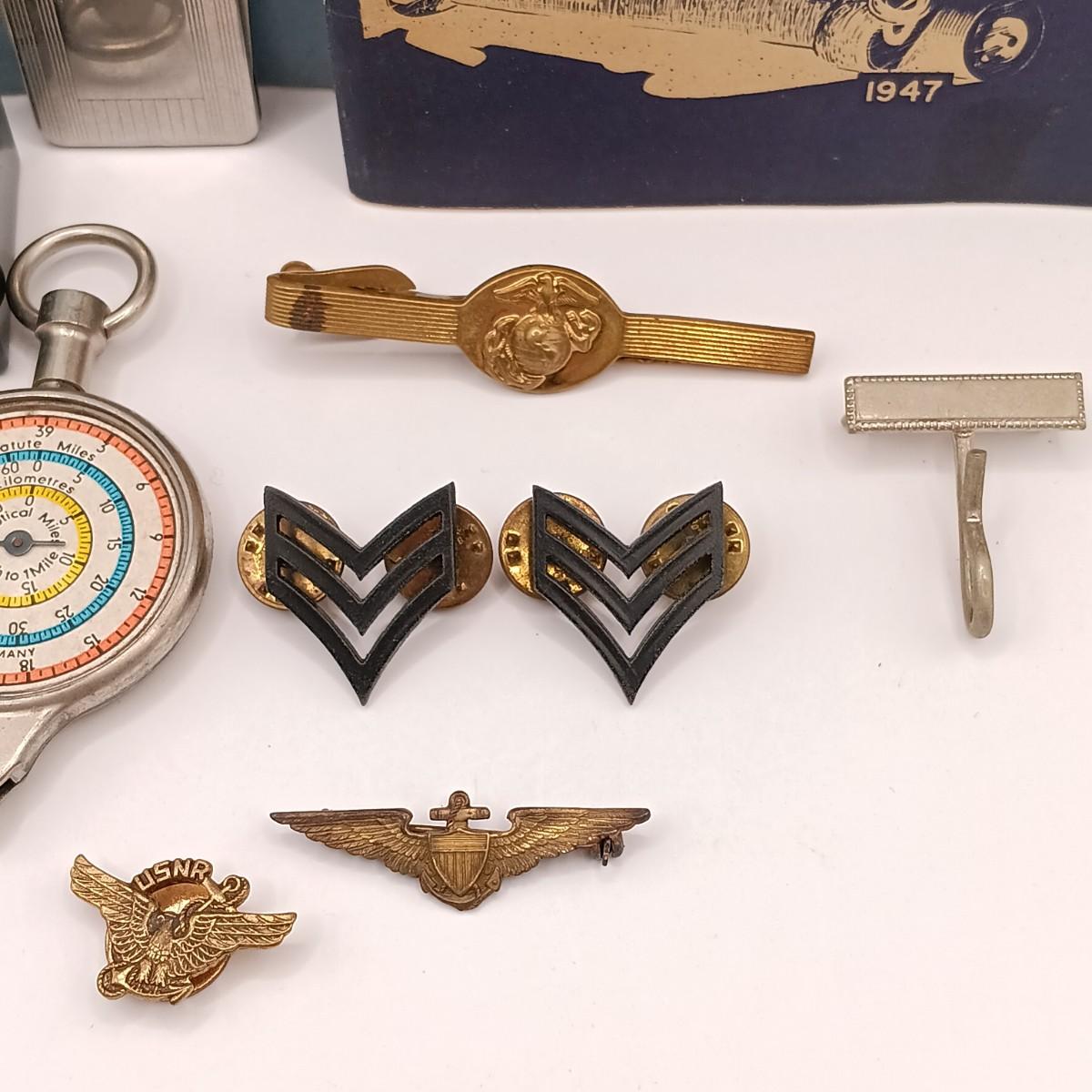LOT 221: Vintage US Navy Pilot Wing Pin, Whistle Hook, German Opsimeter, Rotary International Pins & More