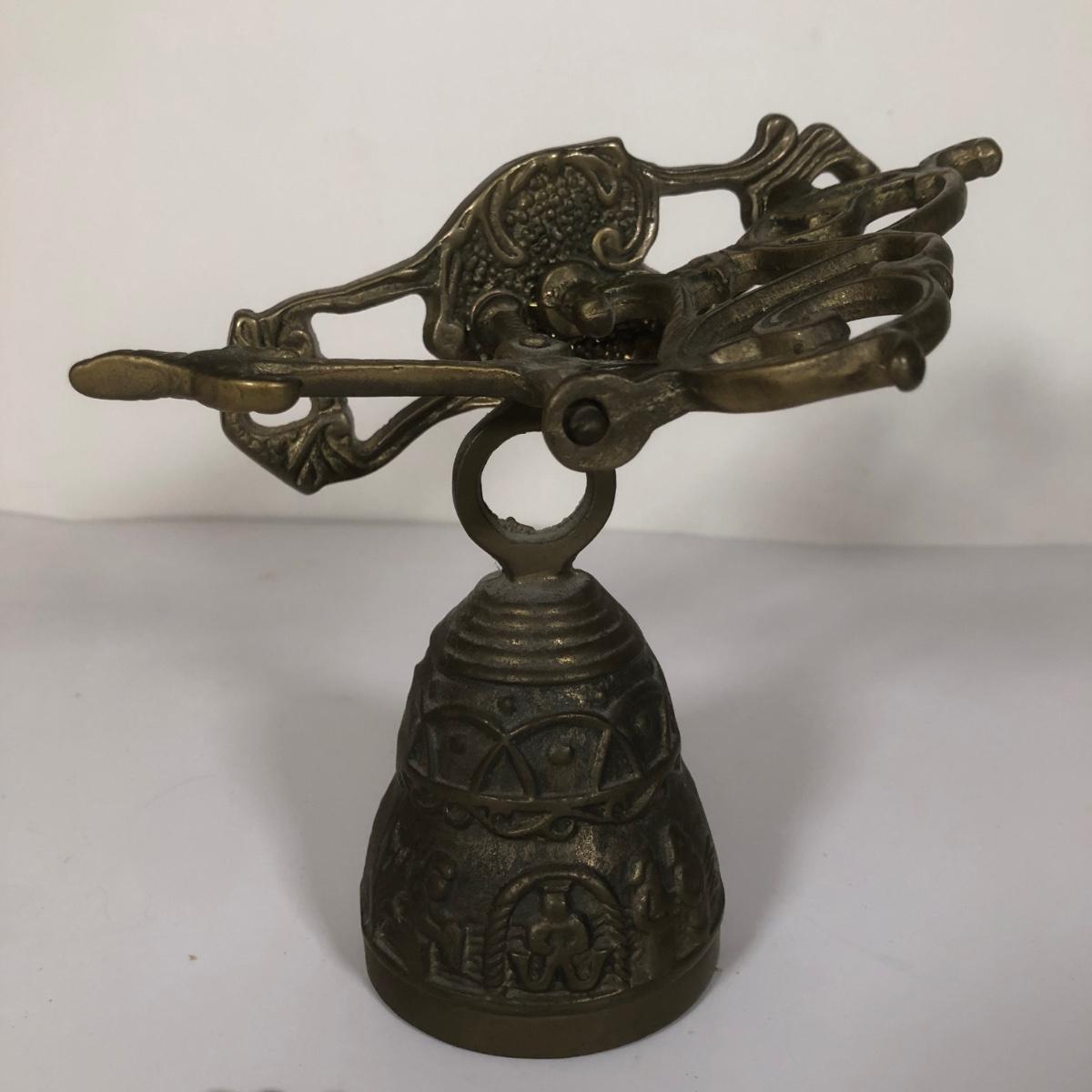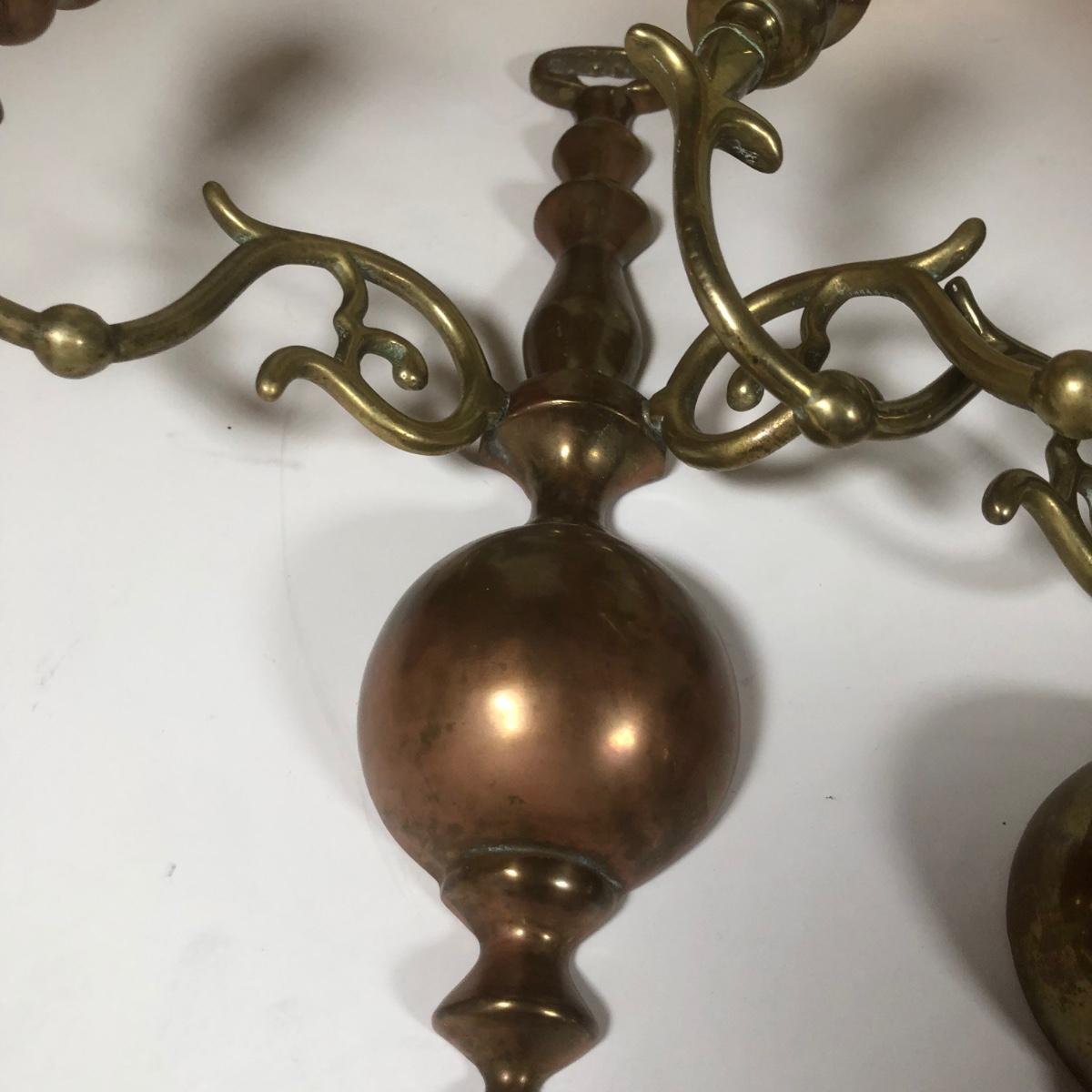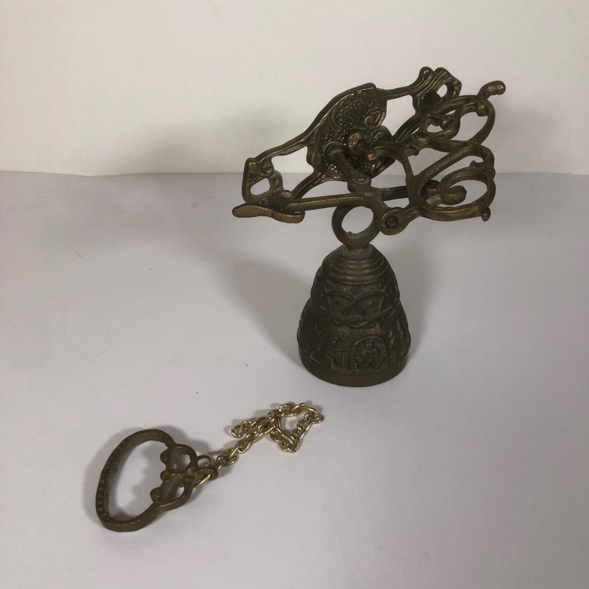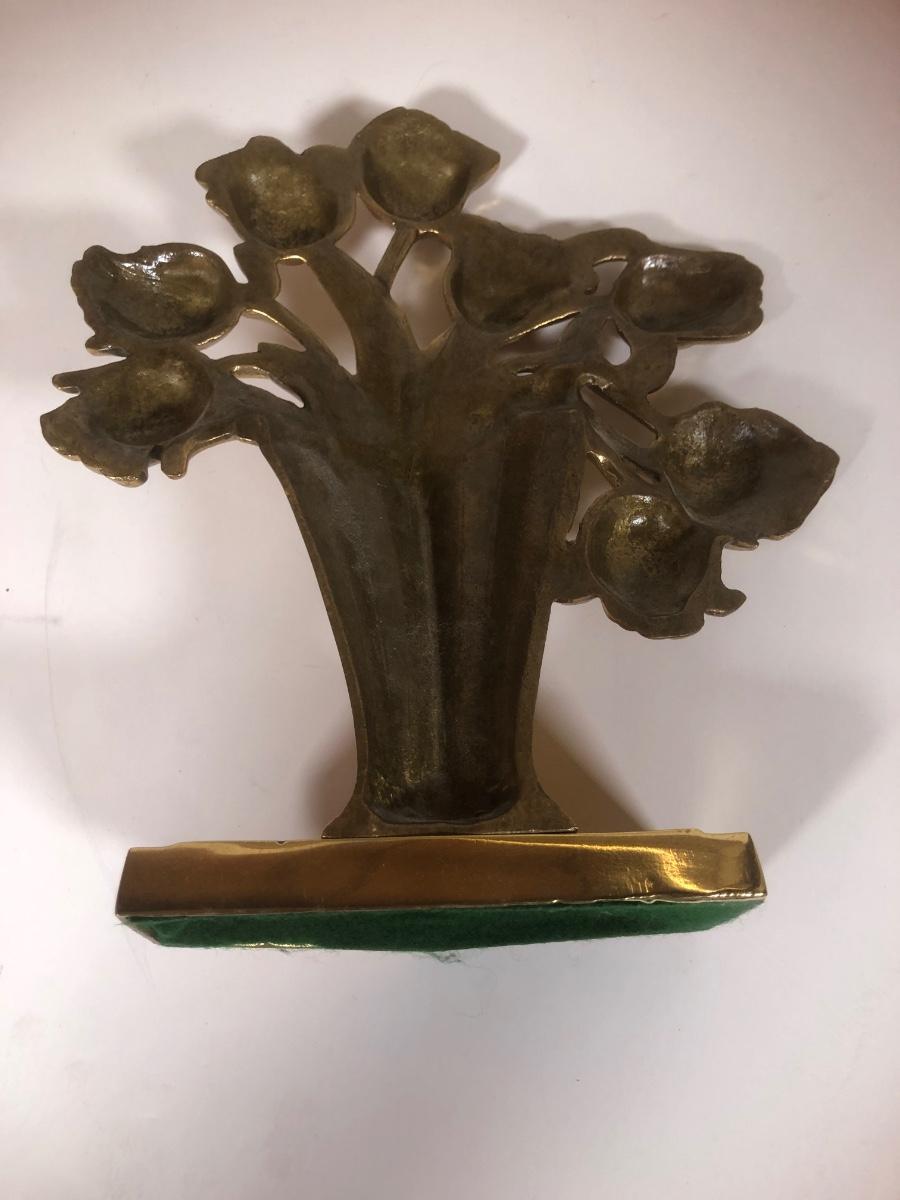 LOT 2D: Vintage Brass Desk Lamp, Vintage/Antique Wall Mounted Metal Bell, Brass Wall Candle Holders & Floral Bookend