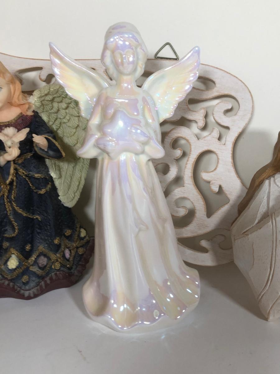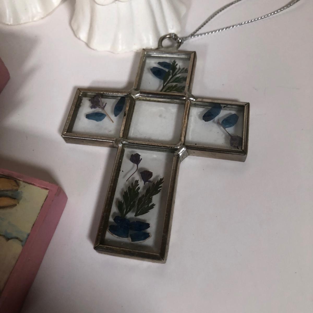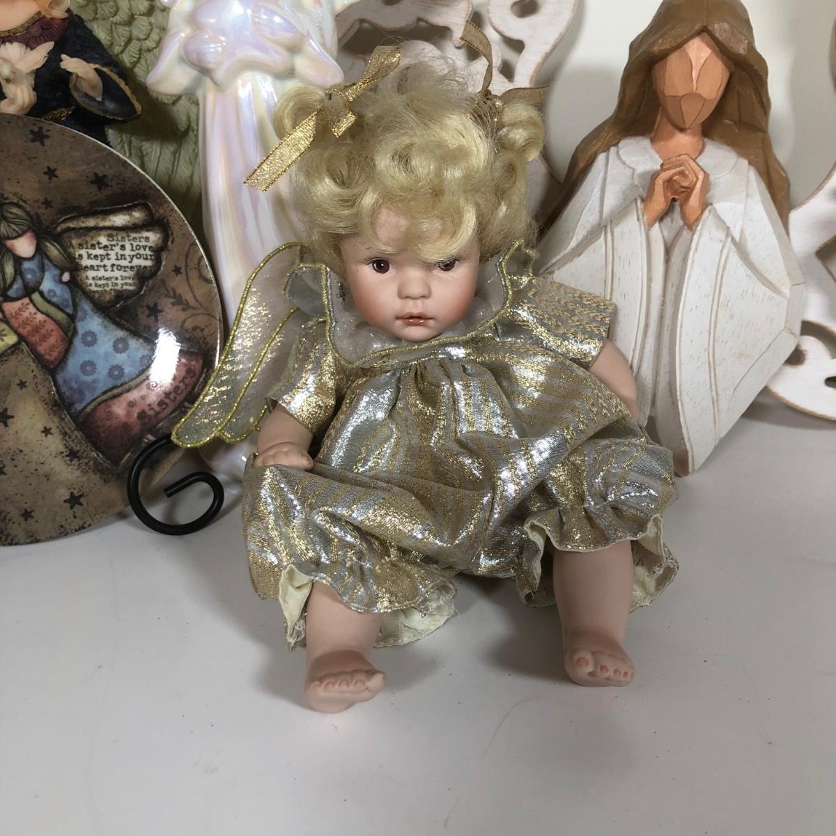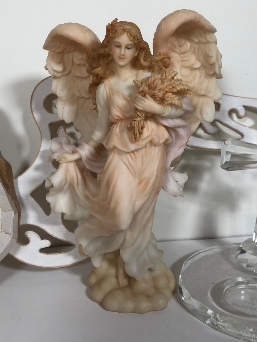 LOT 3D: Collection of Angels & Religious Decor - 2006 Jim Shore Heartwood Creek Cross (4007045), Mascot USA Austrian Crystal 24k Gold Plated Decor, 2014 Willow Tree "Lots of Love" Figurine & More