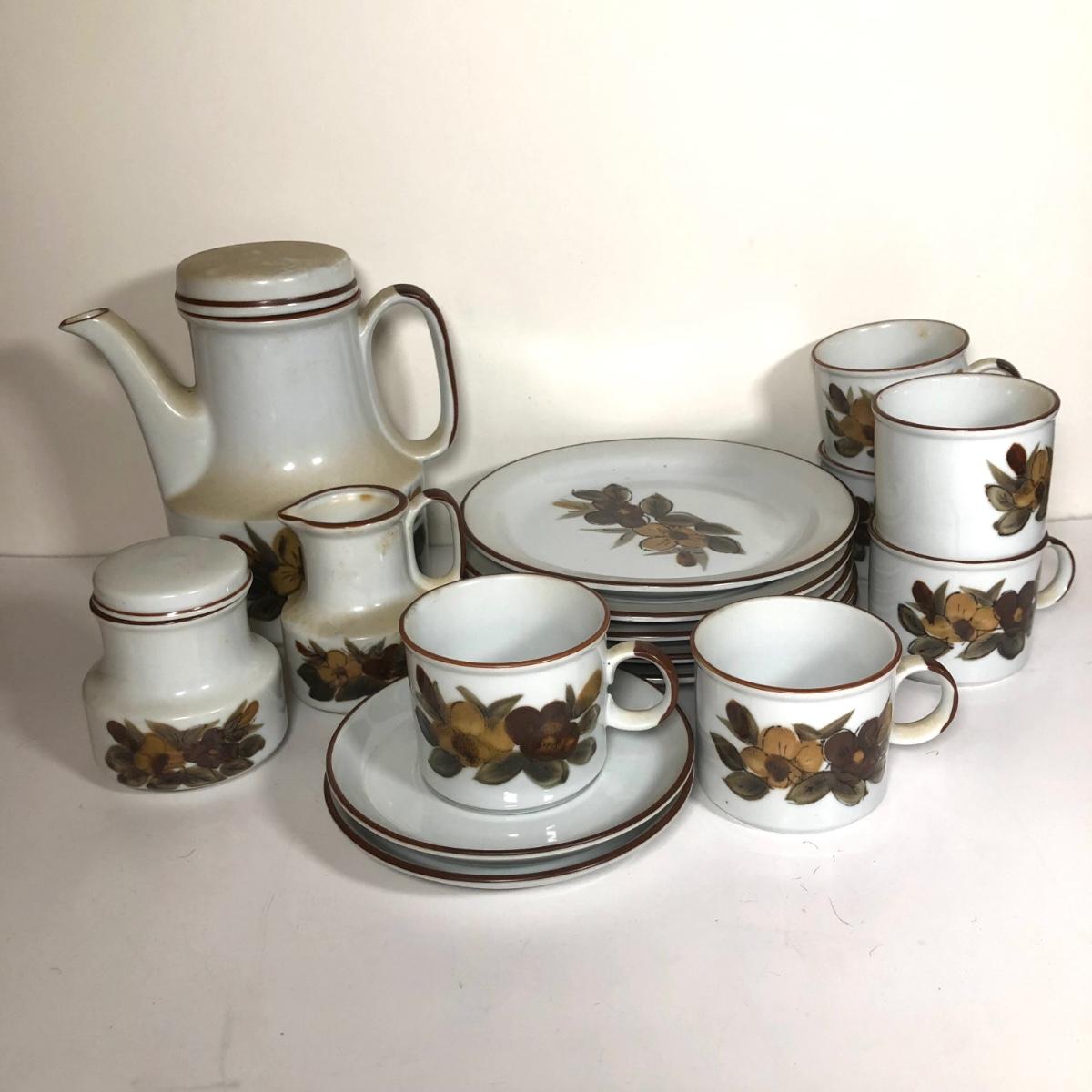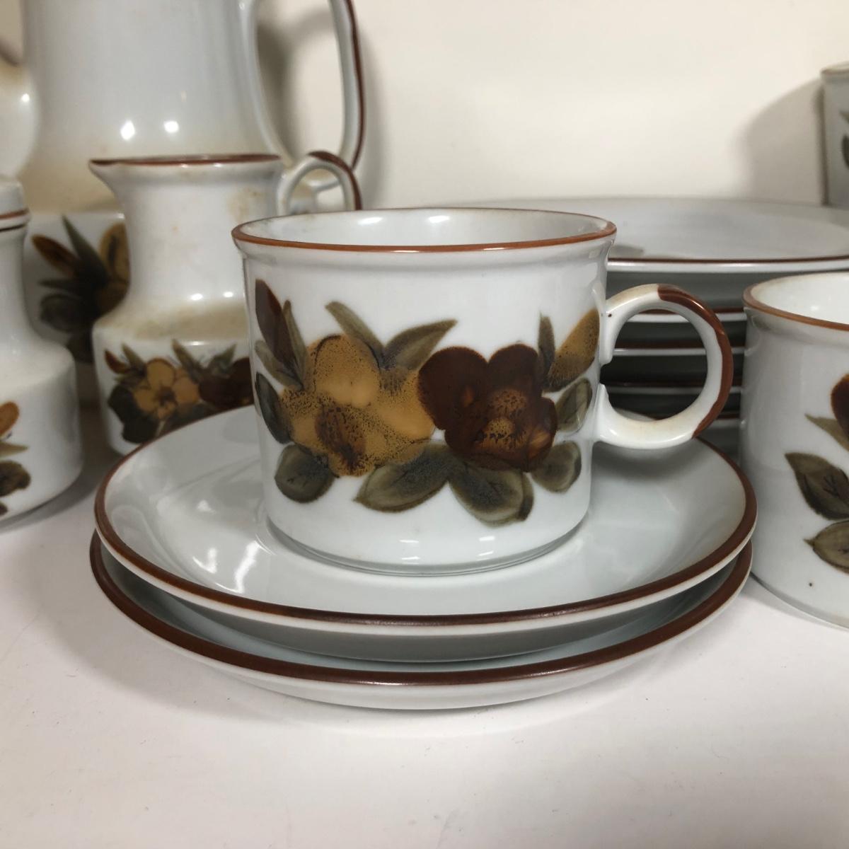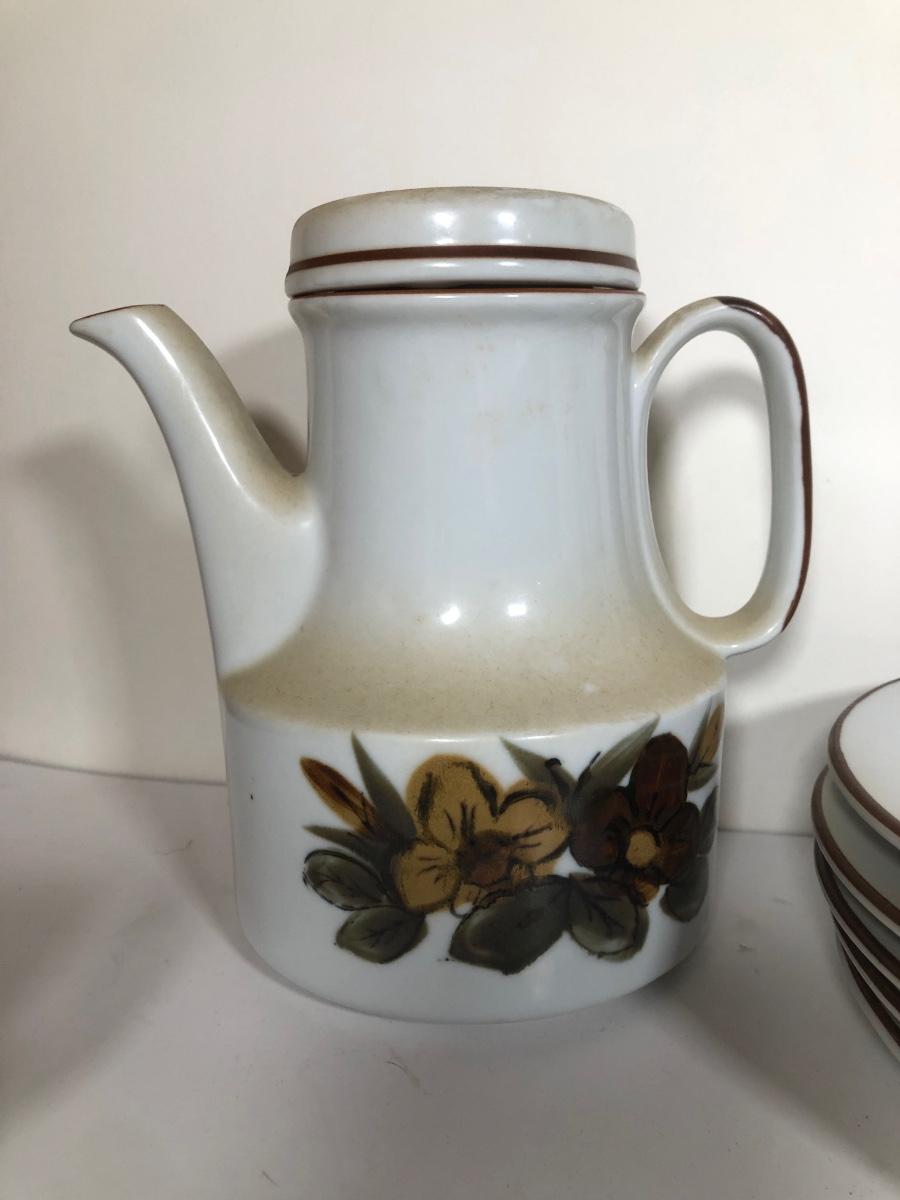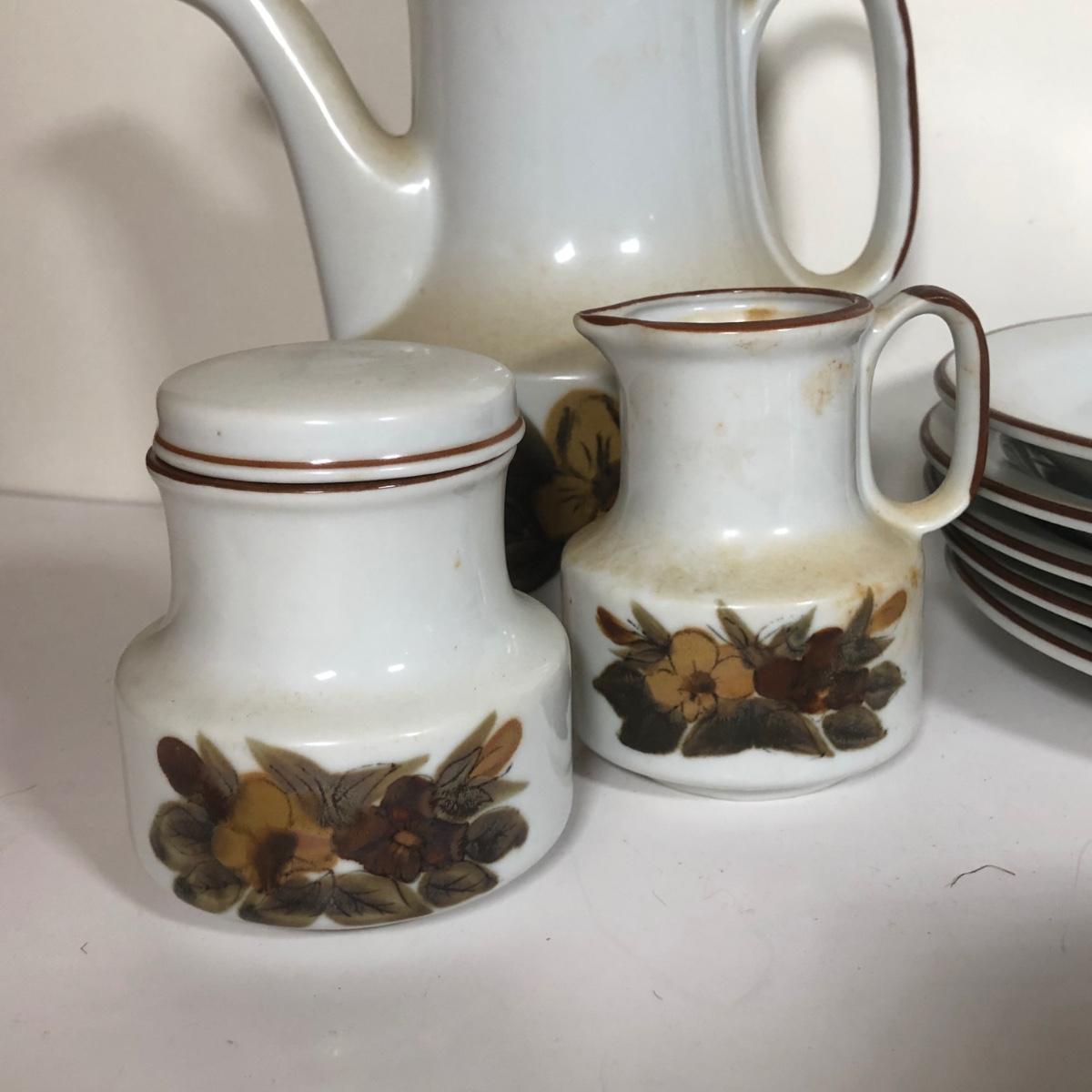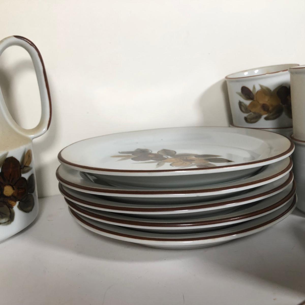 LOT 11D: Vintage Brown Floral Pottery Tea & Dessert Dish Set