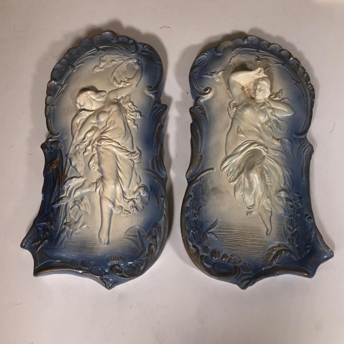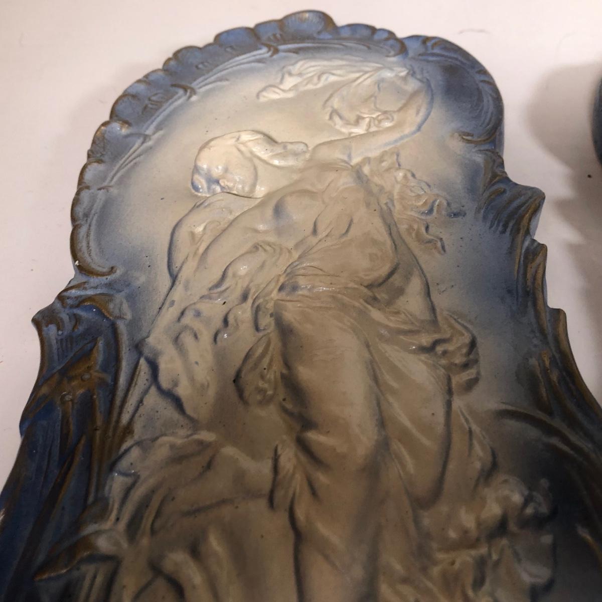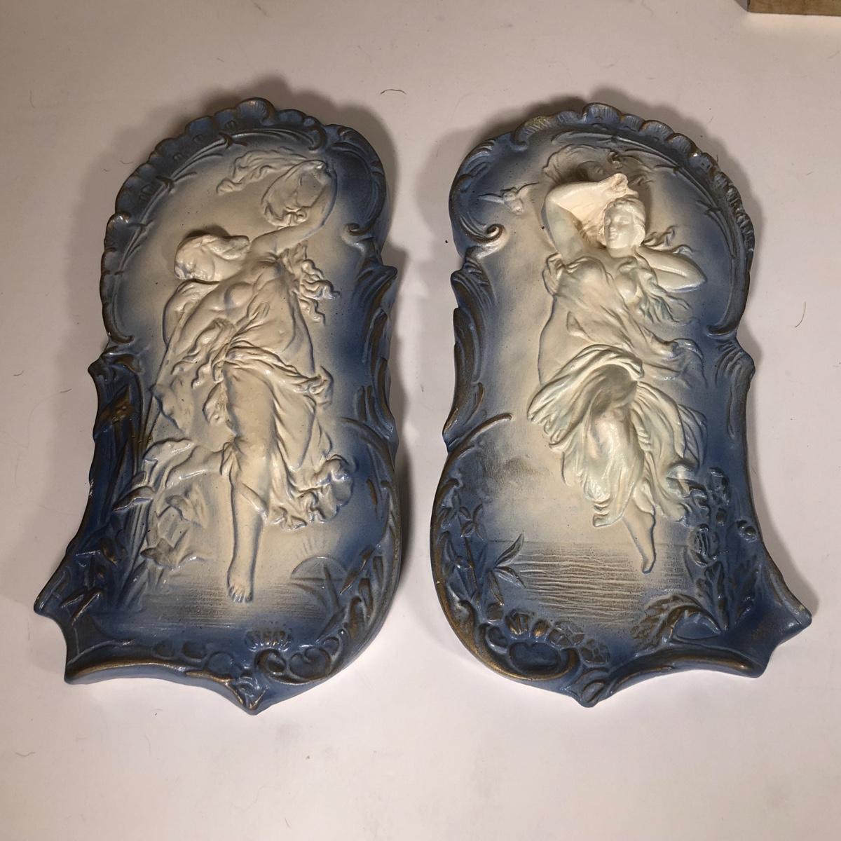 LOT 13D: Vintage Sculpted Chalkware Wall Plaques & Grecian Style Gold Color Candle Holders