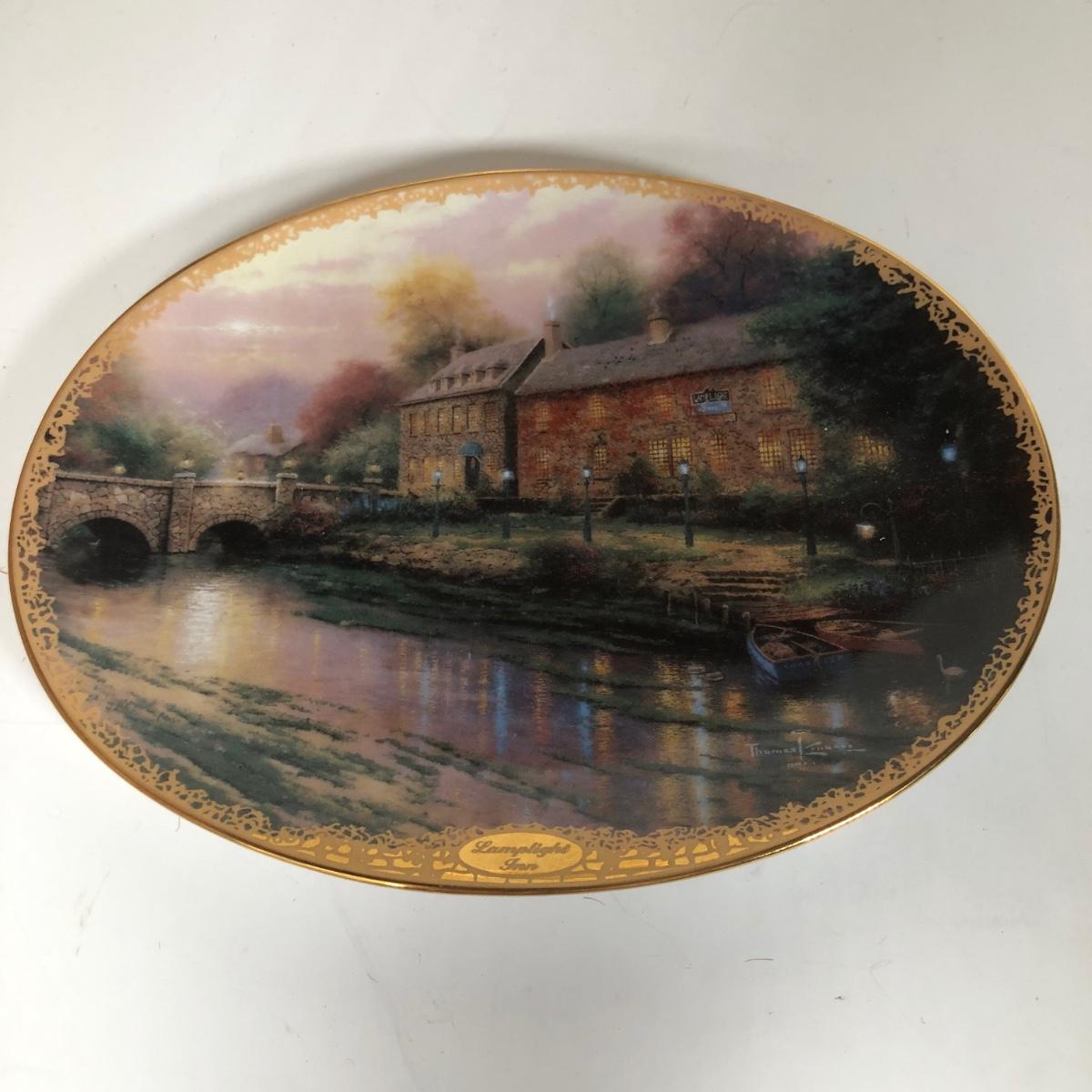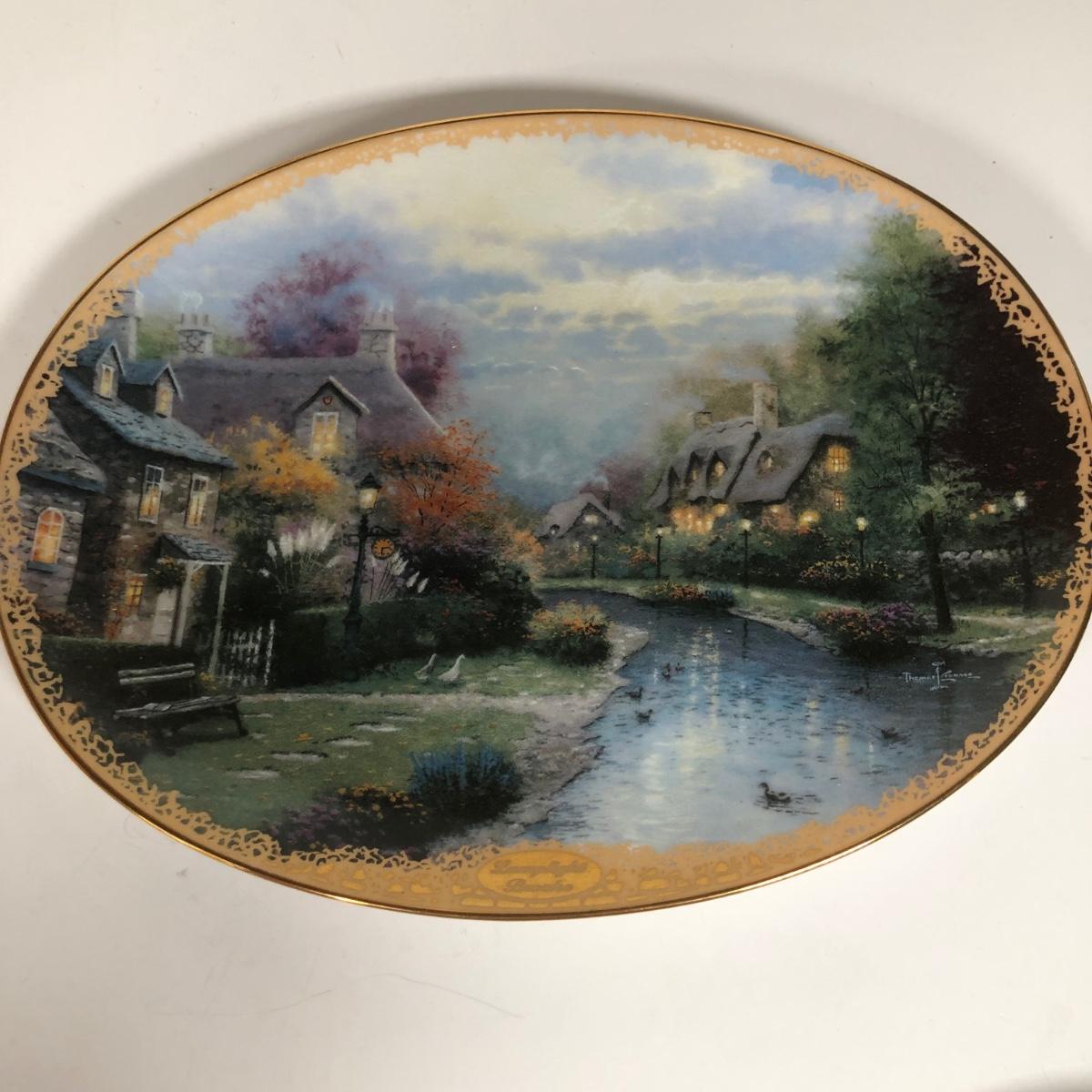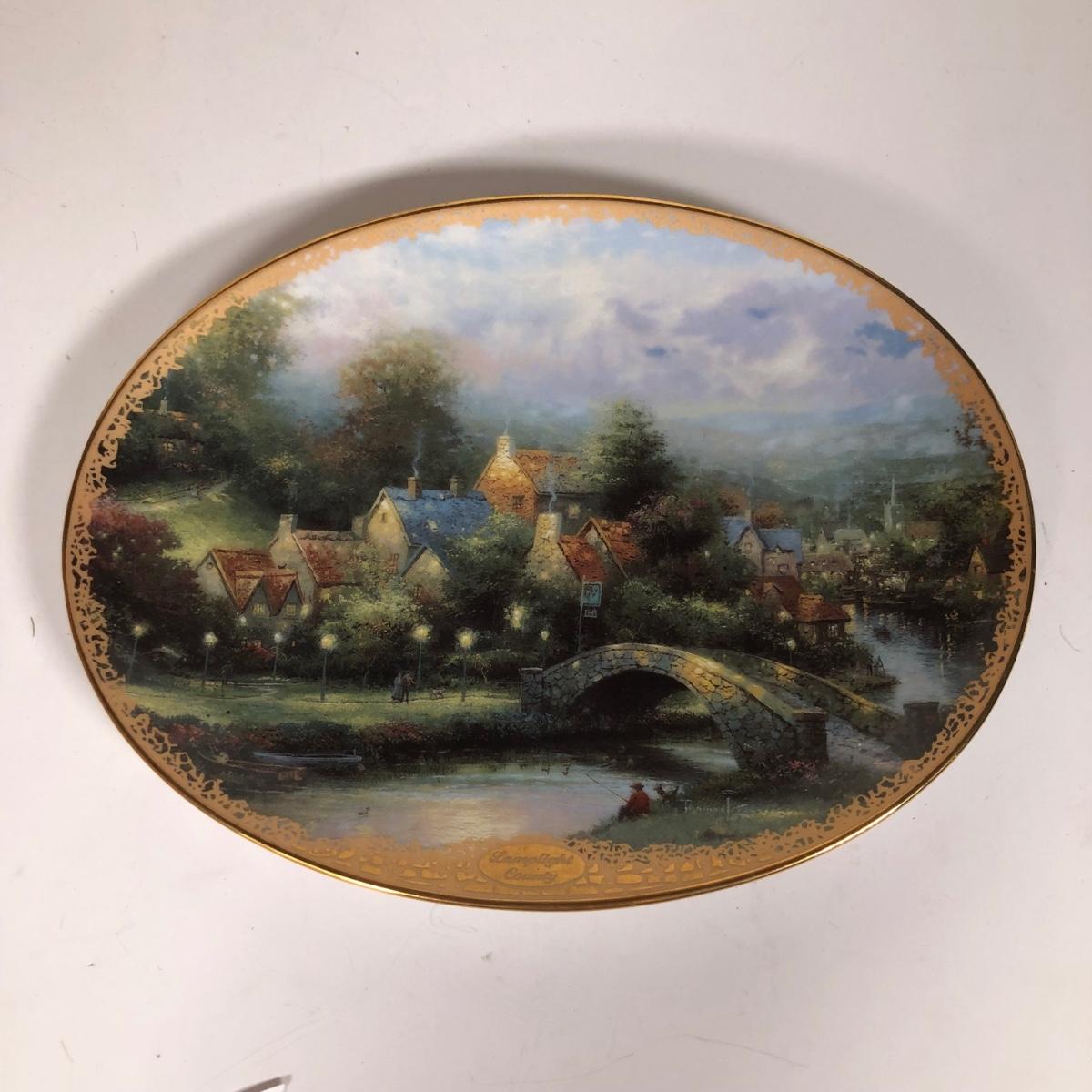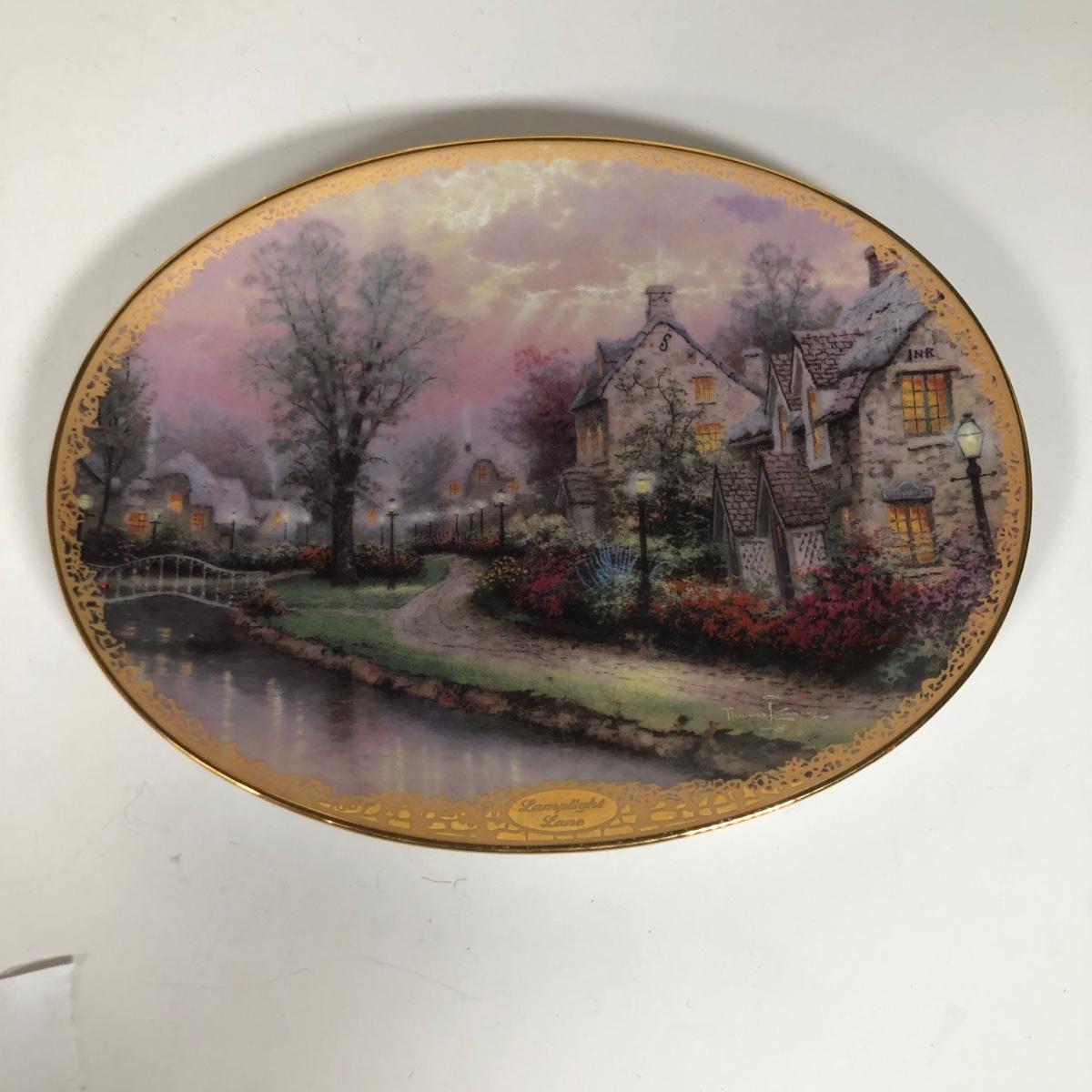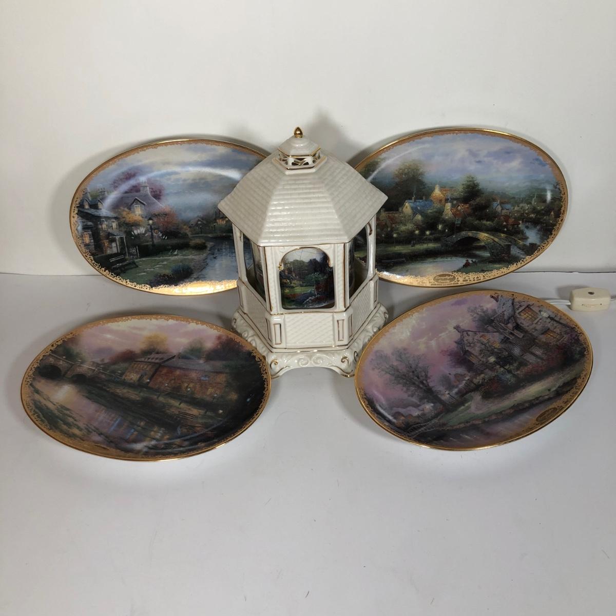 LOT 16D: Thomas Kinkade Collection - 1994 Lamplight Village Oval Art Plates & 2005 Make A Wish Cottage / Musical Gazebo