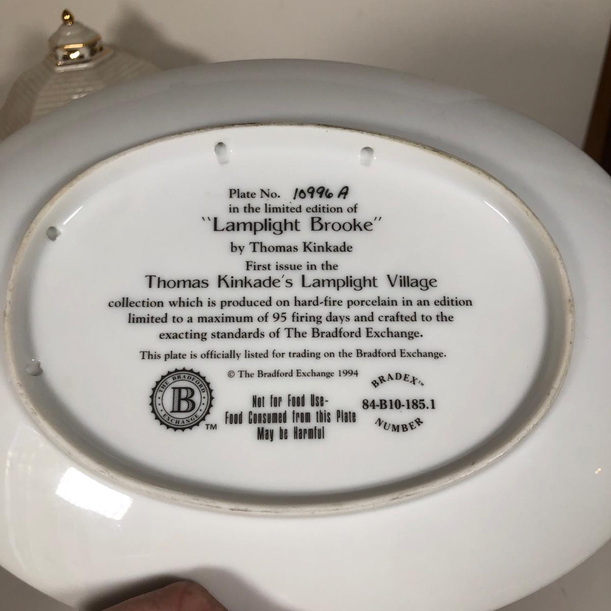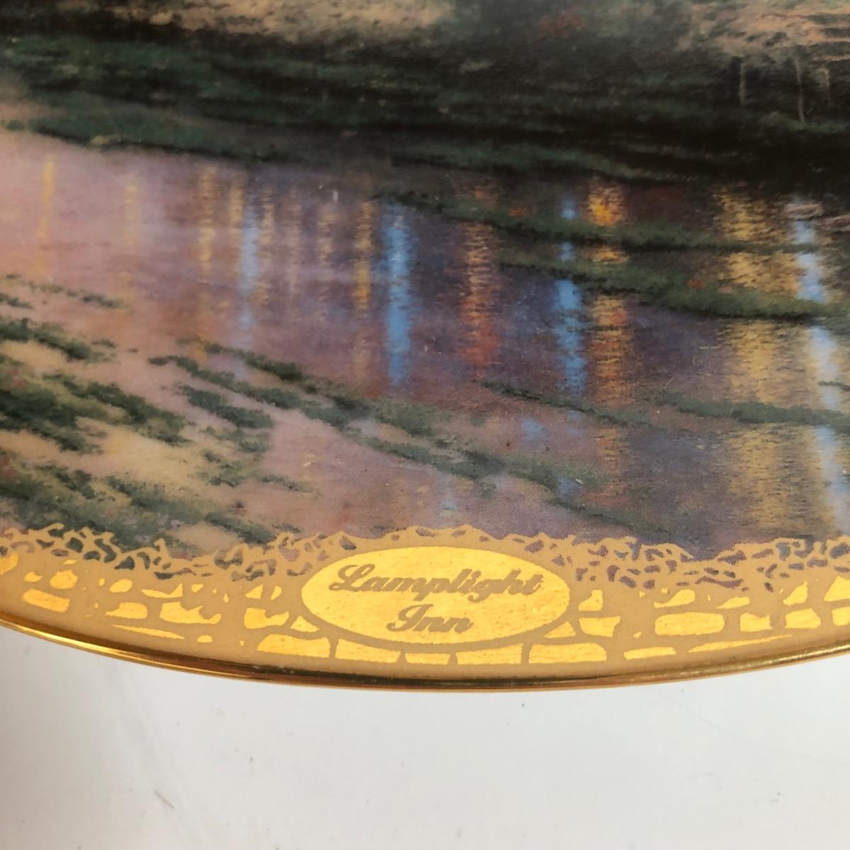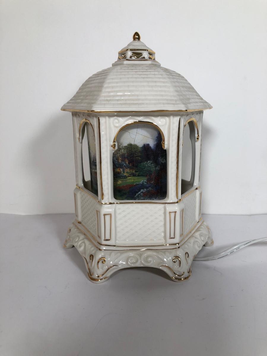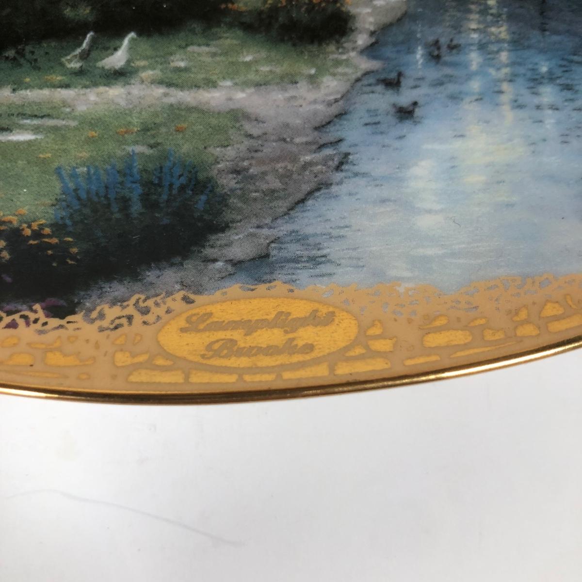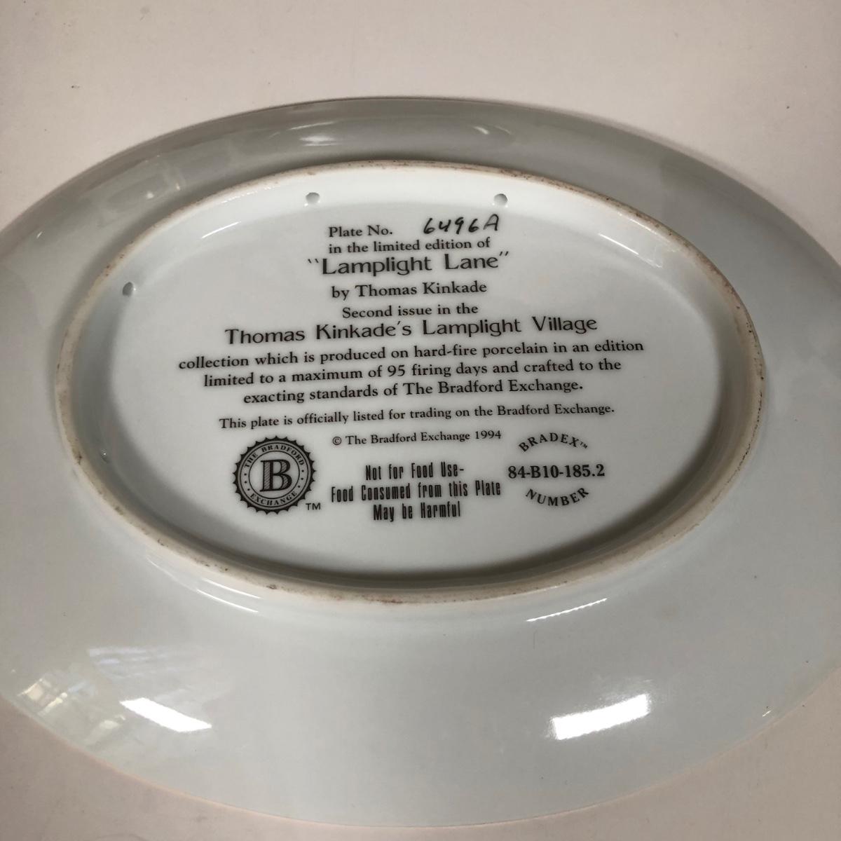 LOT 16D: Thomas Kinkade Collection - 1994 Lamplight Village Oval Art Plates & 2005 Make A Wish Cottage / Musical Gazebo