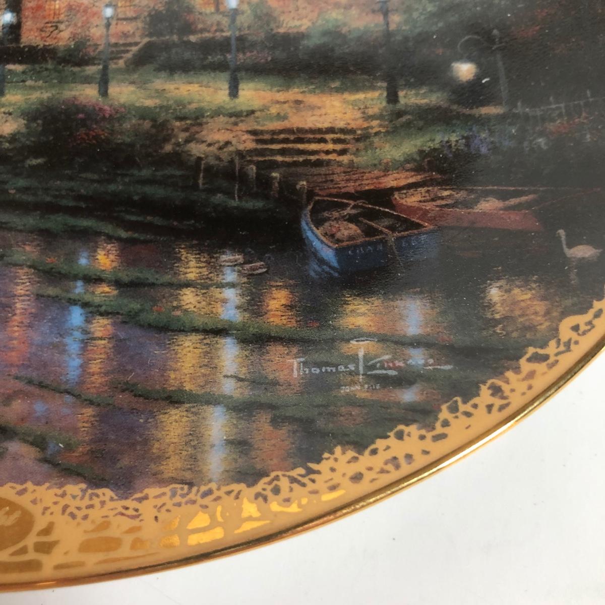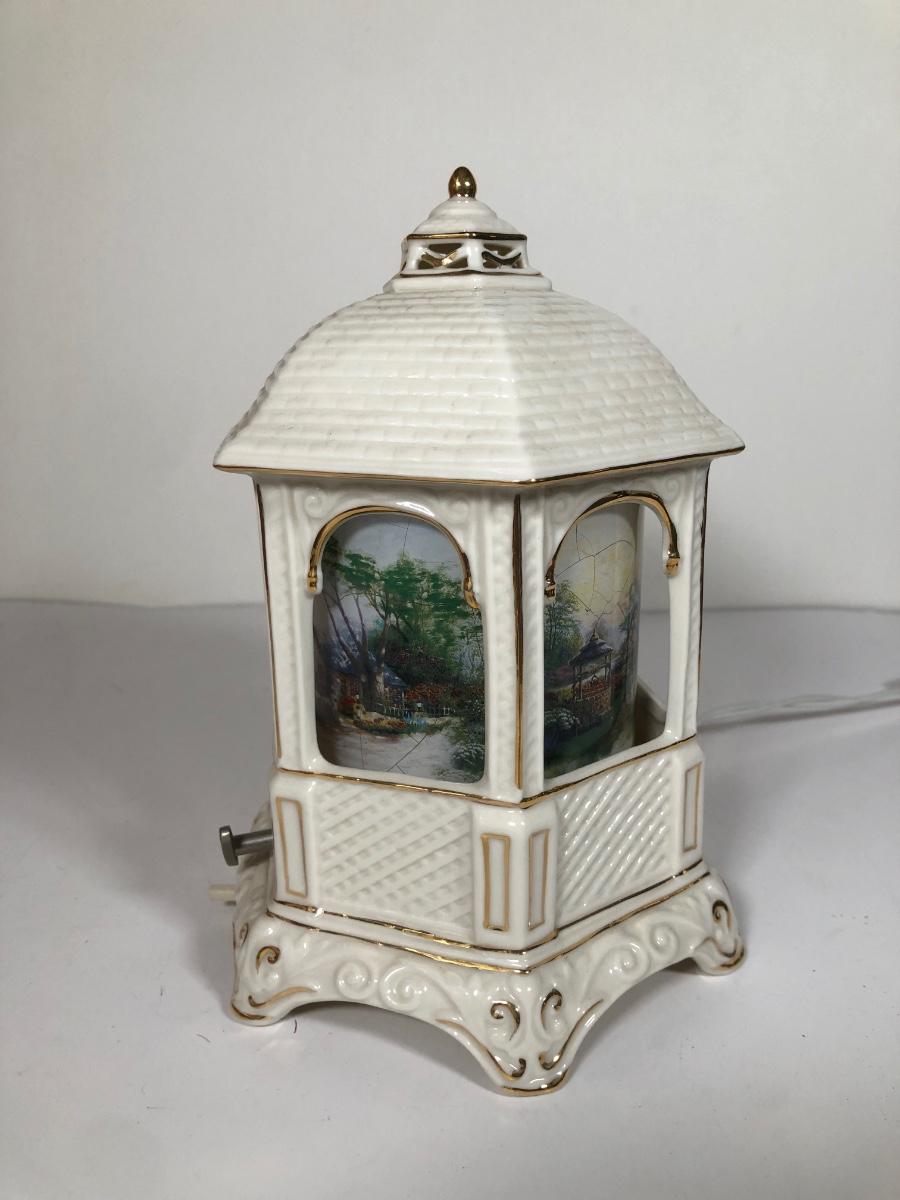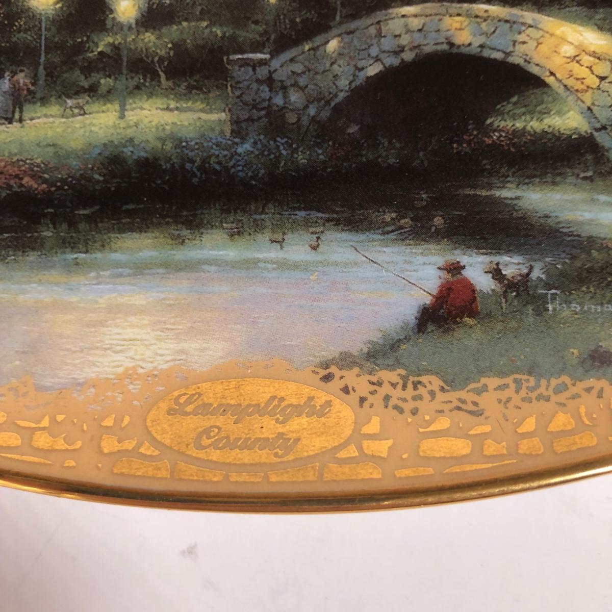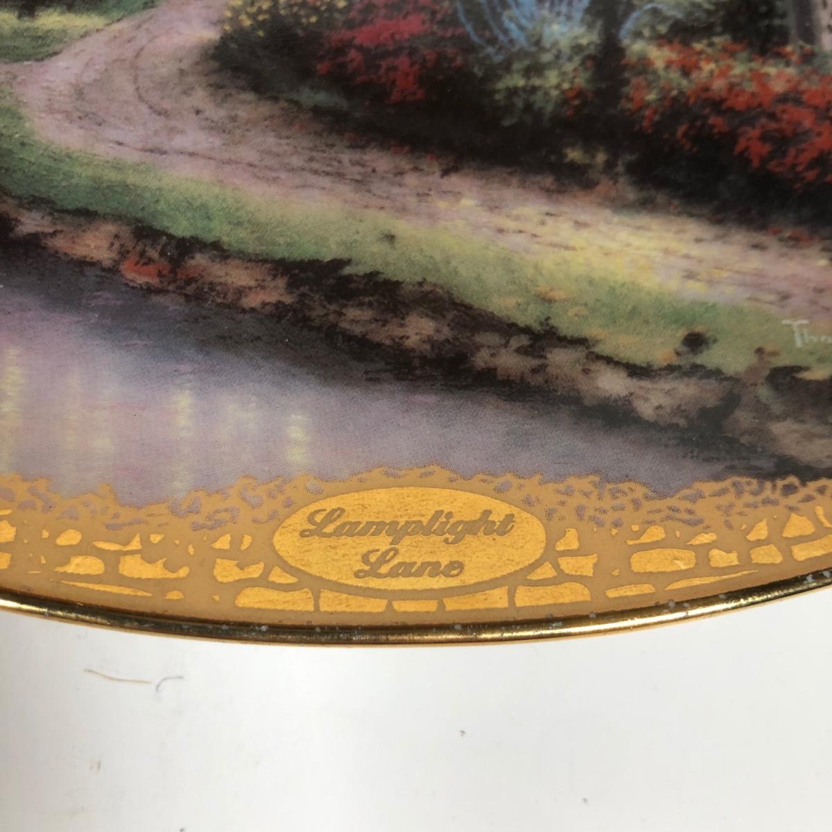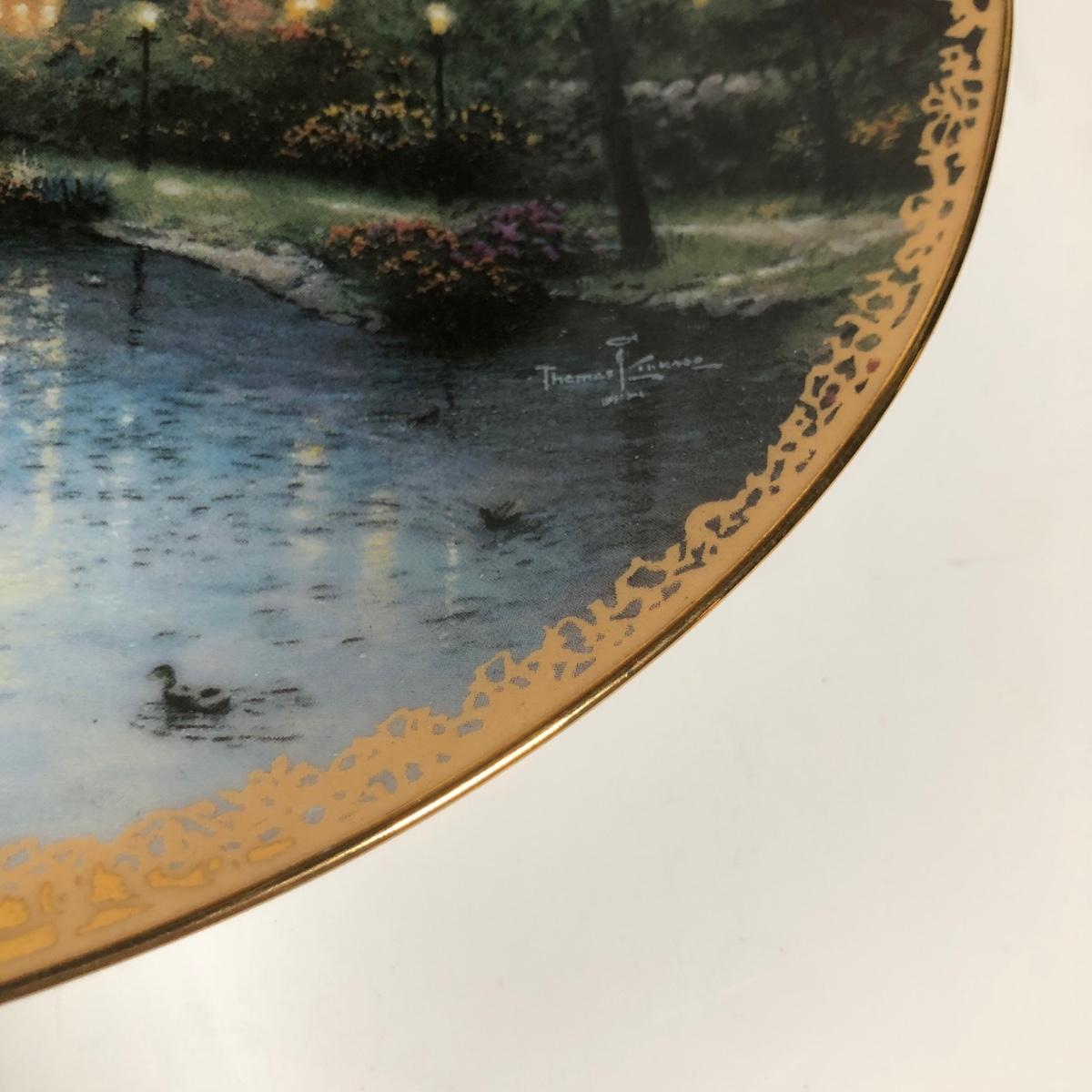 LOT 16D: Thomas Kinkade Collection - 1994 Lamplight Village Oval Art Plates & 2005 Make A Wish Cottage / Musical Gazebo