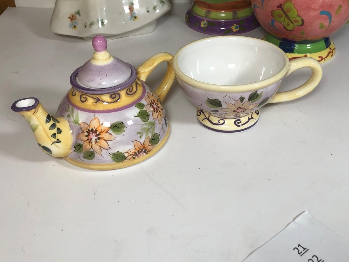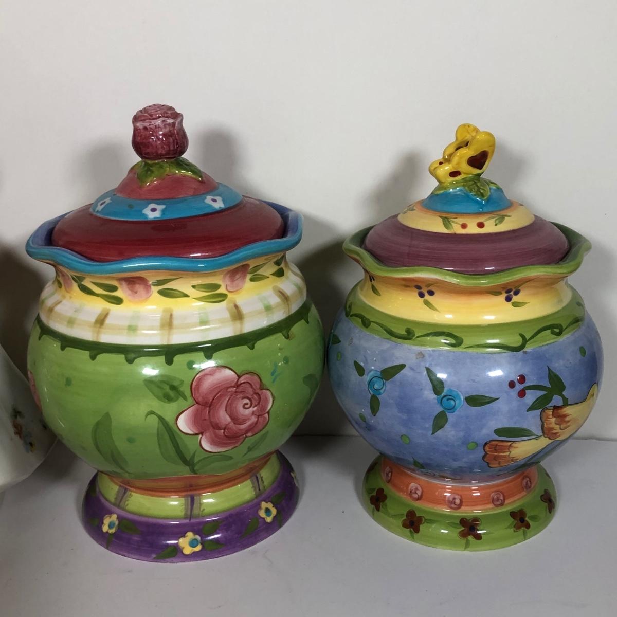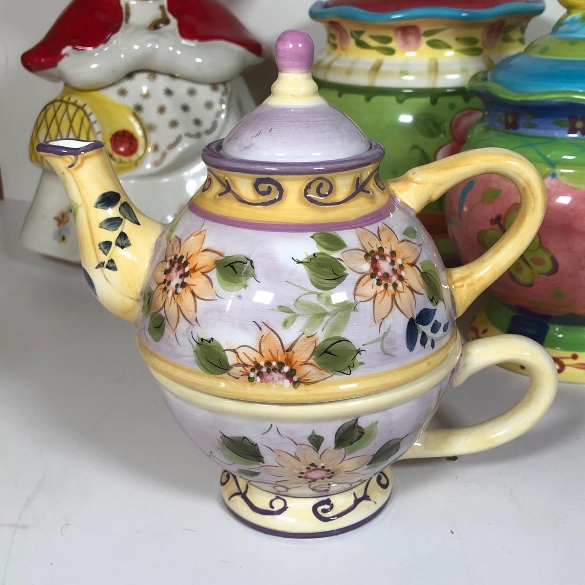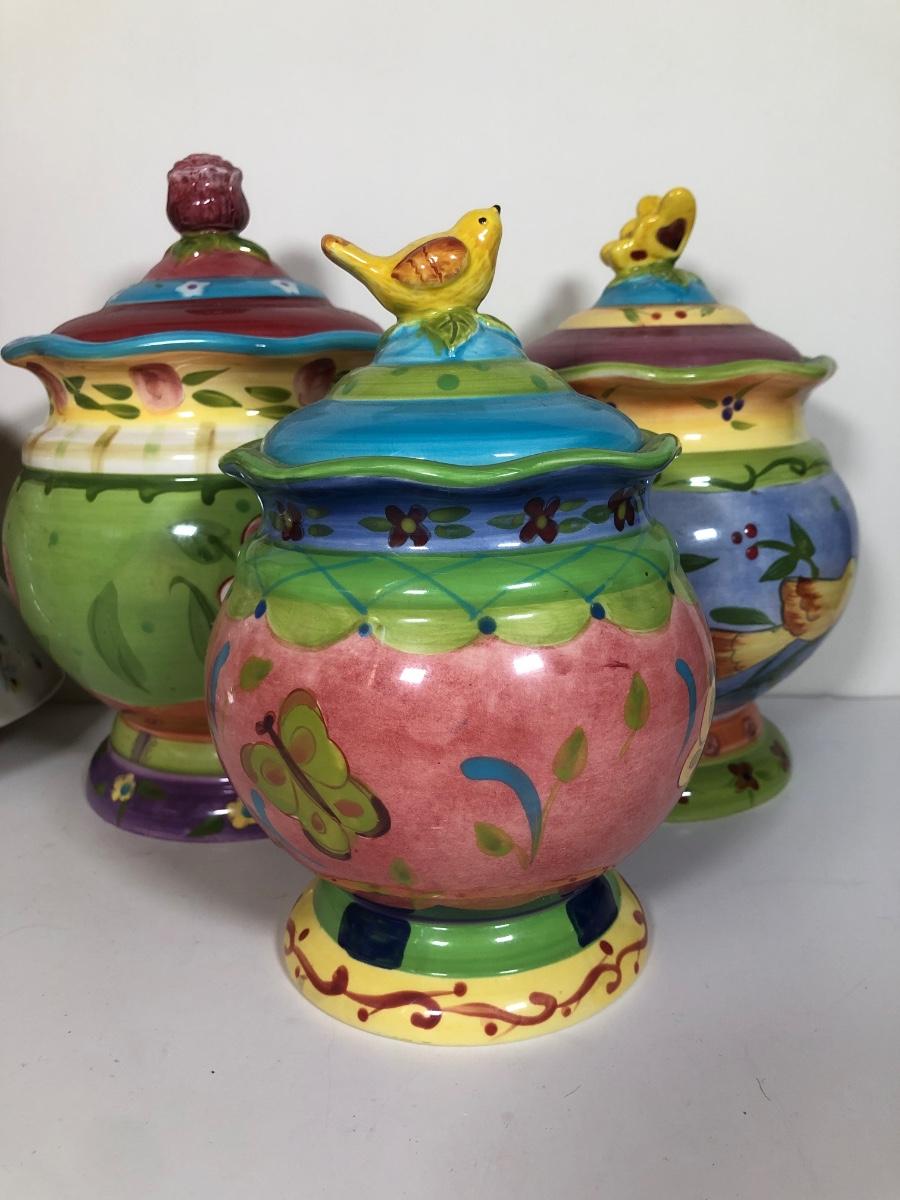 LOT 20D: Vintage Victoria's Trading Co Pottery Red Riding Hood Cookie Jar (11.5"), Sue Zipkin Colorful Pottery Canisters & More