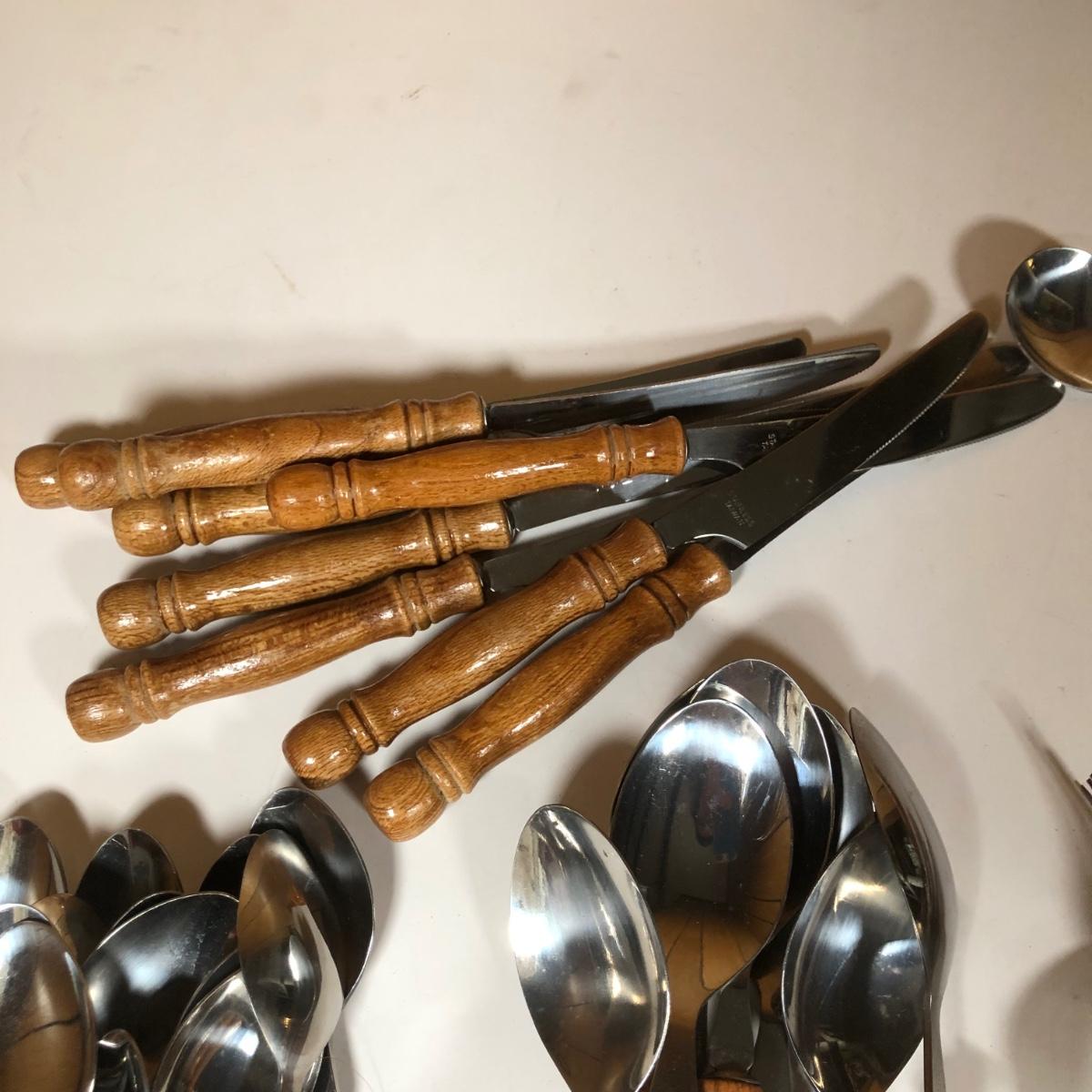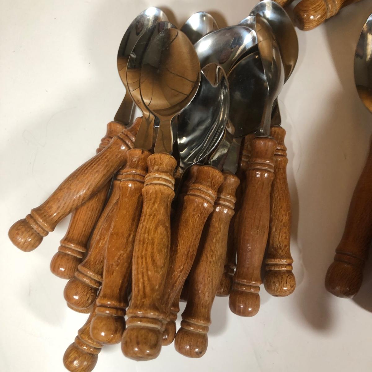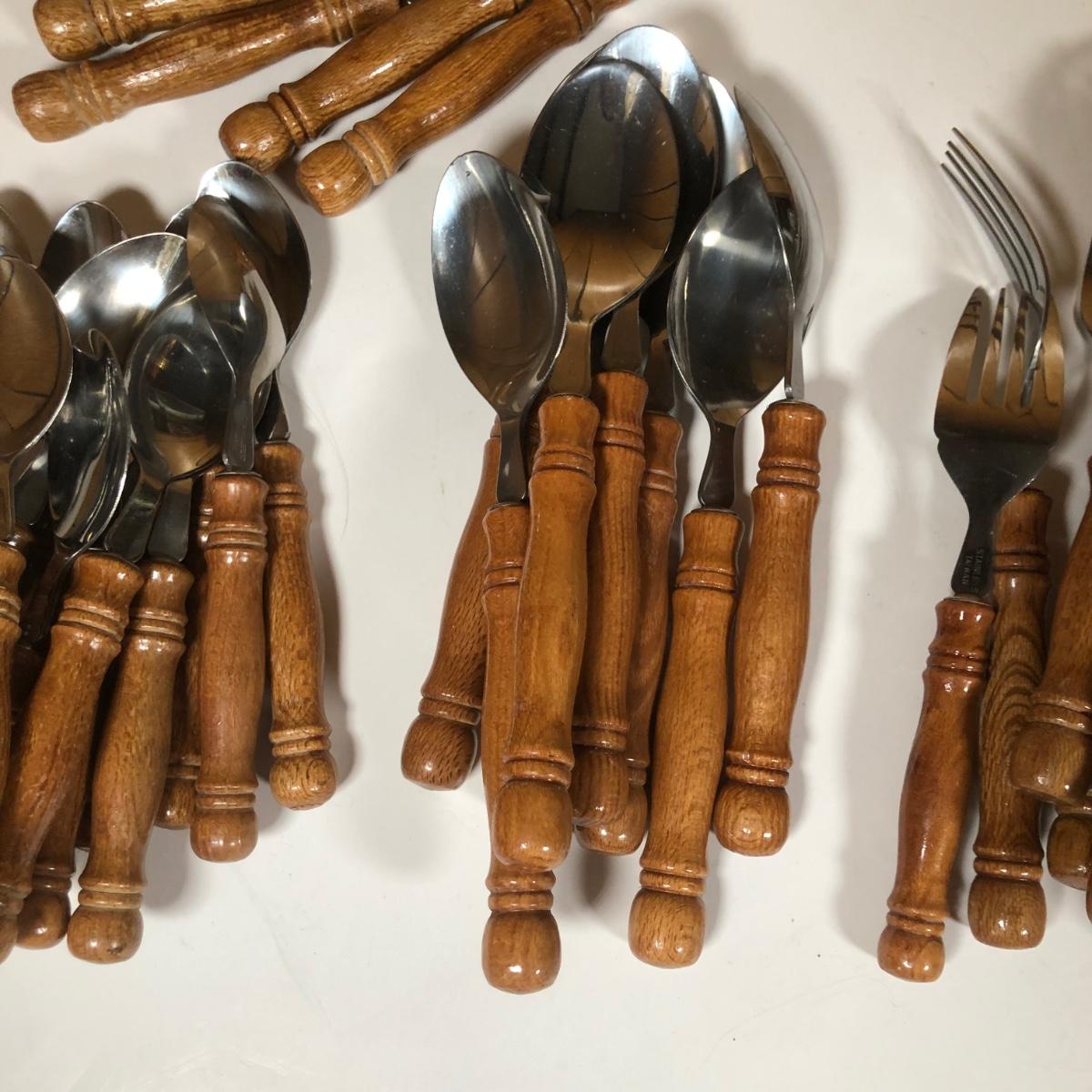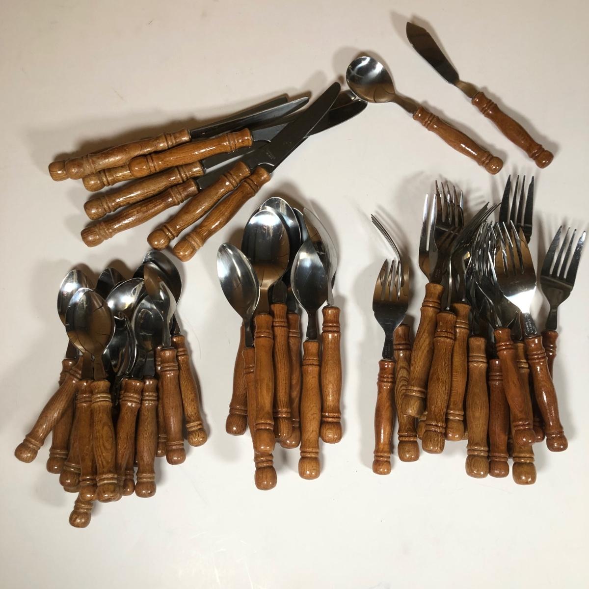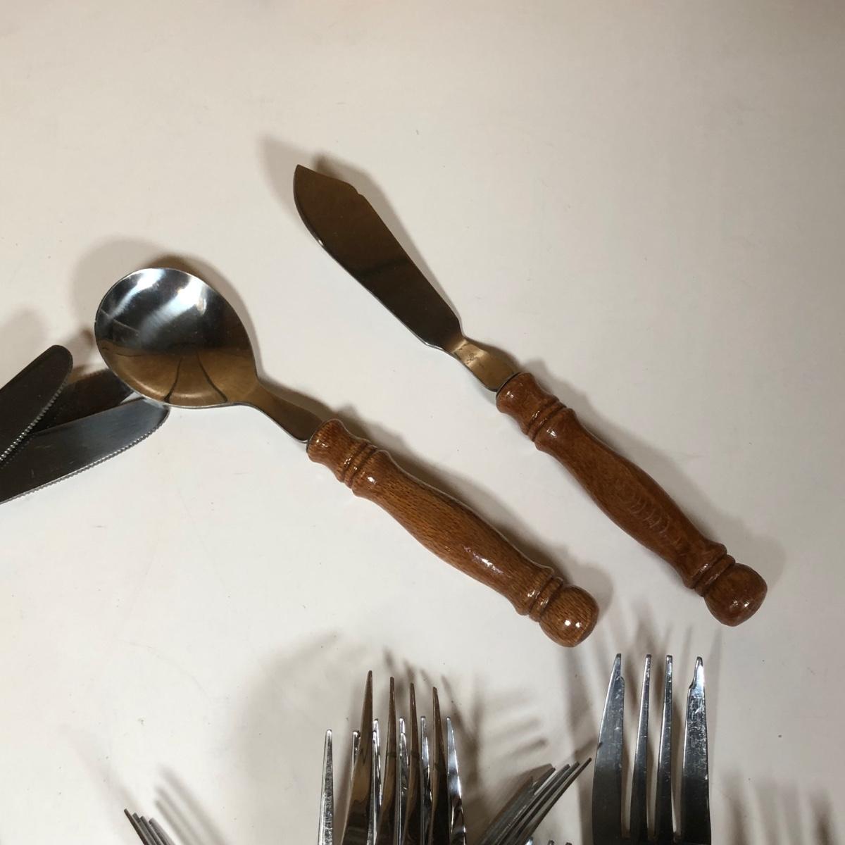 LOT 22D: Set of Vintage Stainless Flatware w/ Wooden Handles