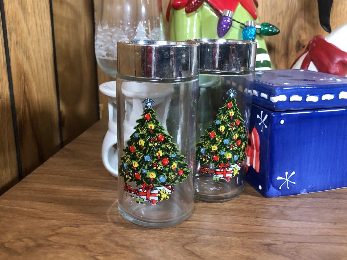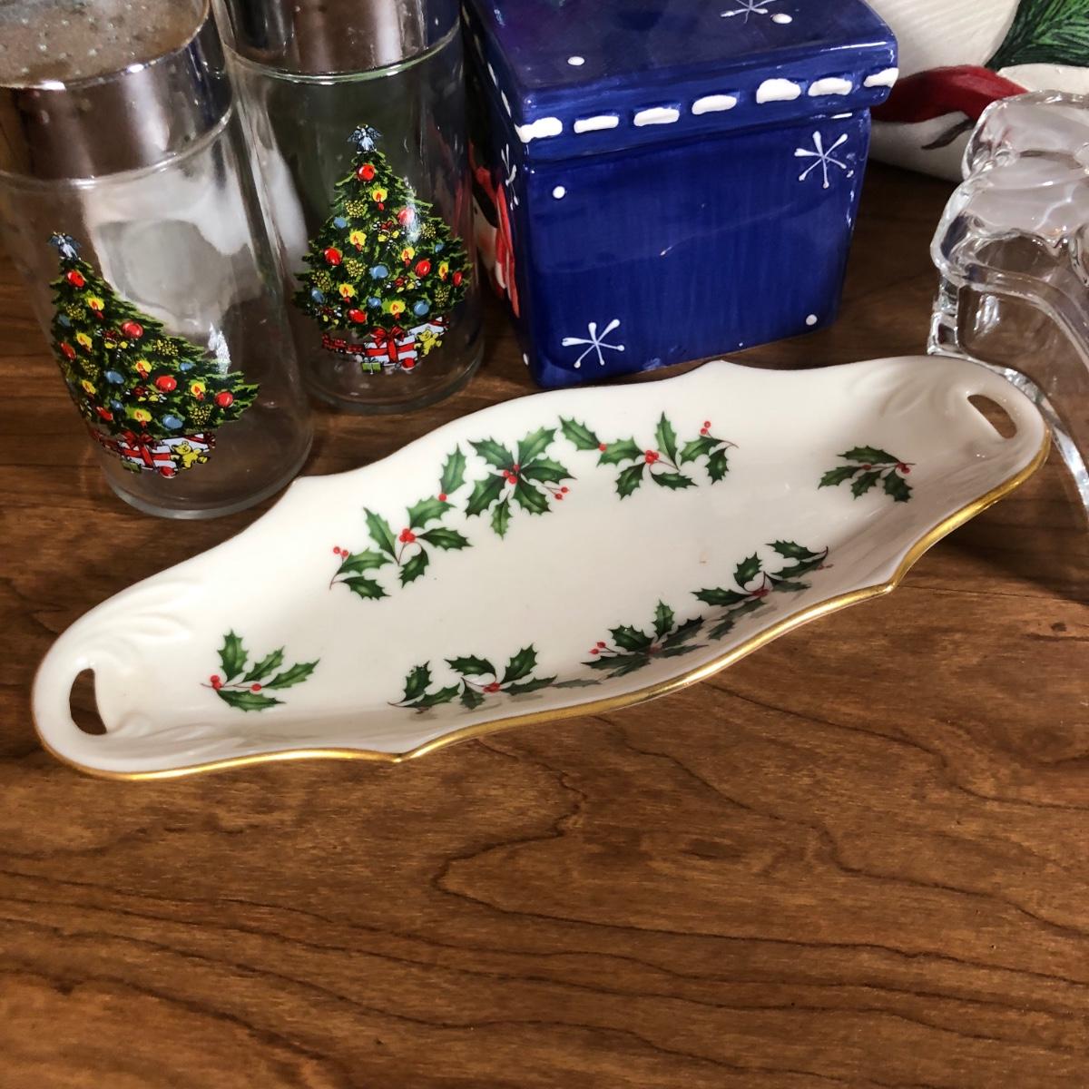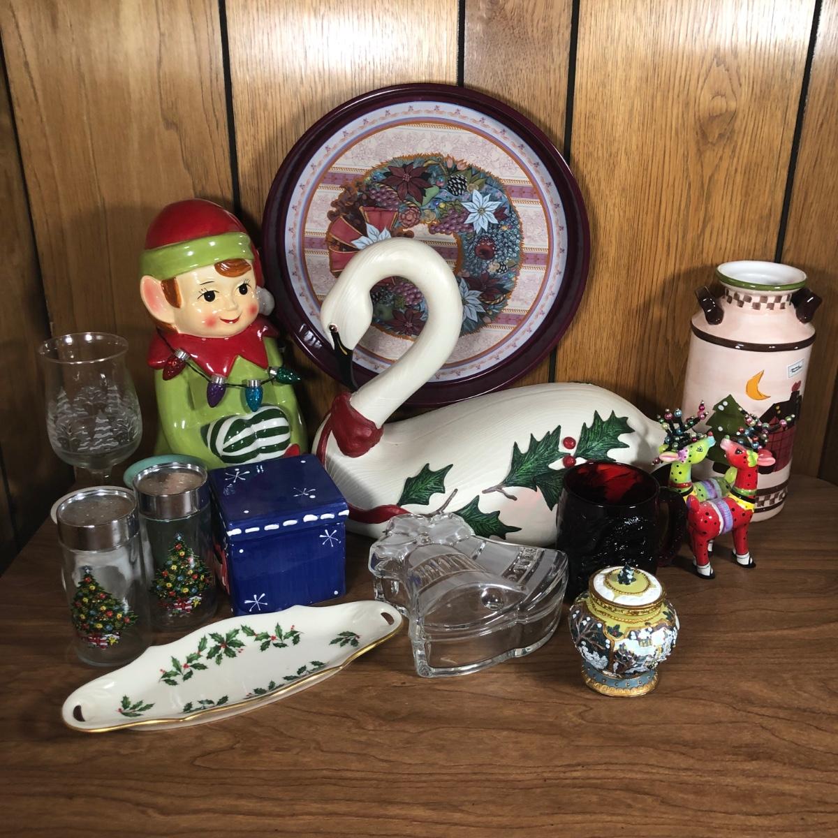 LOT 29D: Christmas Decor Collection - Lenox Treat Tray, Red Glass Santa Mug, Tree S&P, Large Goose & More